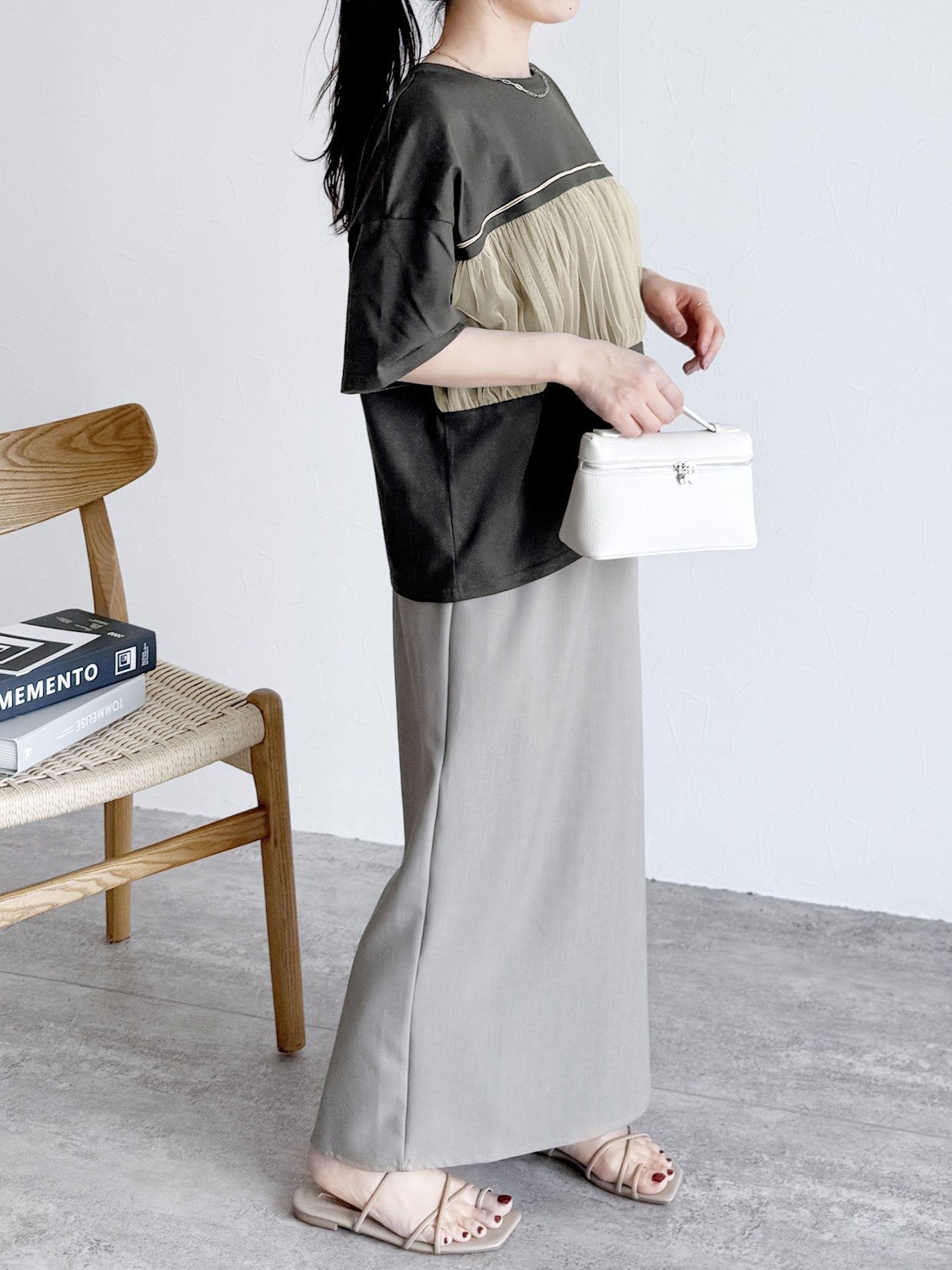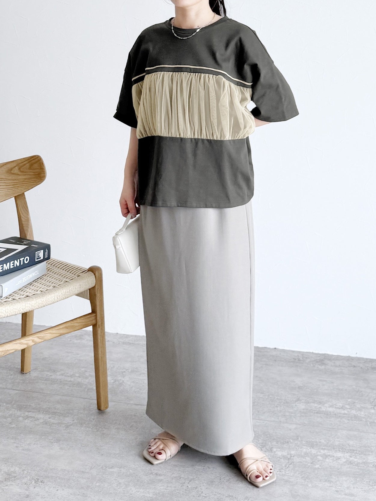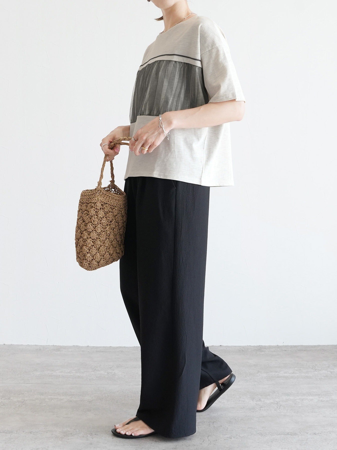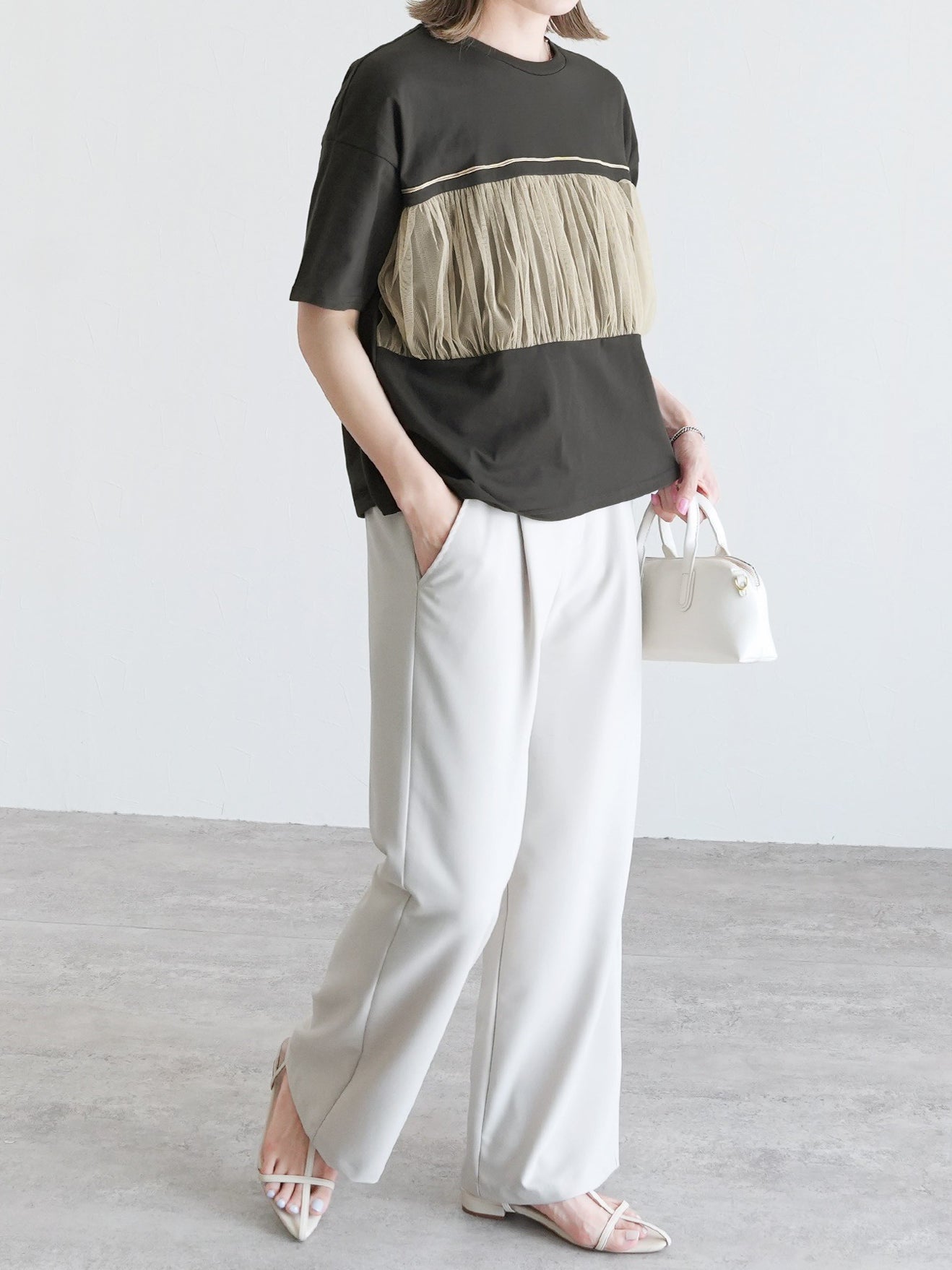 -This is a sweet T-shirt with tulle, so we recommend wearing it casually with denim or wide pants.