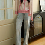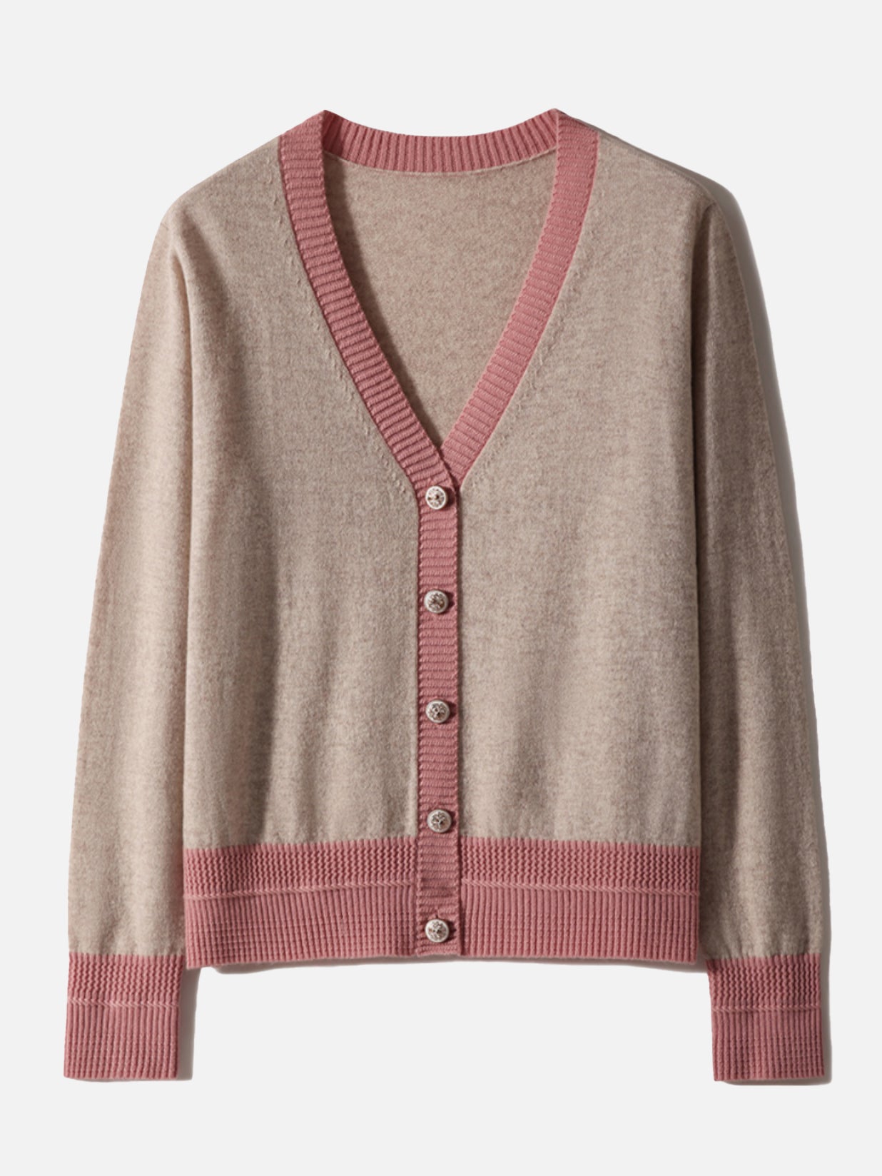 A two-tone knit cardigan that is elegant and can be the center of attention.