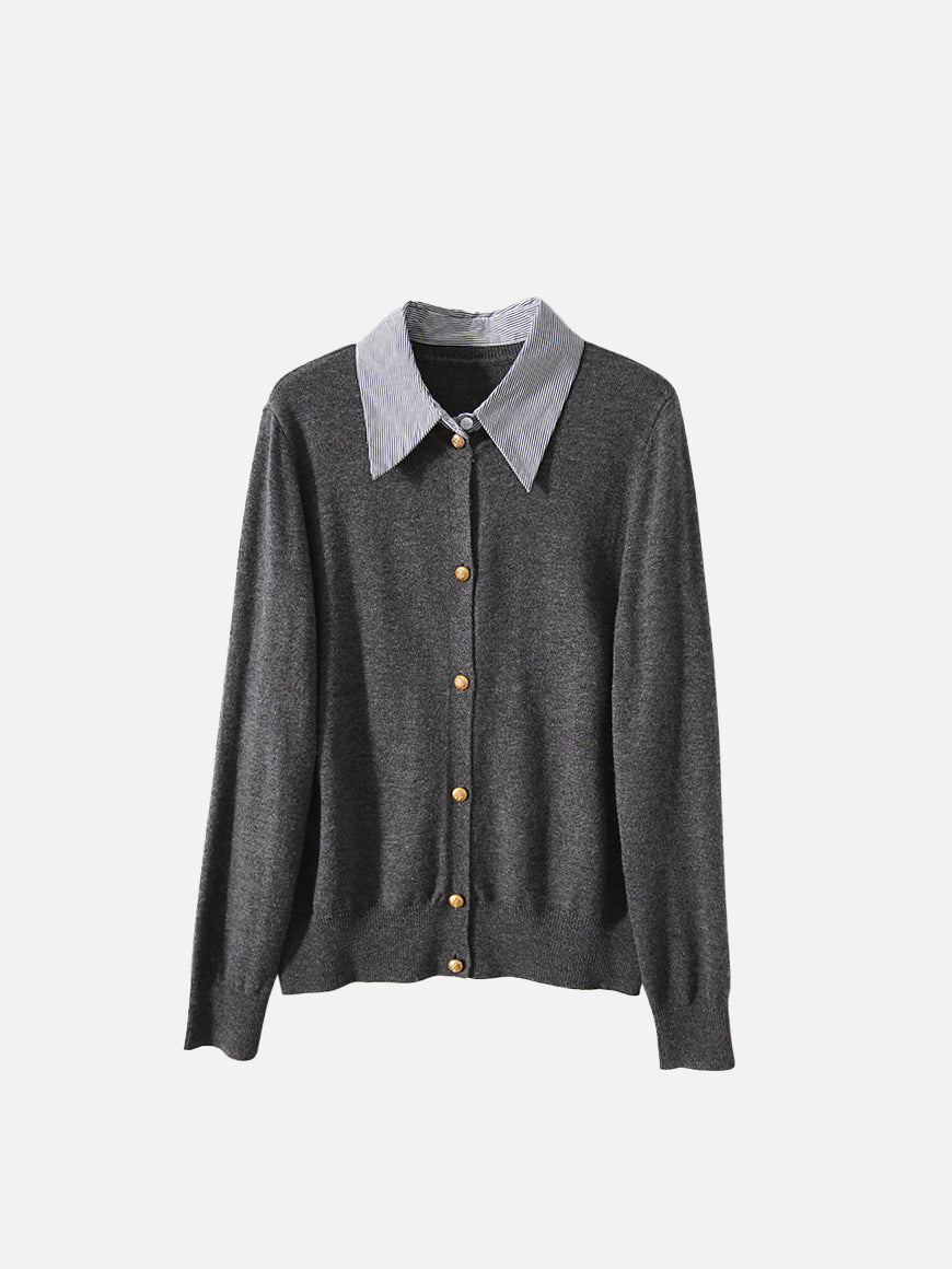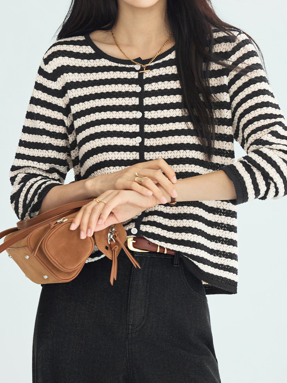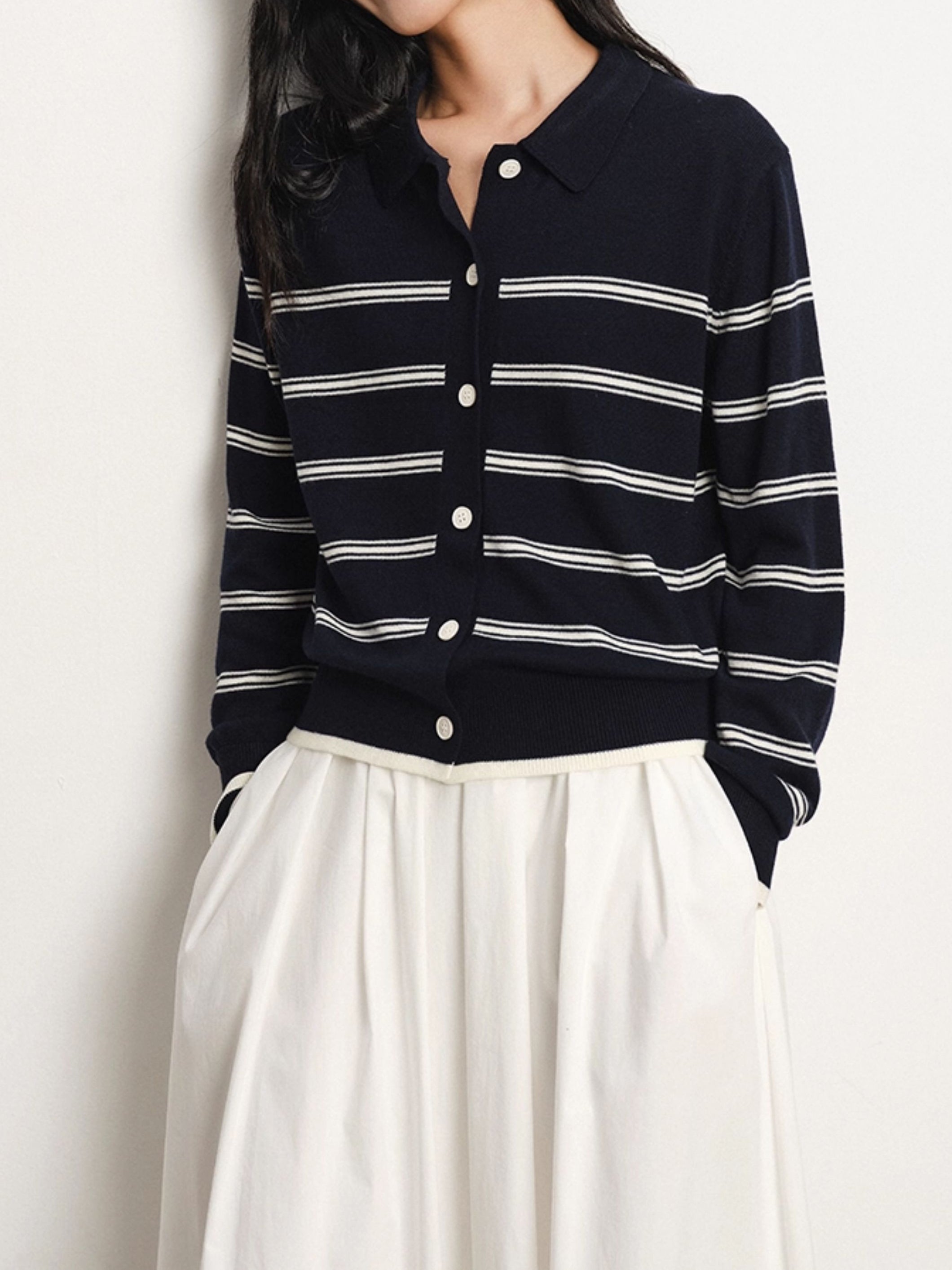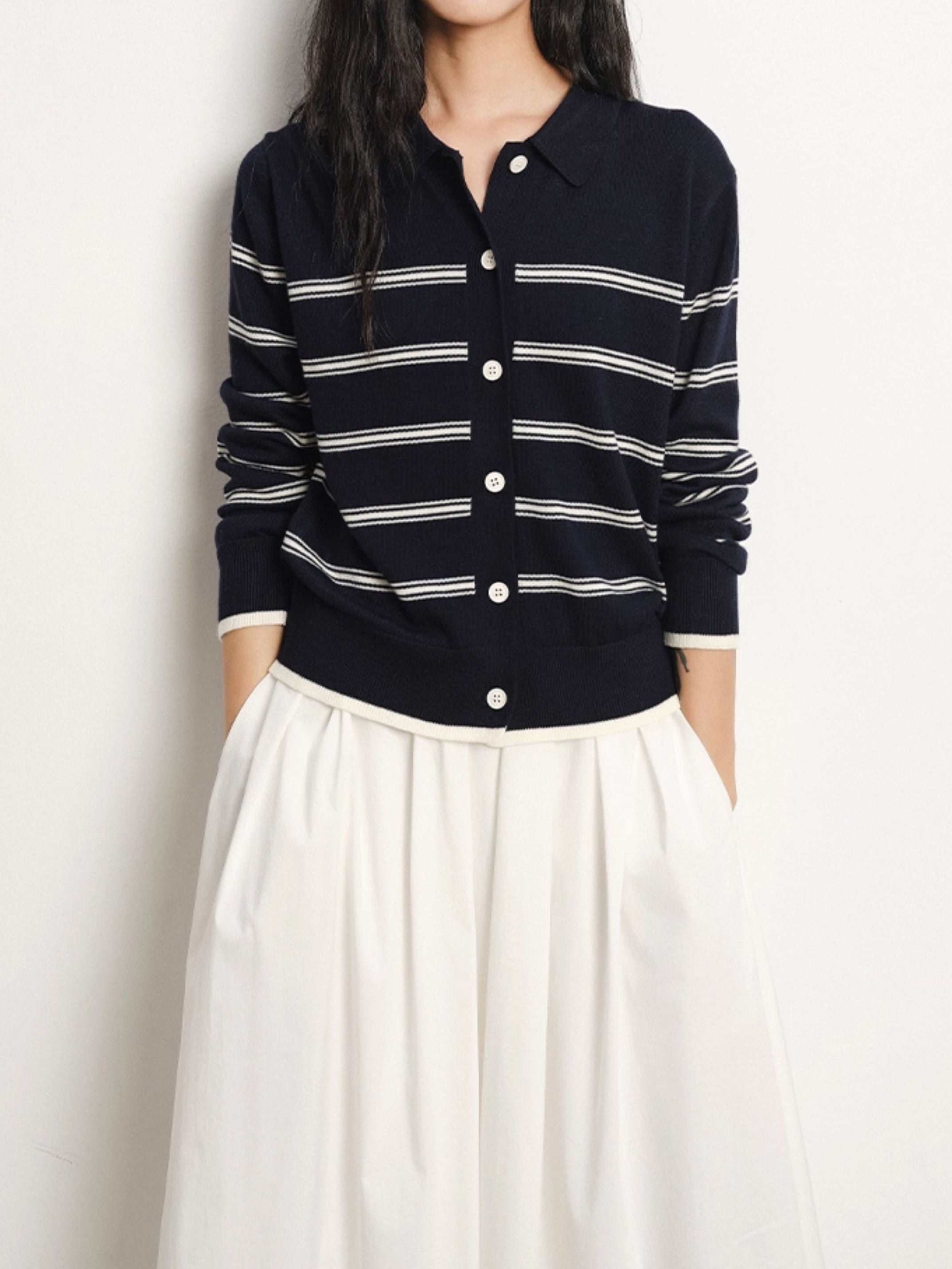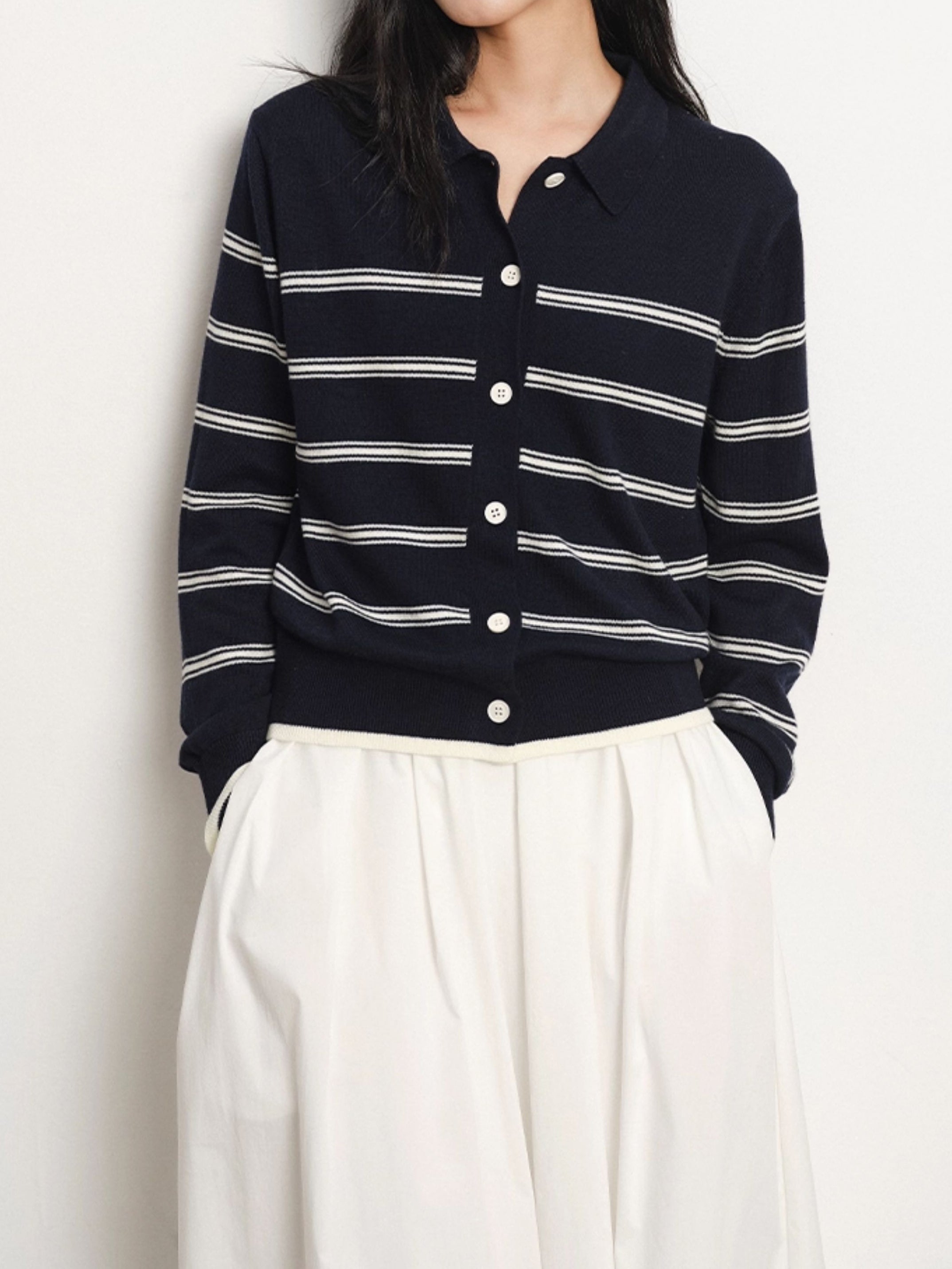 Color-coordinated rhythm border gold button cardigan (2 colors)