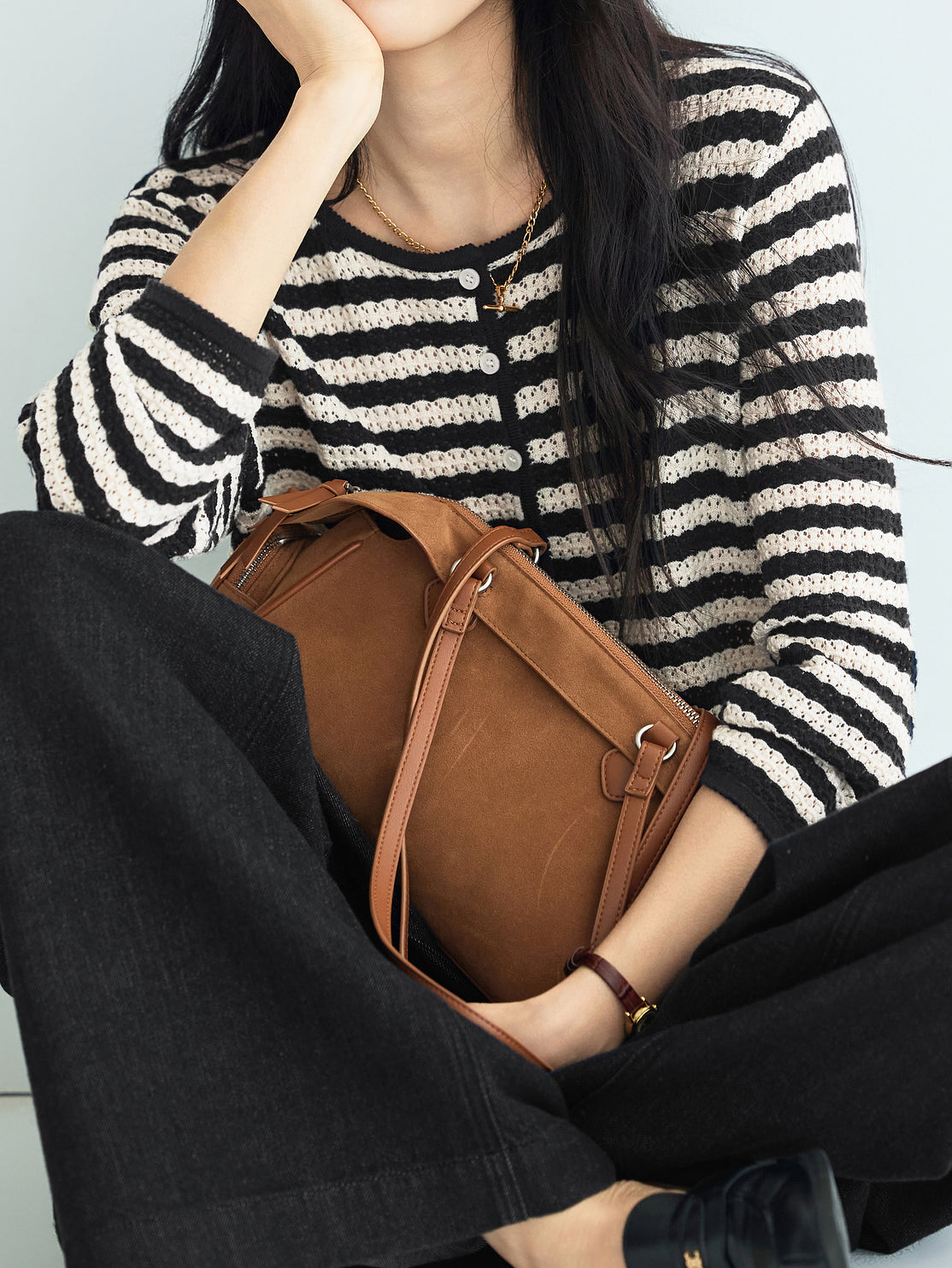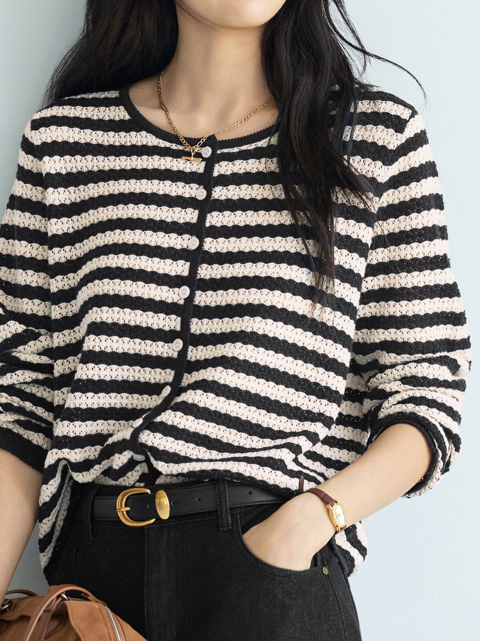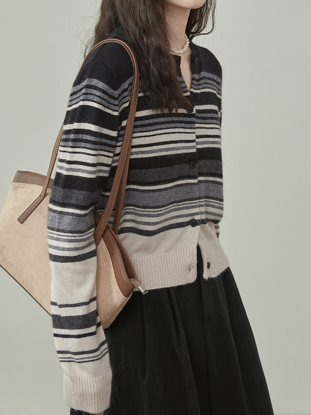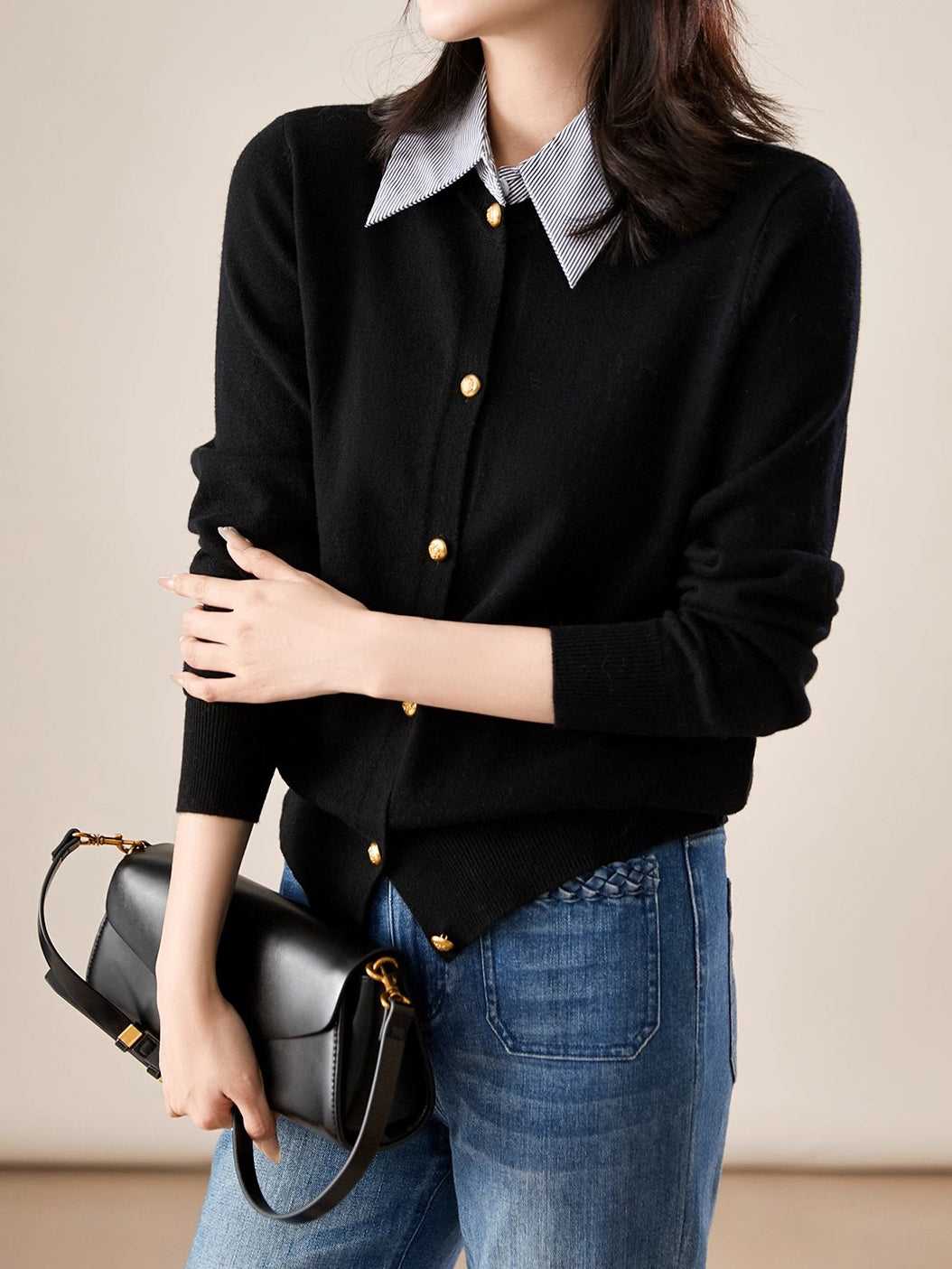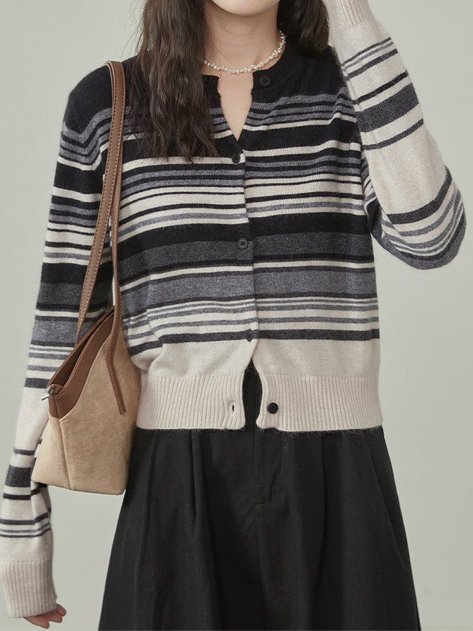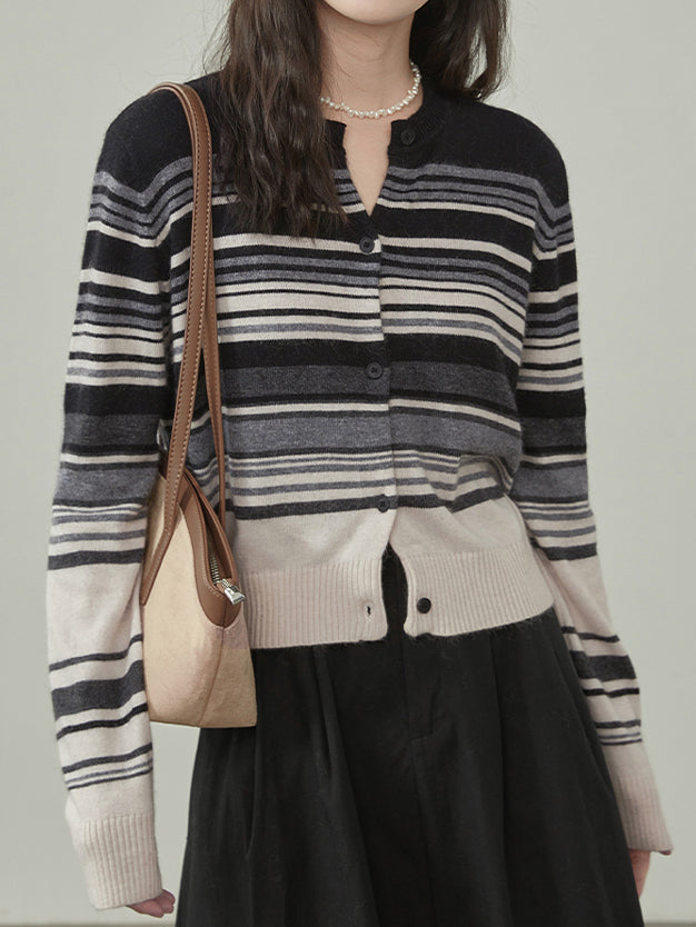 Color-coordinated rhythm border gold button cardigan (2 colors)