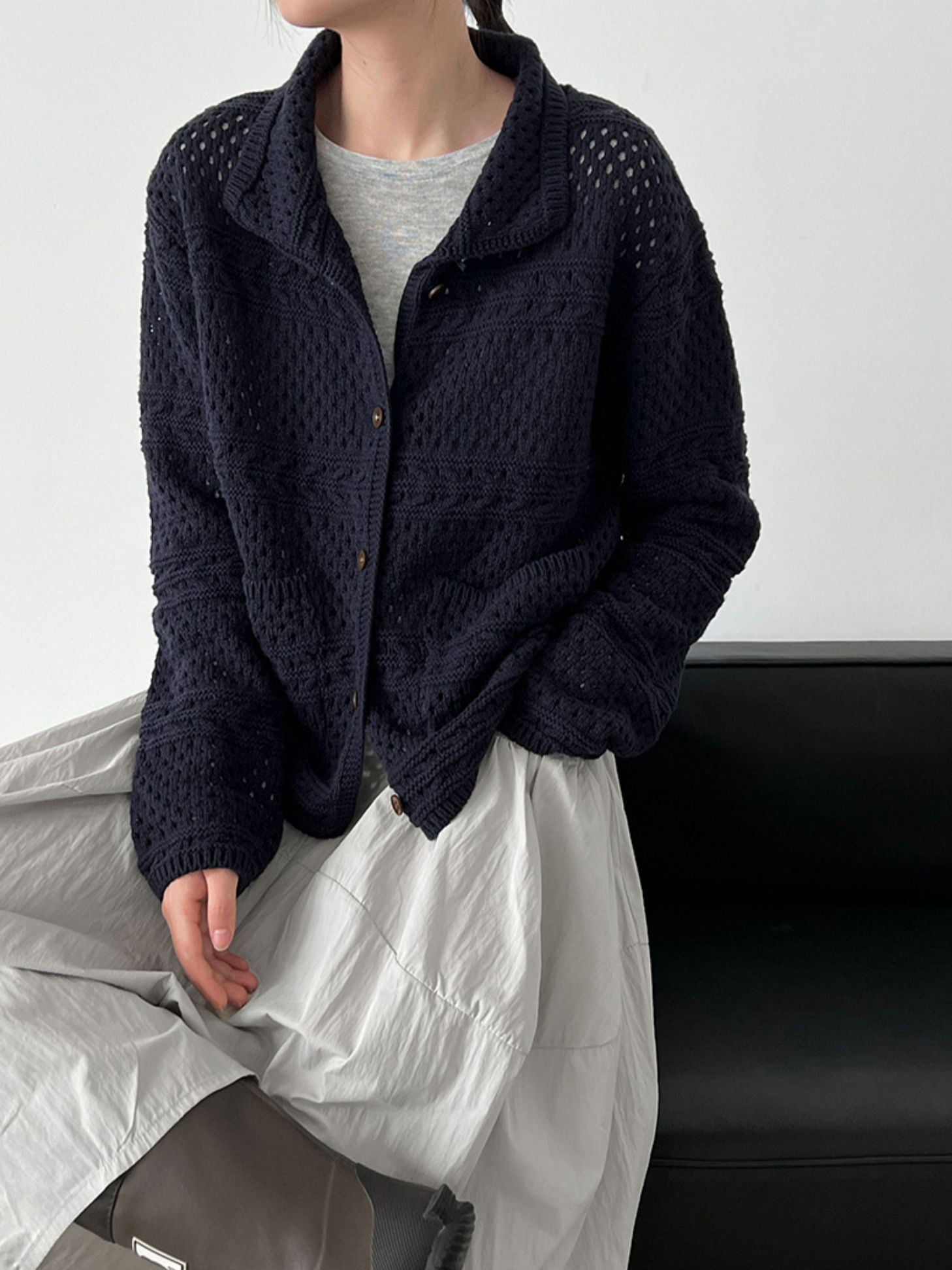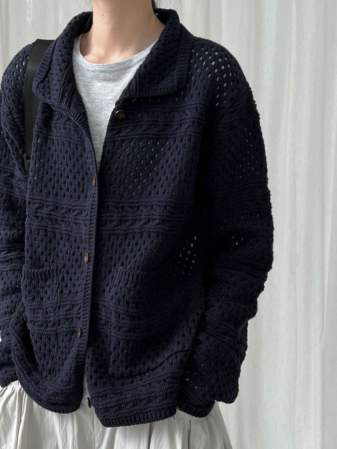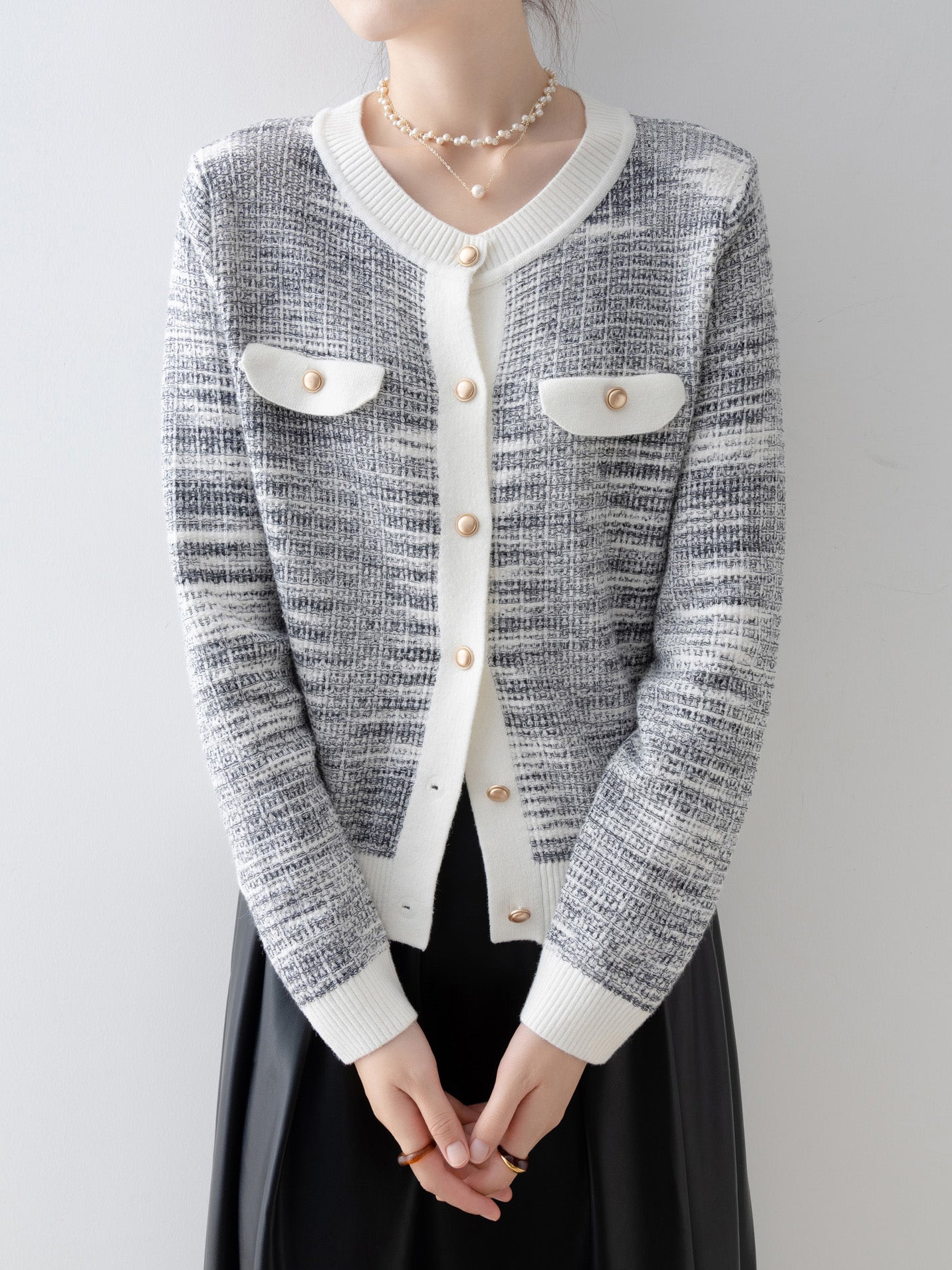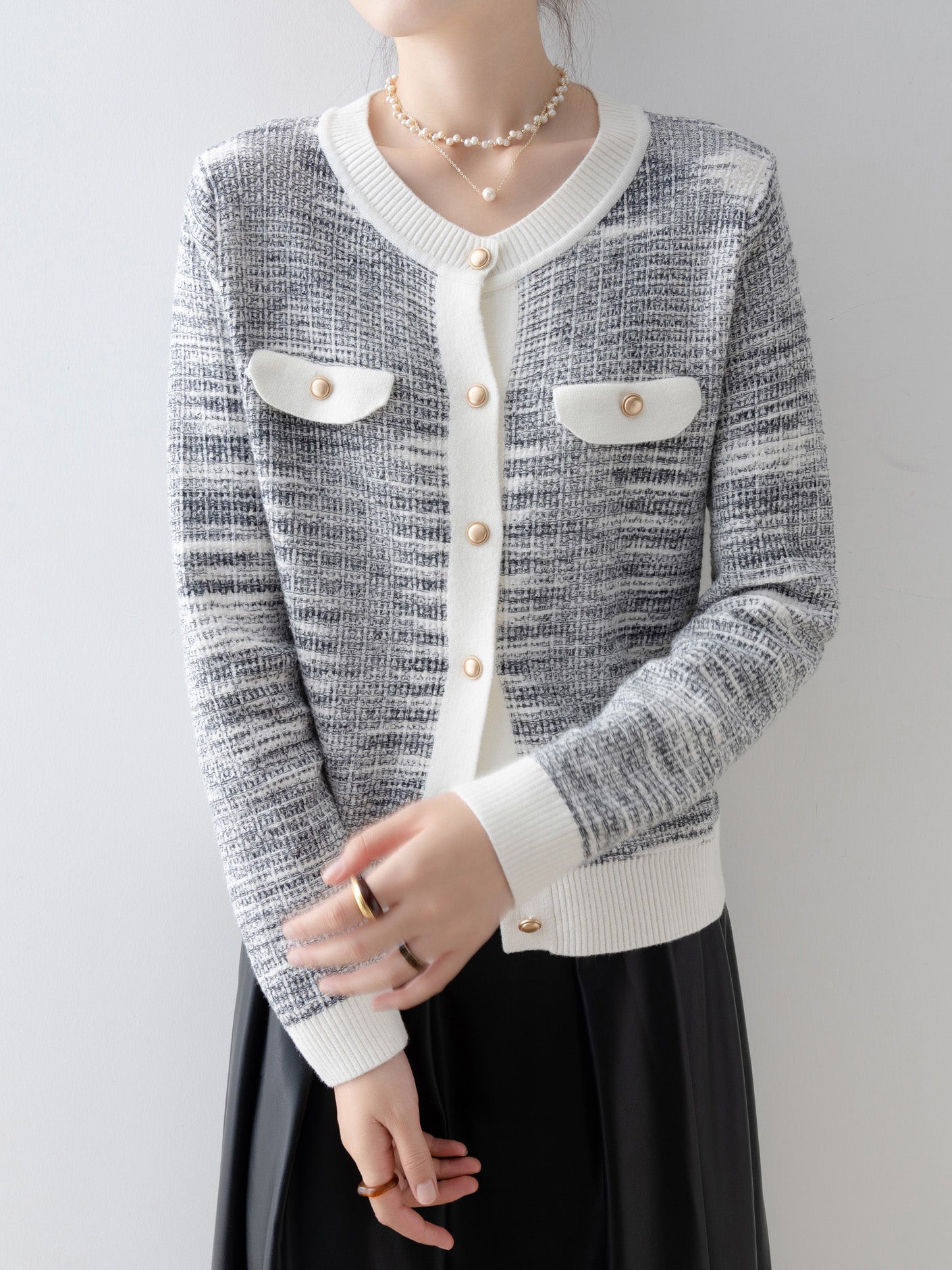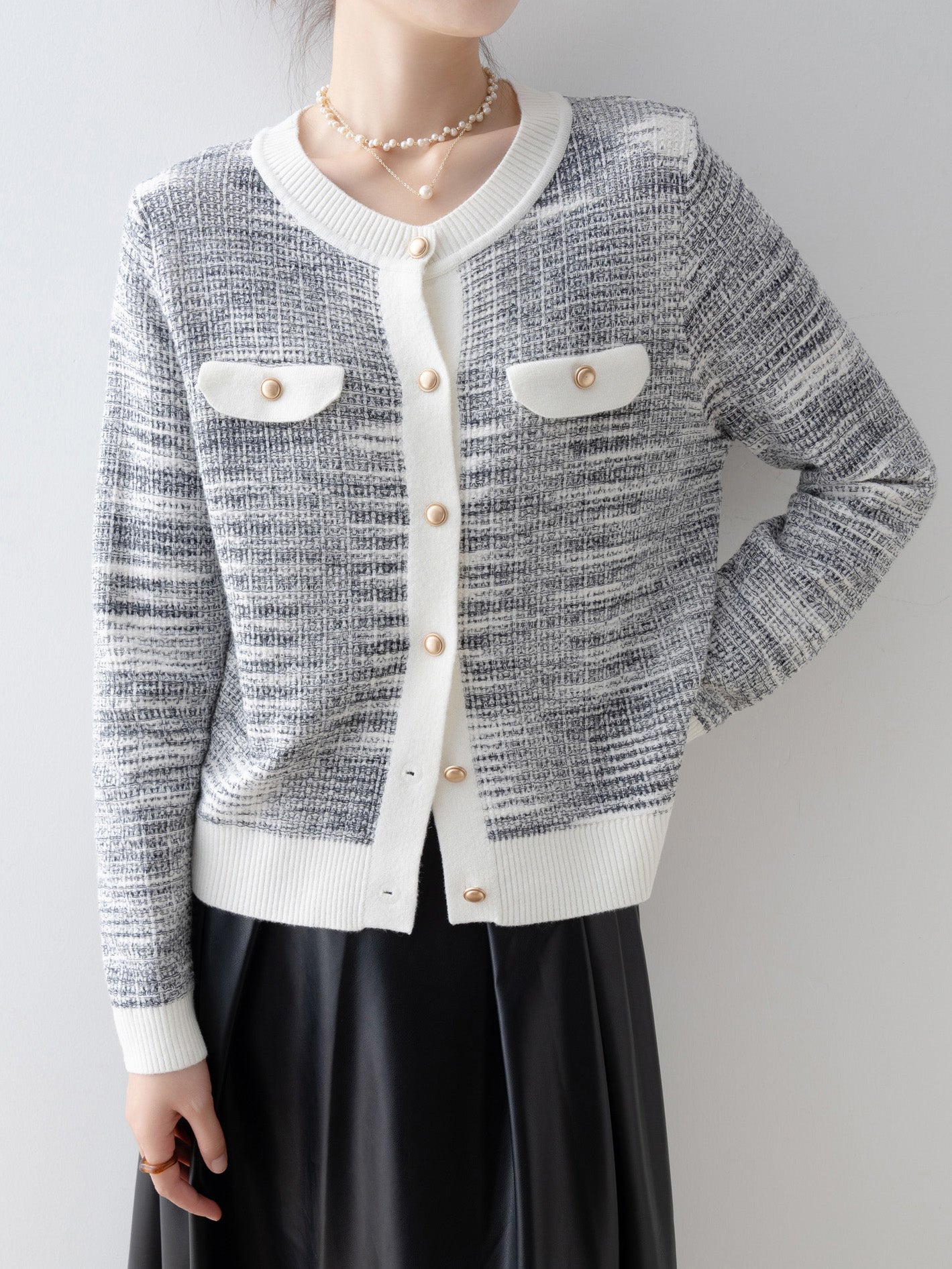 Flap color-coordinated mixed yarn knit cardigan (3 colors)