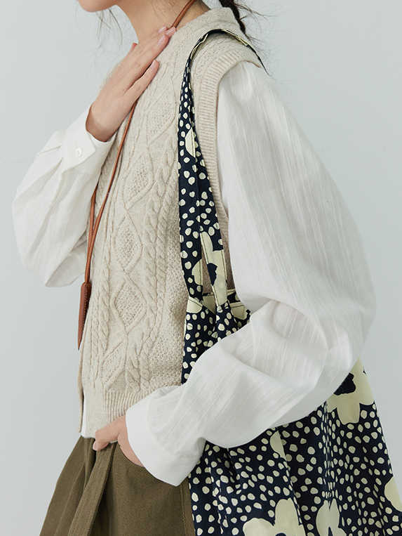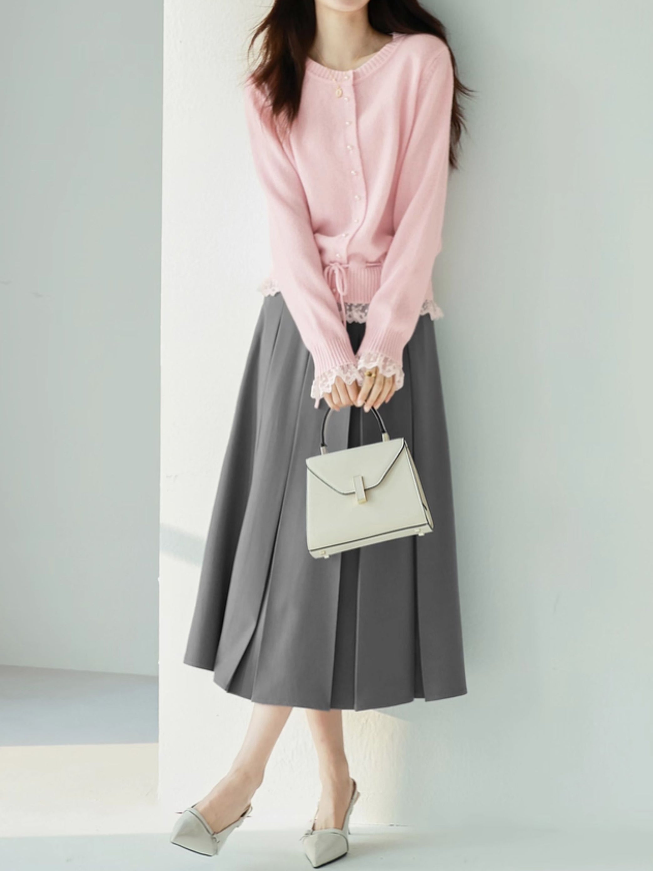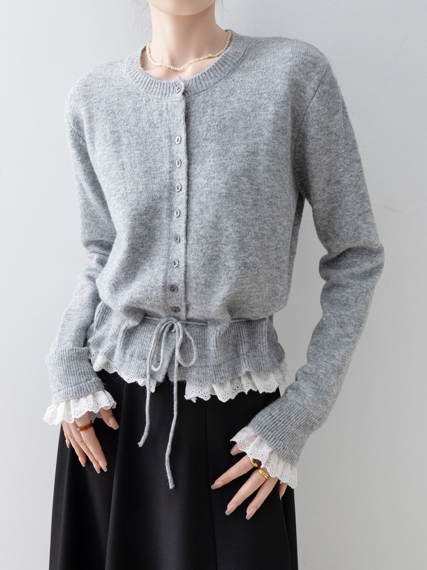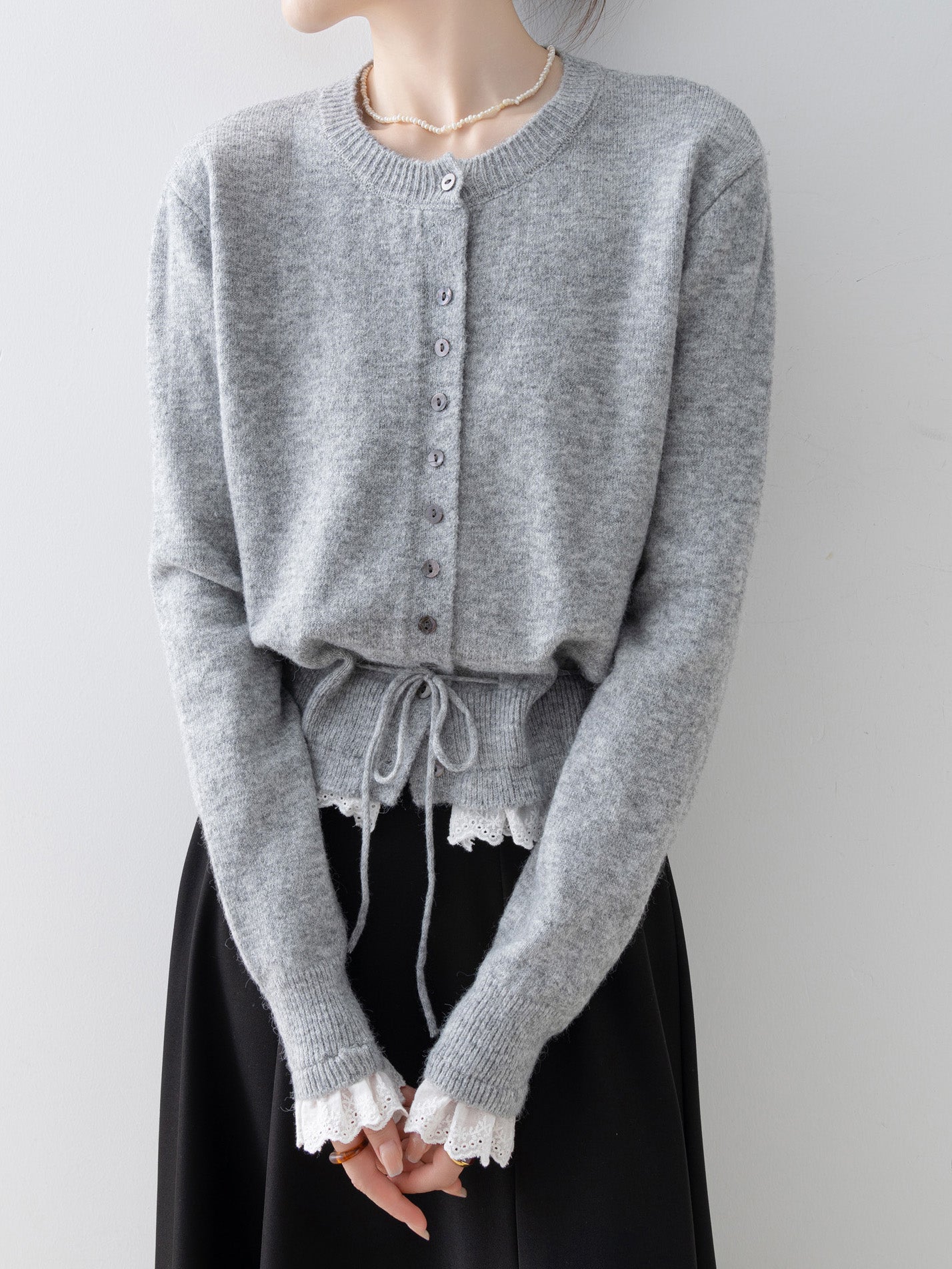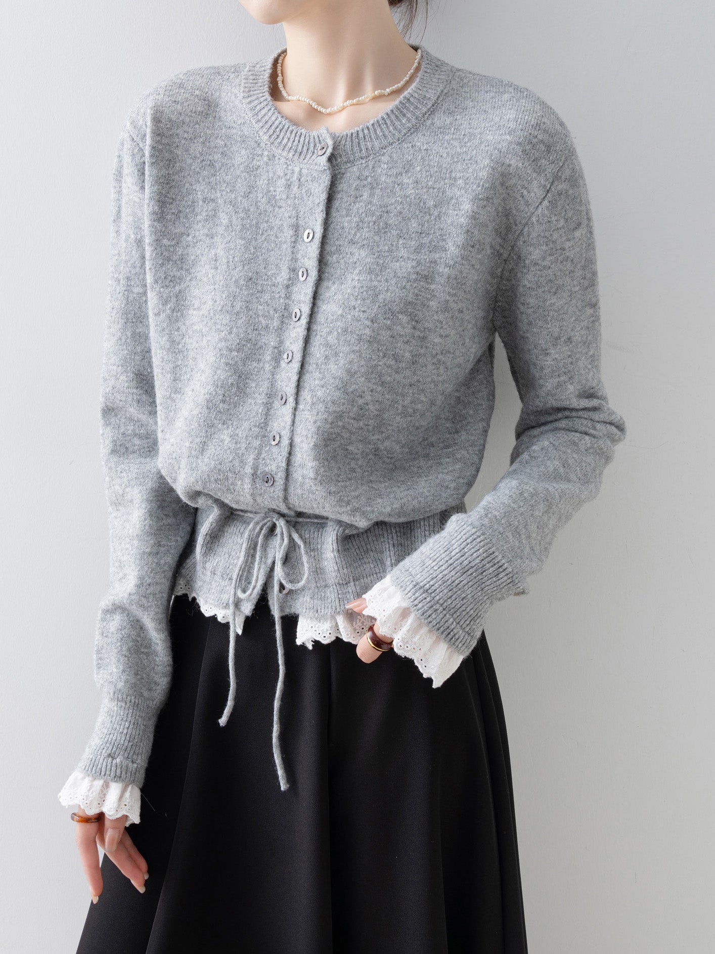 Flap color-coordinated mixed yarn knit cardigan (3 colors)