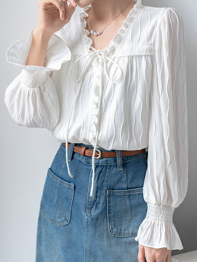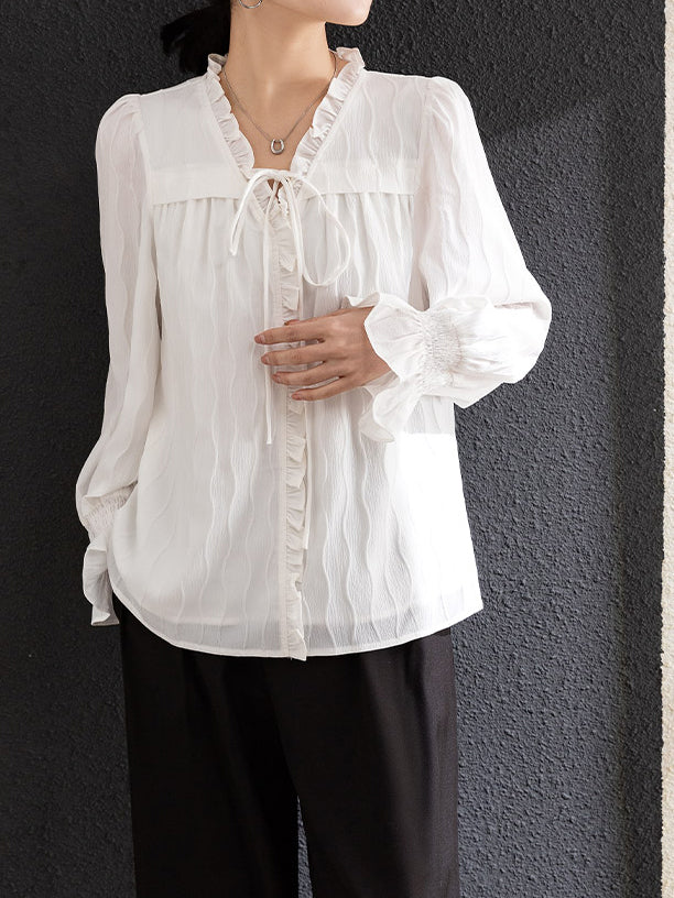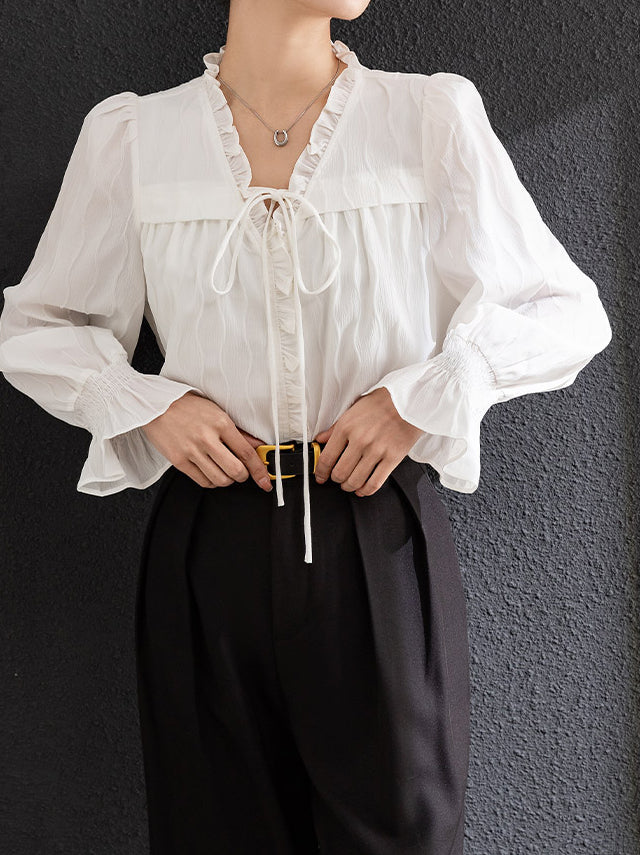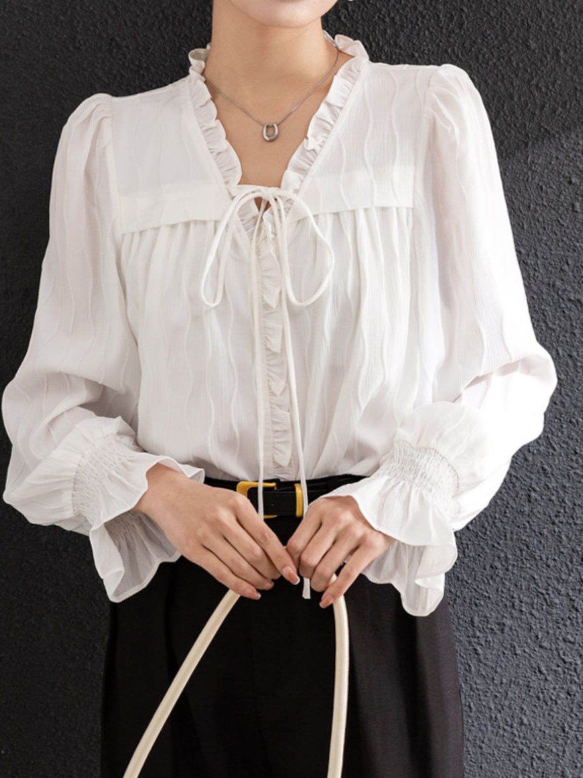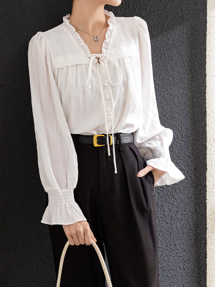 [ A voluminous blouse that exudes an elegant and refined atmosphere ]