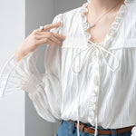 This frill ribbon wave volume blouse features adorable frills and ribbons to accentuate your femininity. The soft material gives you a comfortable fit and a flowing silhouette. Not only does it give you a stylish impression, it also enhances the elegance of the wearer .