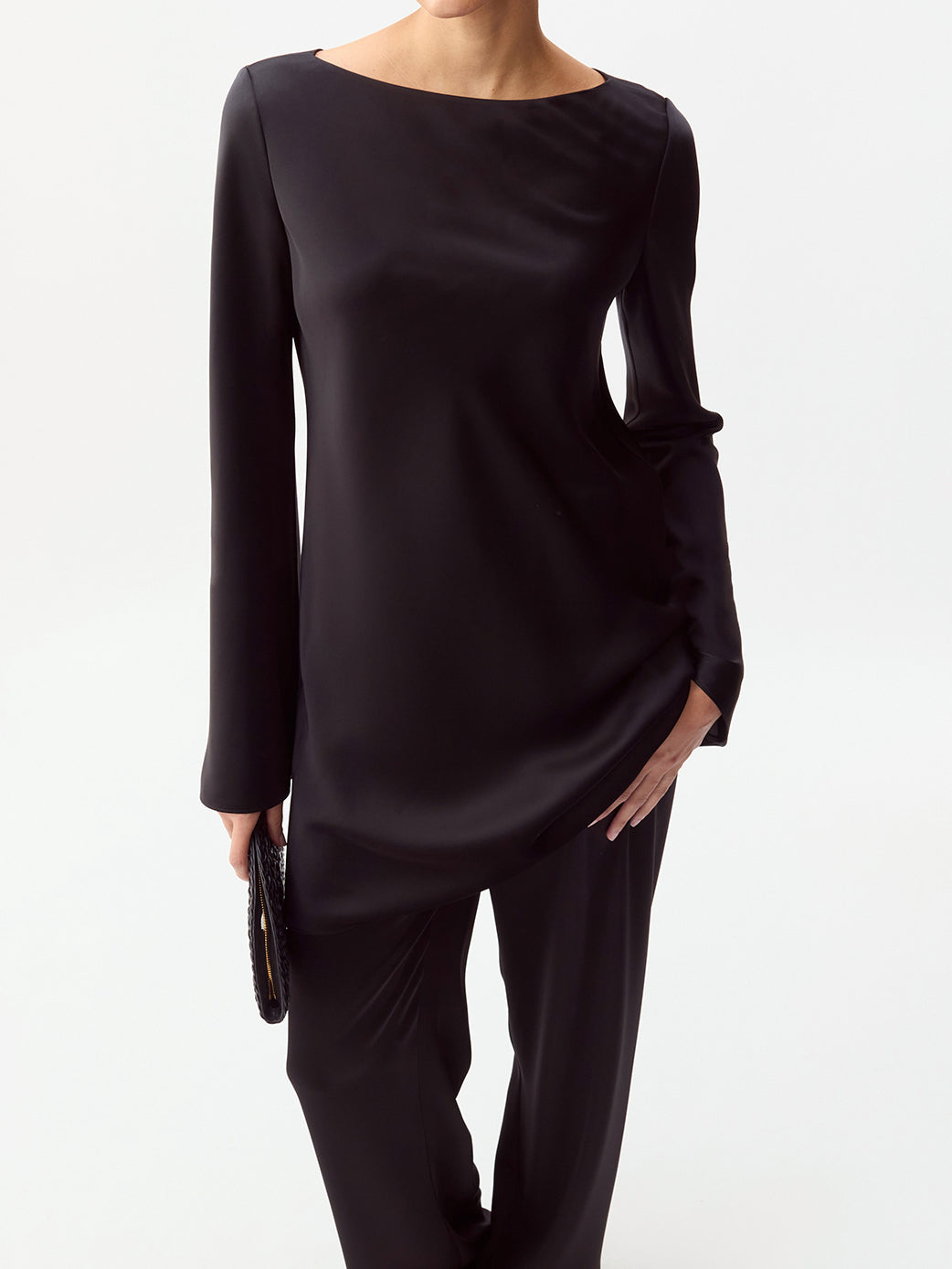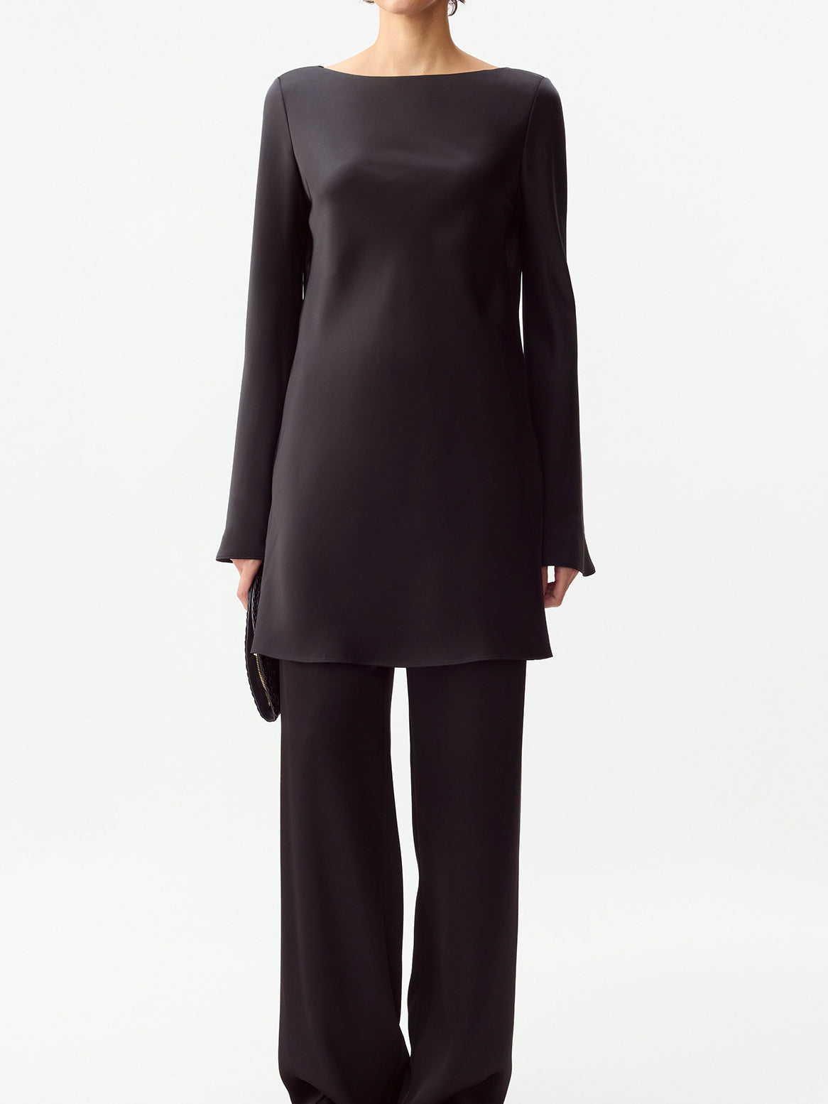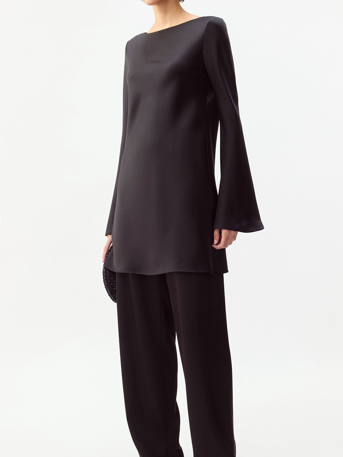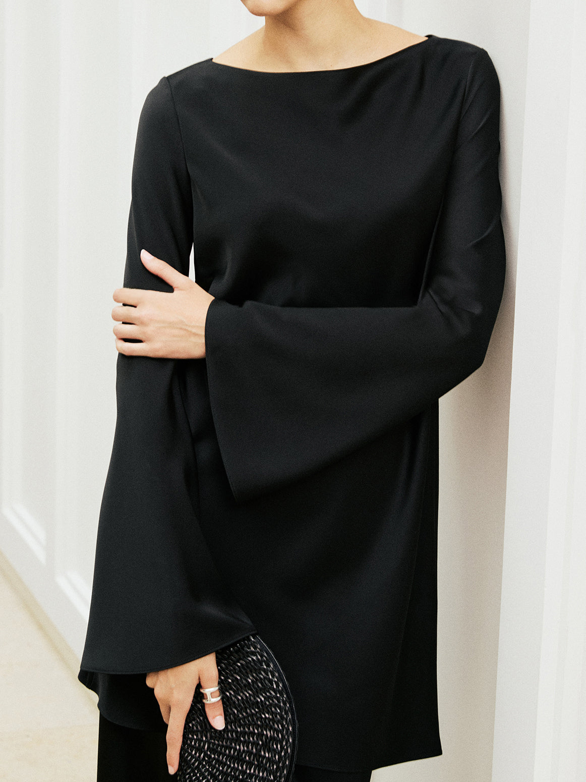 ☆The material has a moderate drape and a glossy finish, and is comfortable and not too tight on the body.