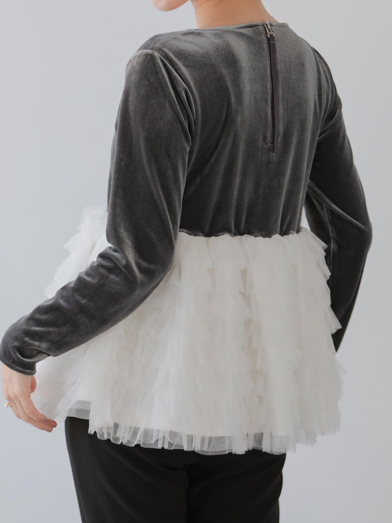 This cute piece is made of tulle and velour, adding a touch of style to your outfit.