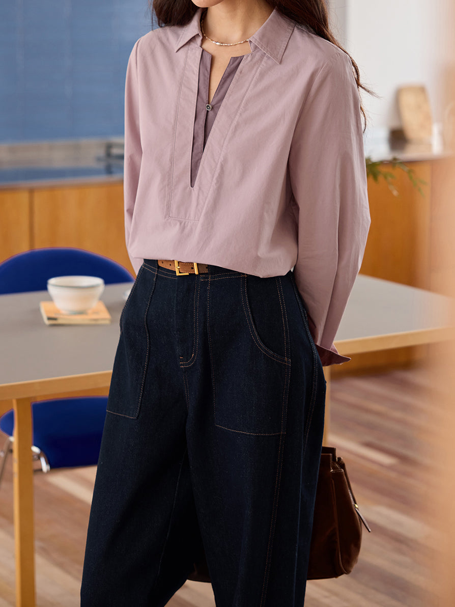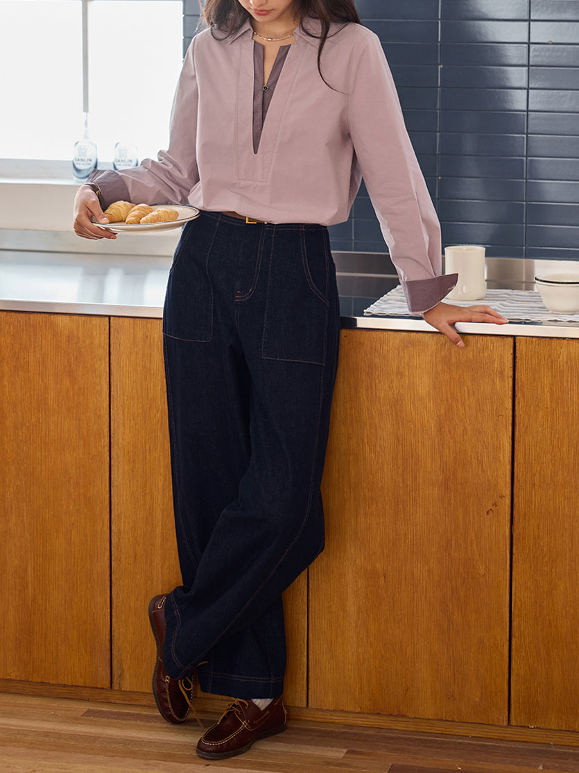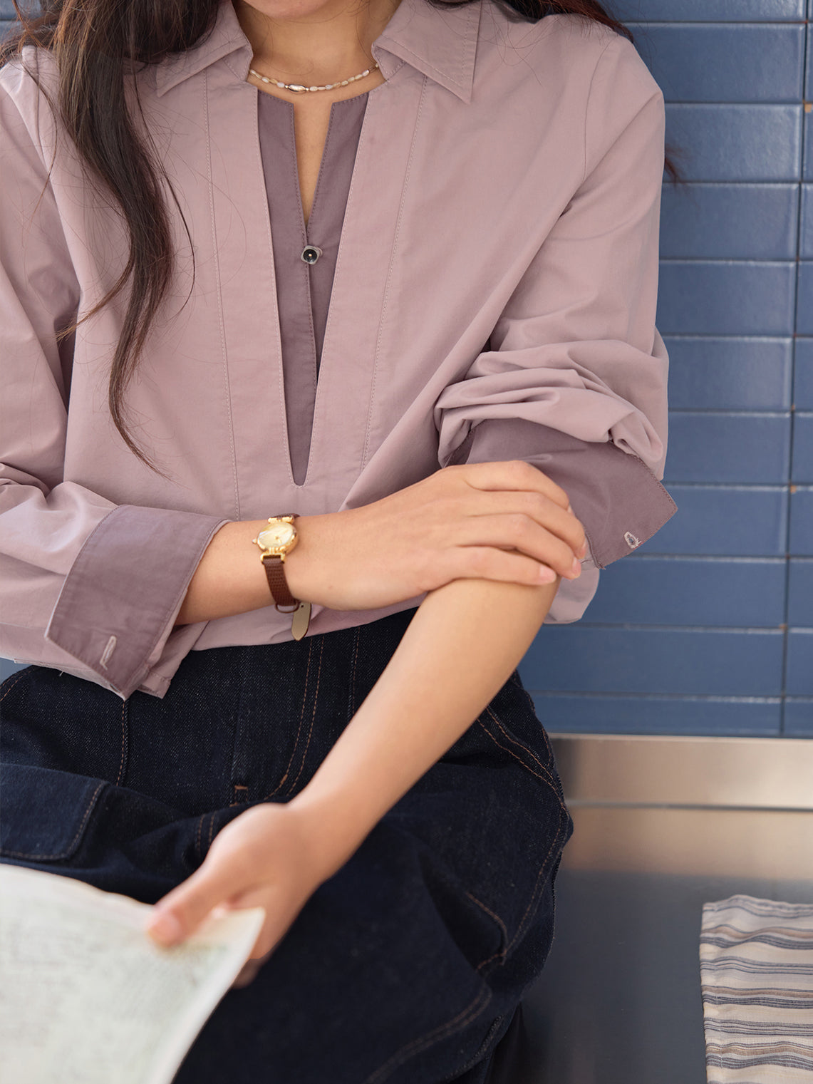 ☆The skipper design of the shirt collar with deep lines gives it a relaxed feel and also makes your face look smaller.