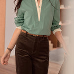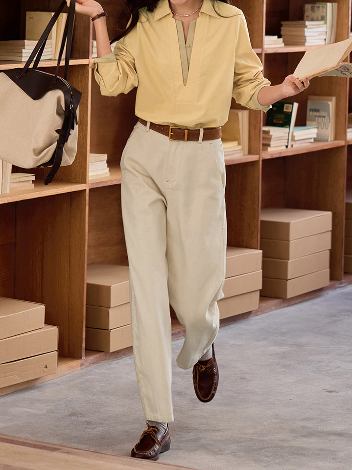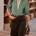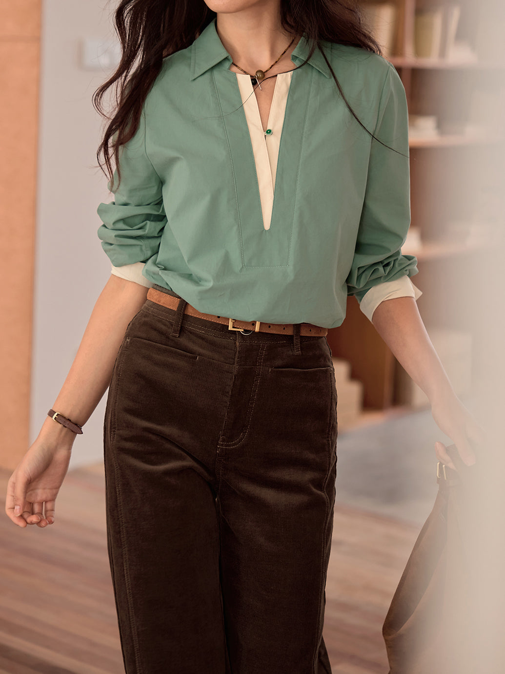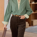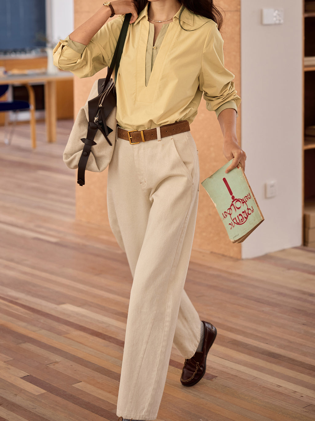 ☆The skipper design of the shirt collar with deep lines gives it a relaxed feel and also makes your face look smaller.