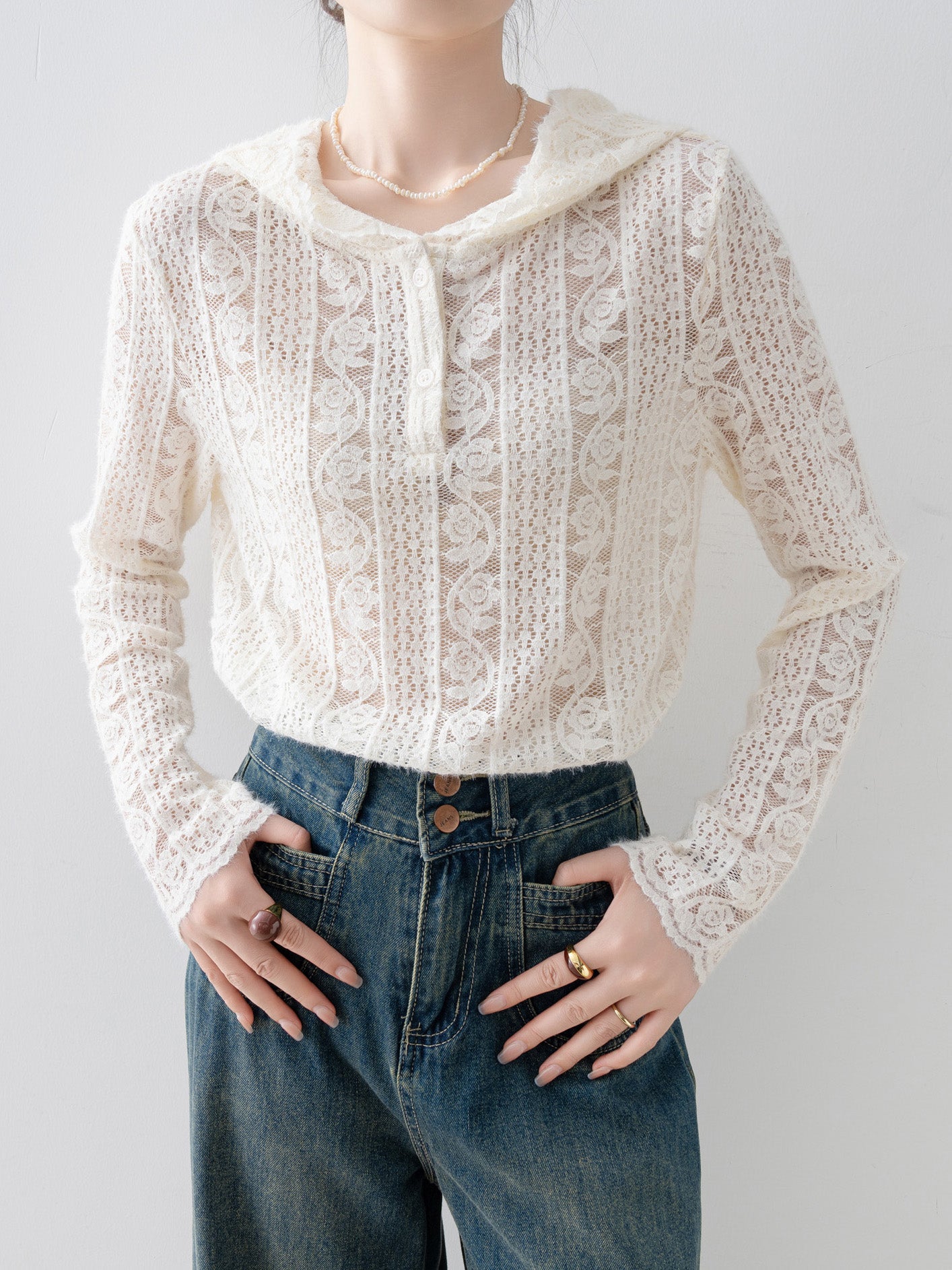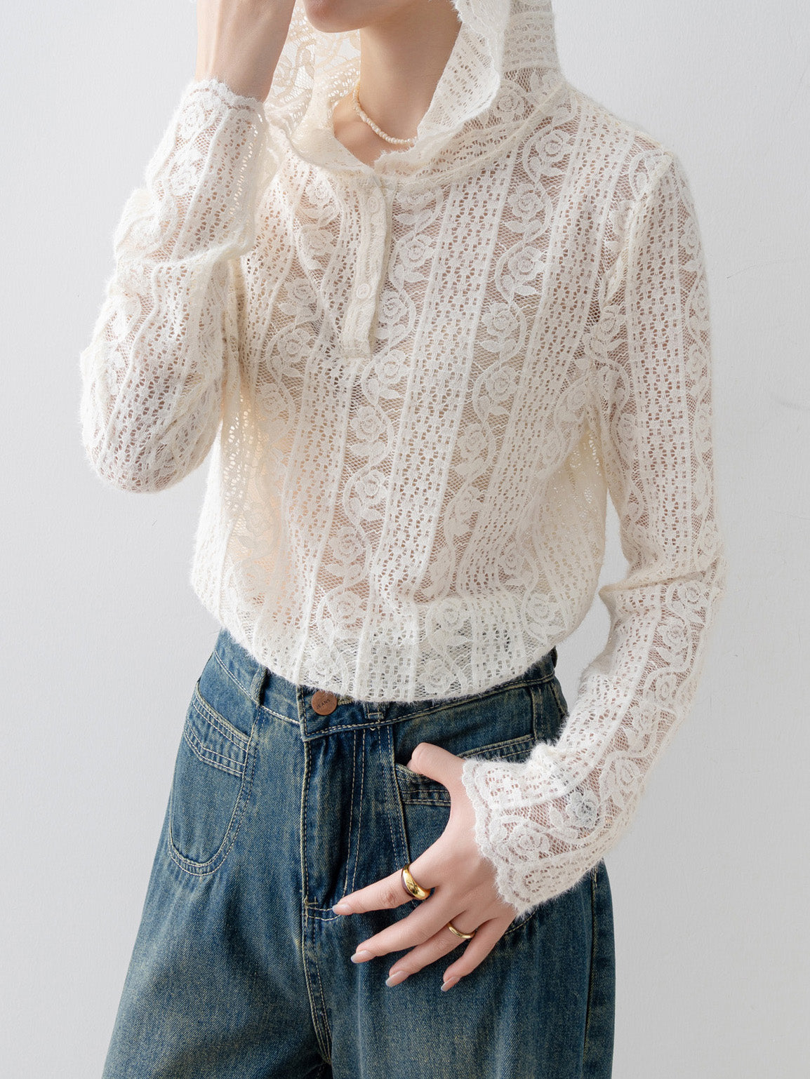 ☆The hooded design gives it a casual feel, while the lace trimming gives it a feminine impression.