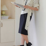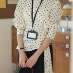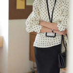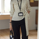 Side-tucked ribbon dot blouse