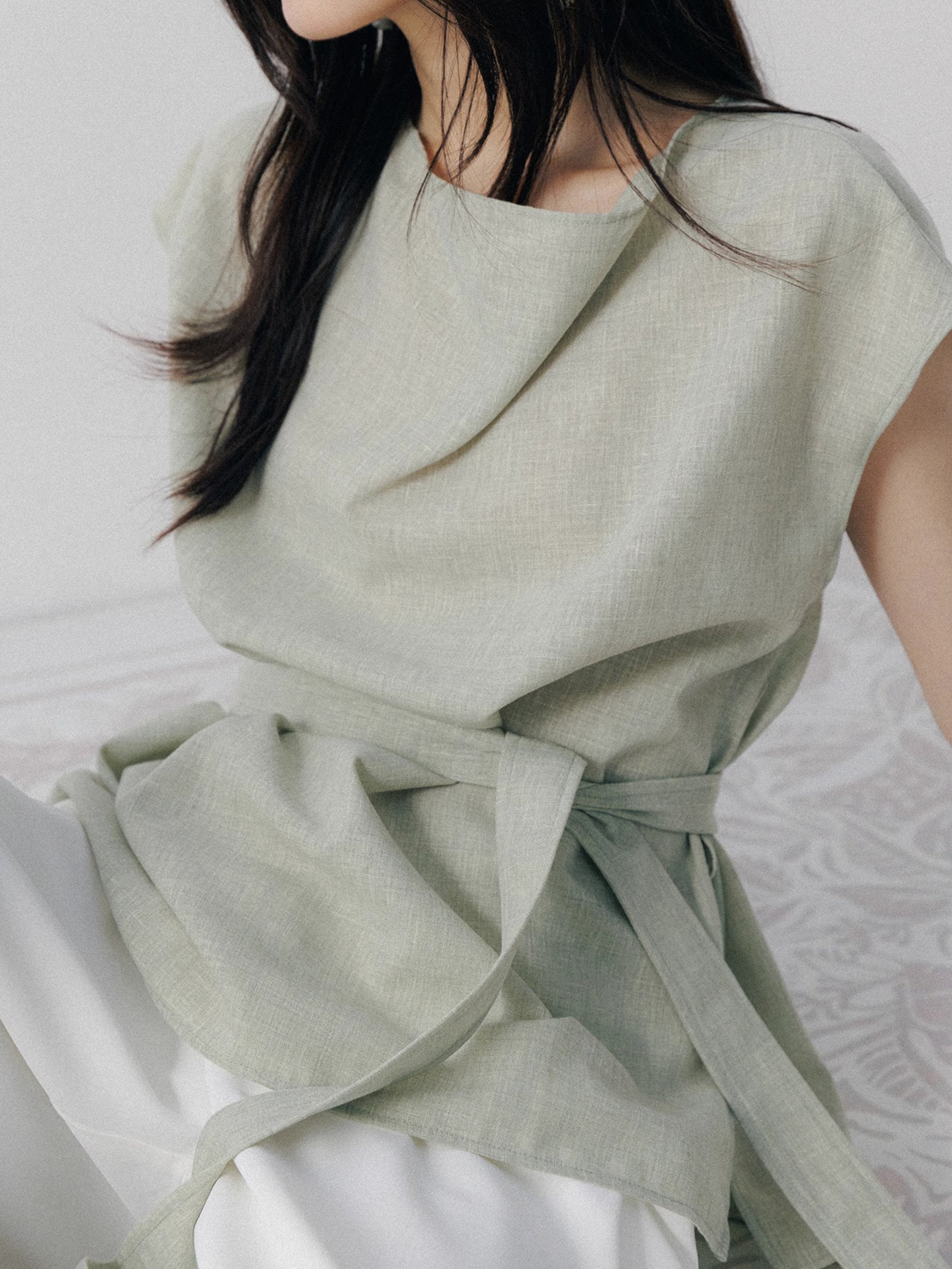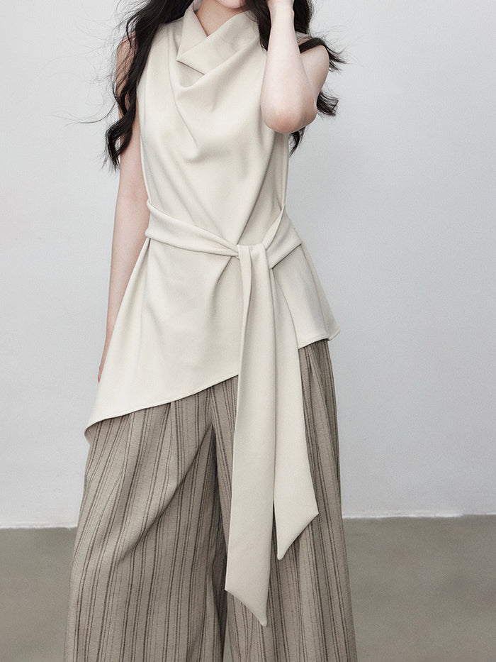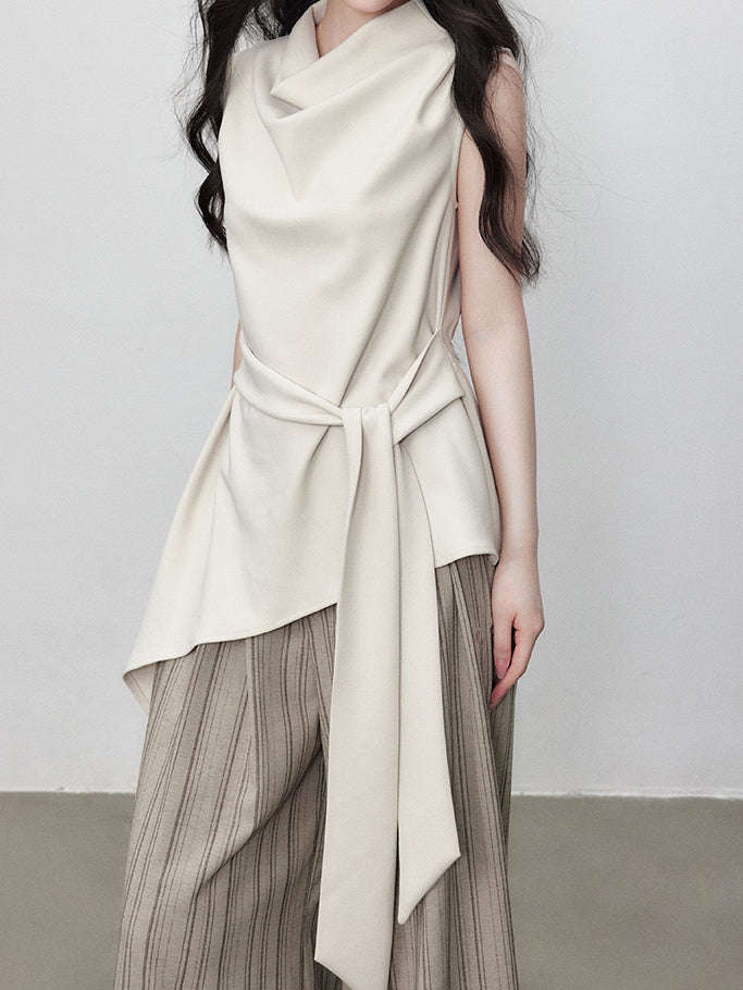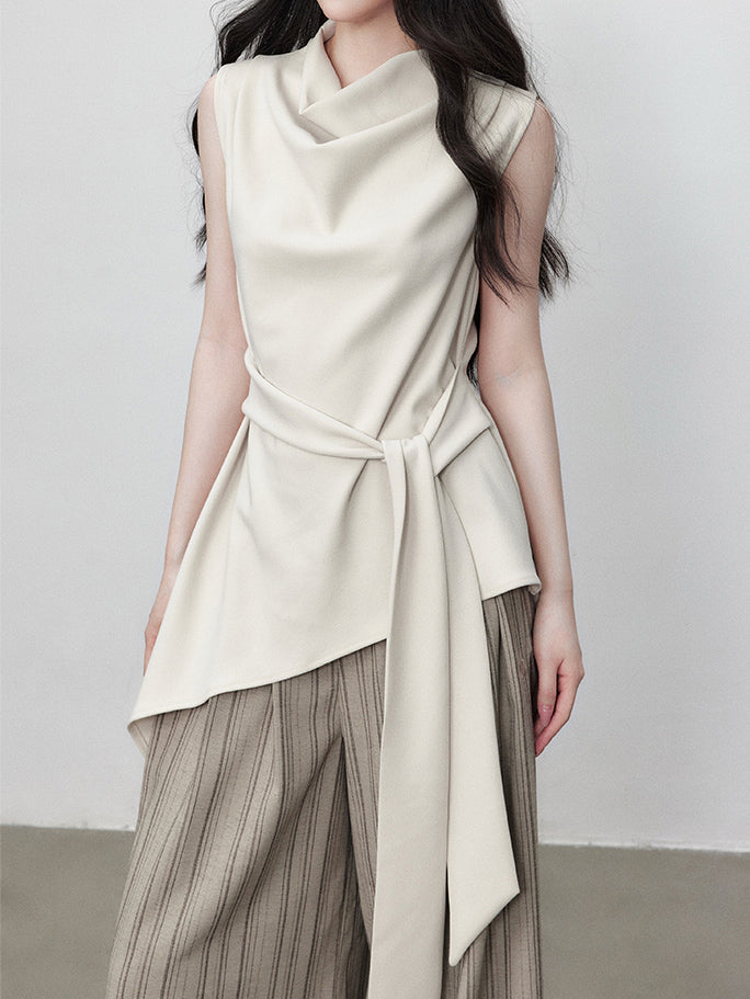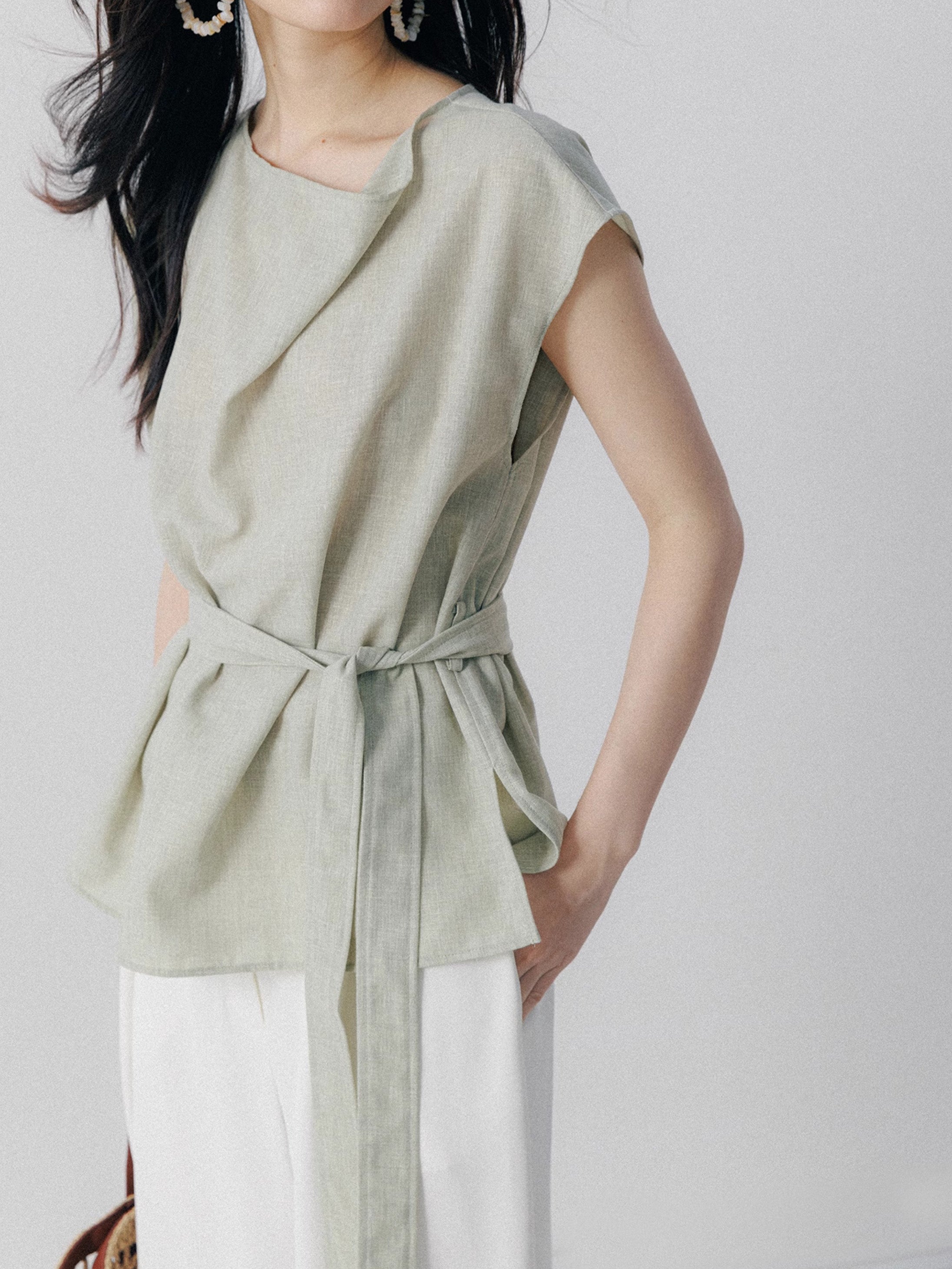 Asymmetrical Draped Belted Blouse (Can be coordinated)