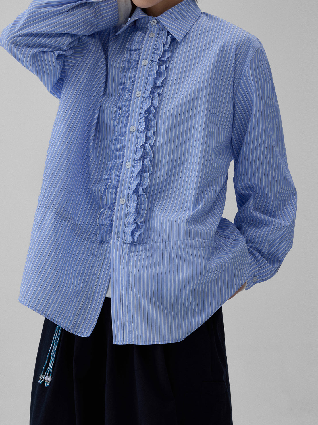 Front frilled striped shirt