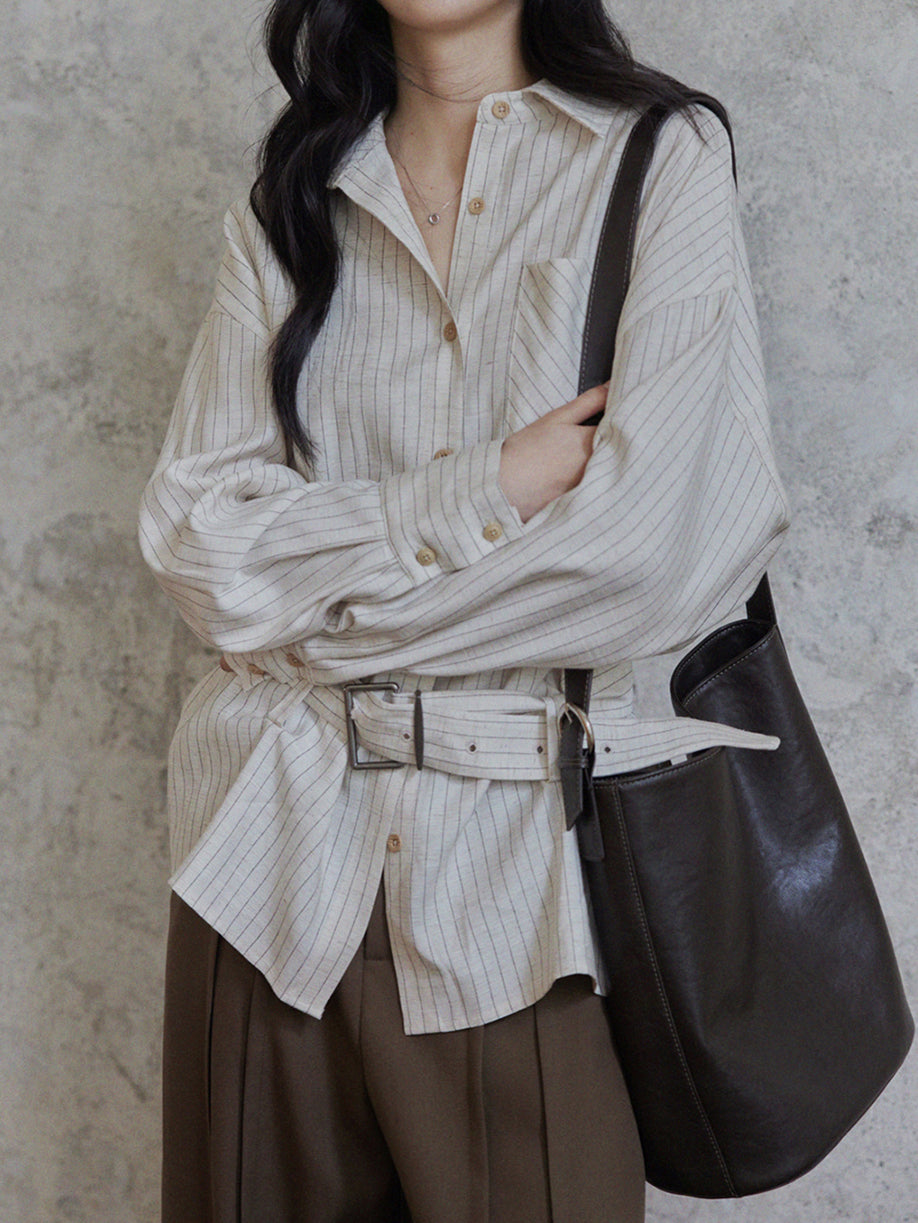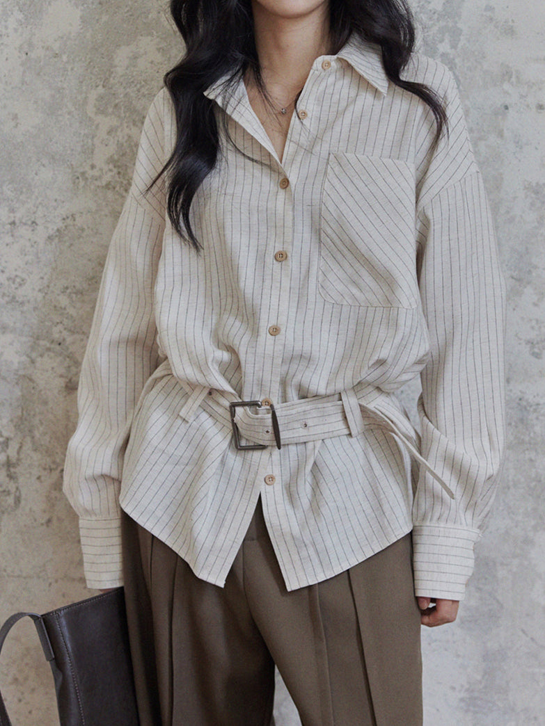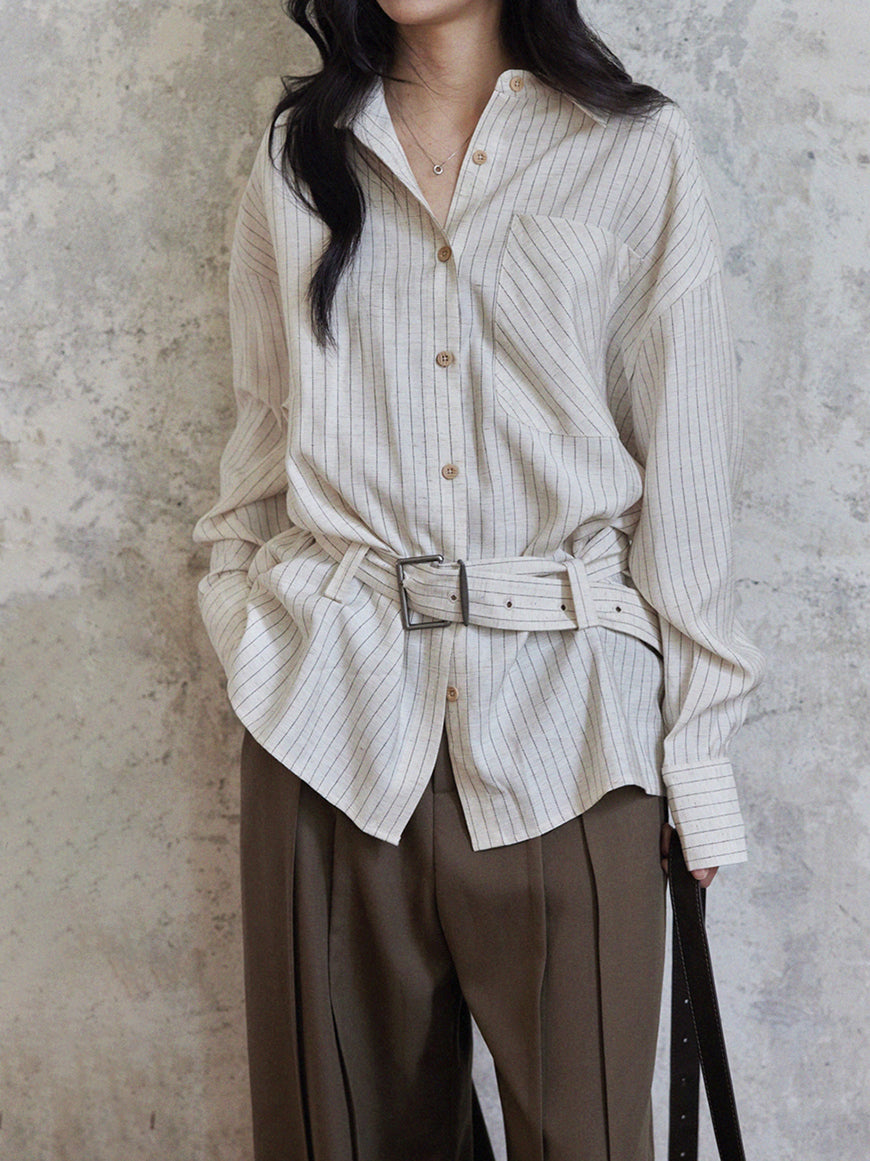 Buckle Belt Striped Shirt