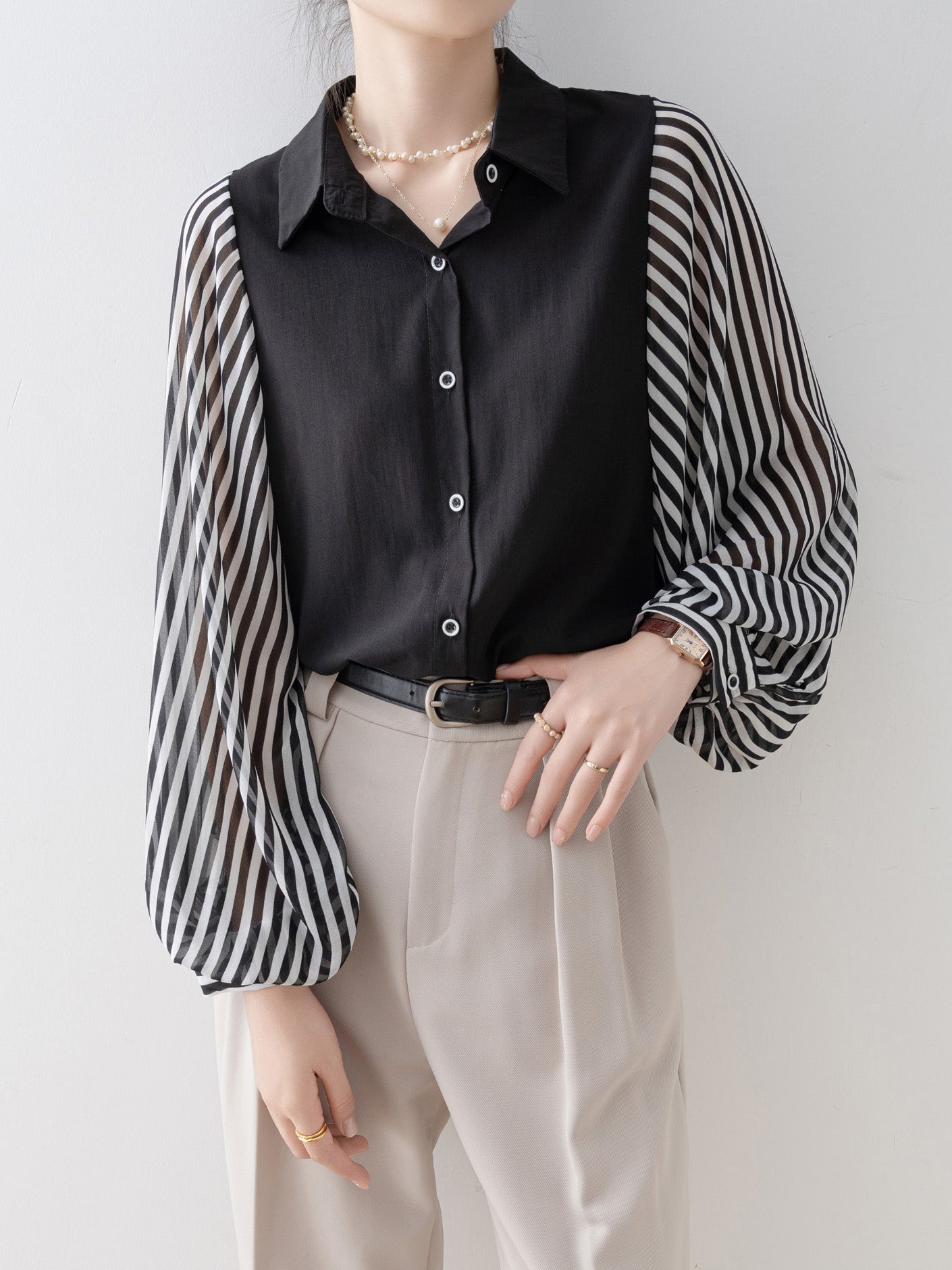 striped sleeve shirt