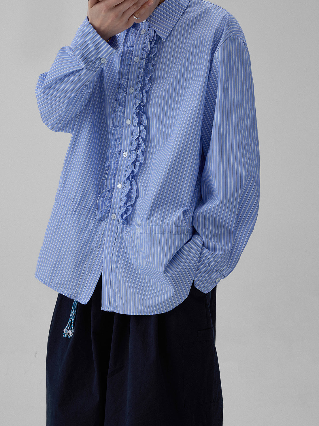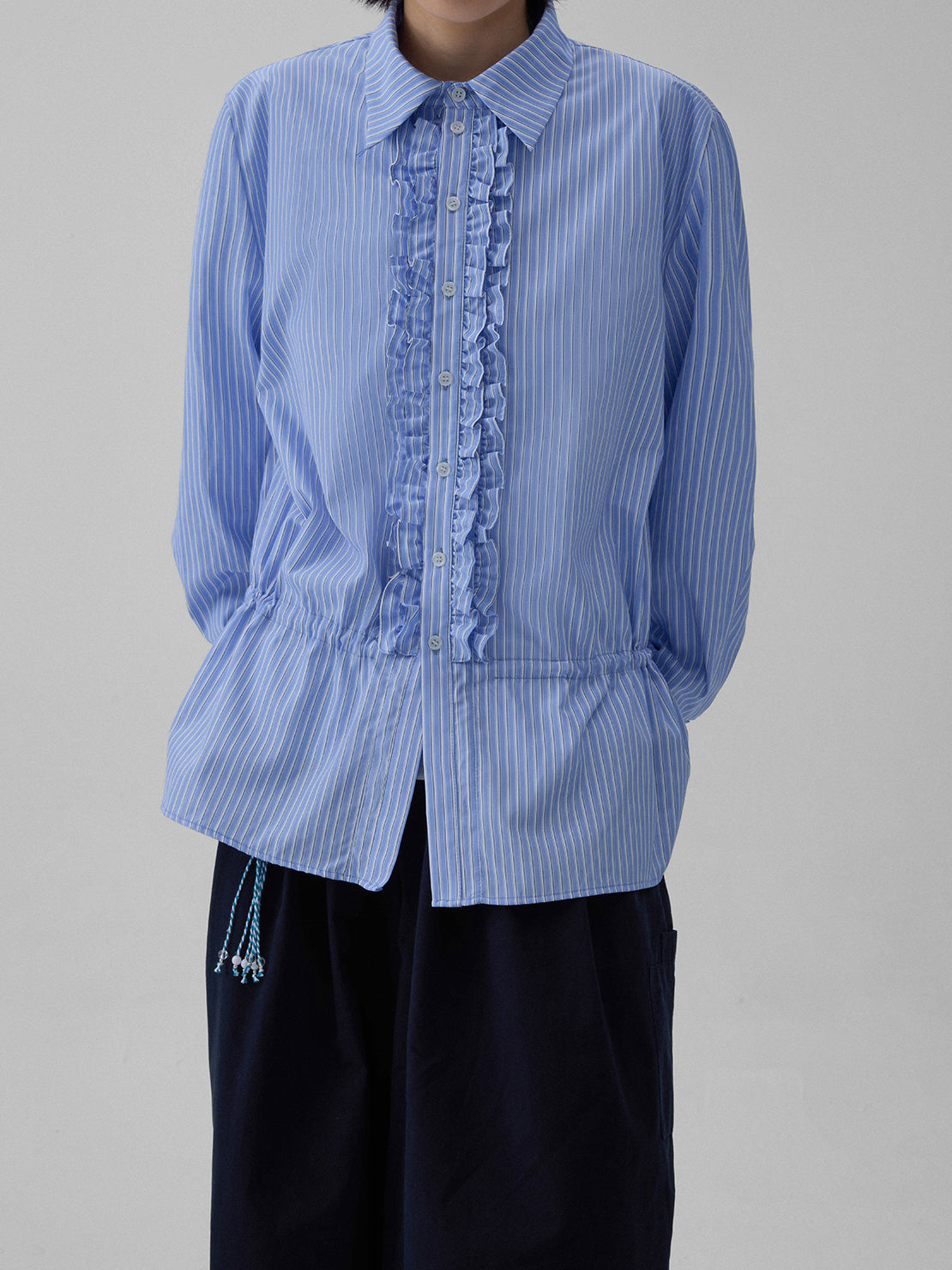 Striped drawstring belt design shirt