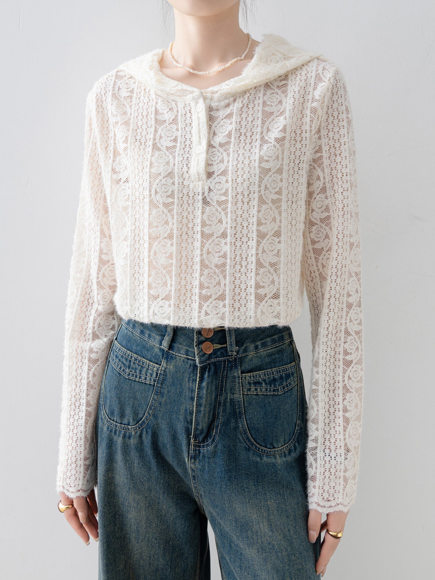 Hooded lace scallop blouse