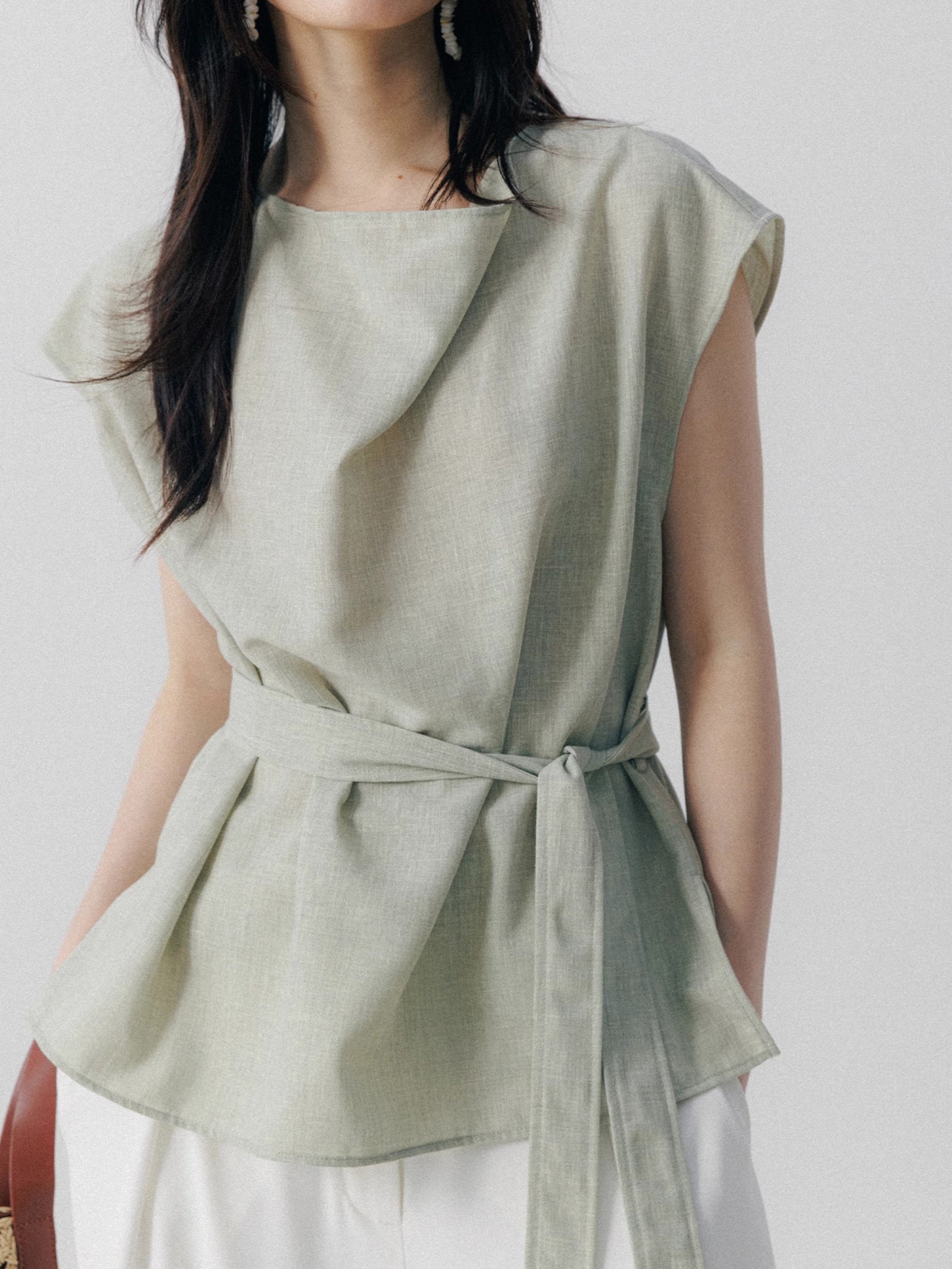 Draped belted blouse