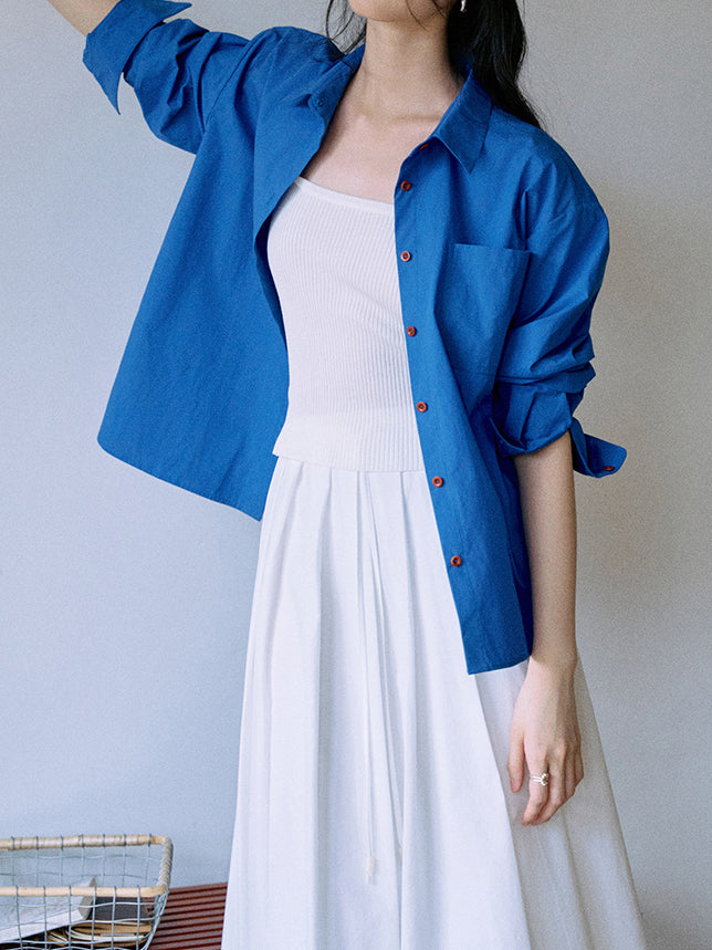 Deep V-shaped layered denim shirt (can be coordinated)