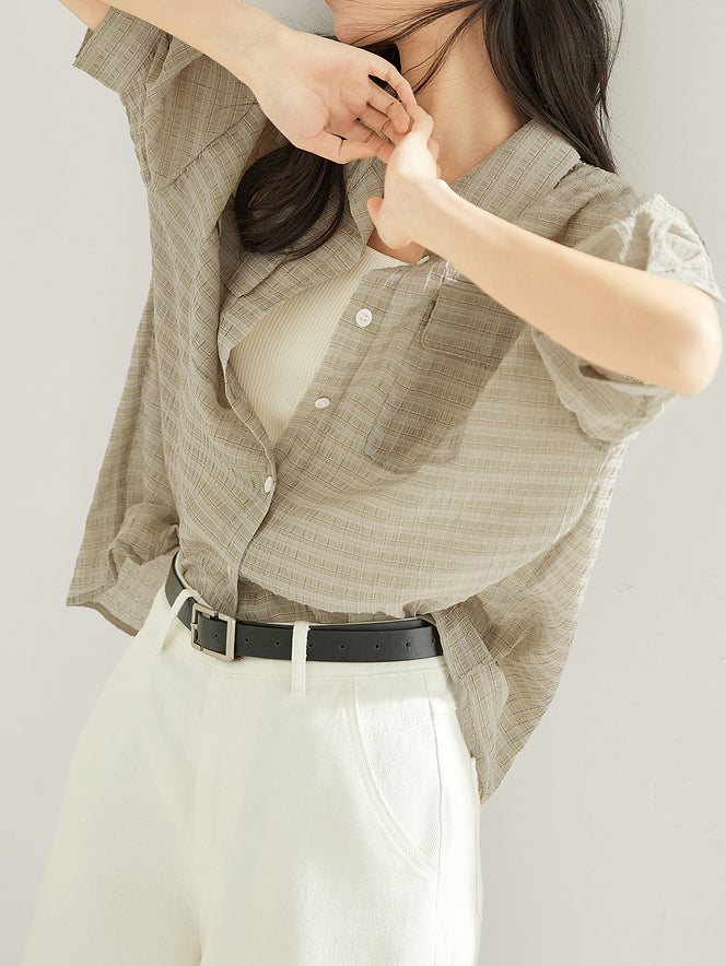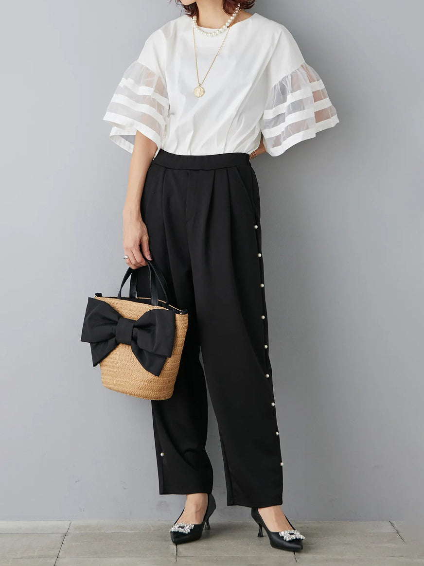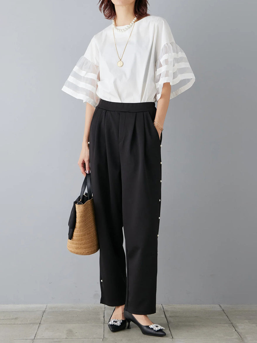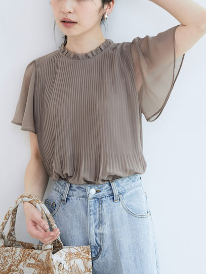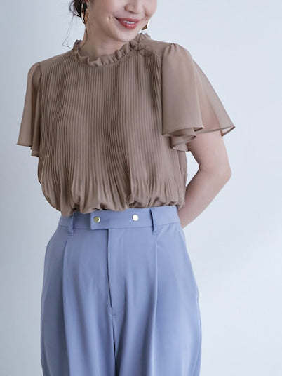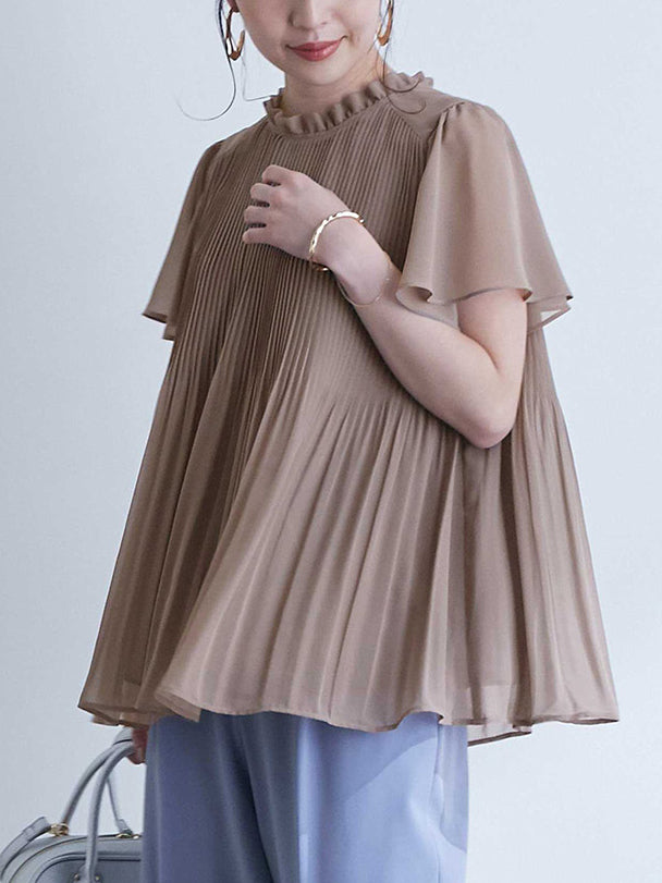 Flared chiffon pleated short sleeve blouse in 3 colors