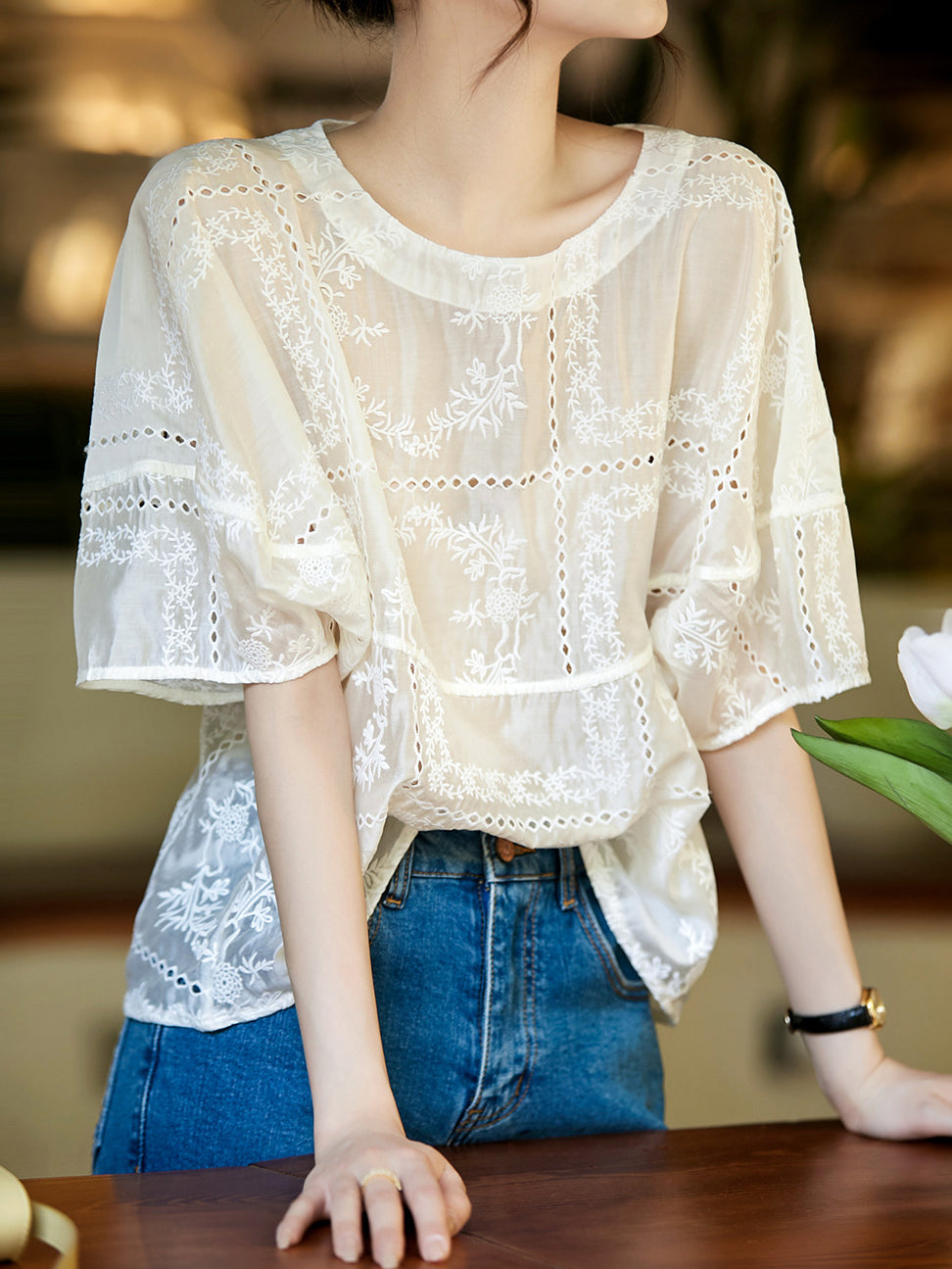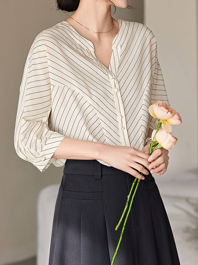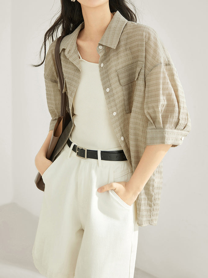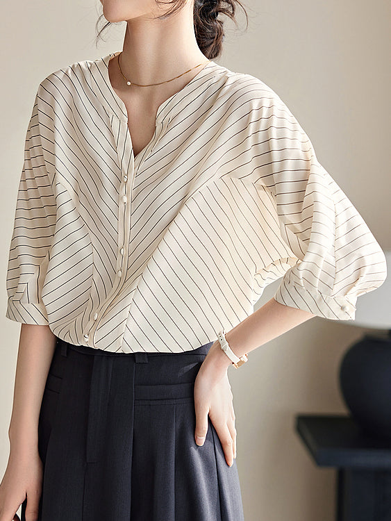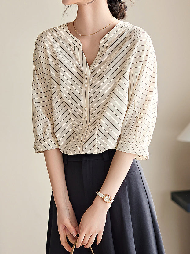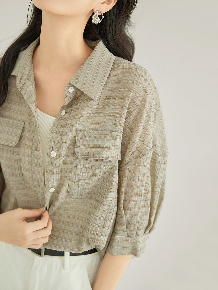 Flared chiffon pleated short sleeve blouse in 3 colors