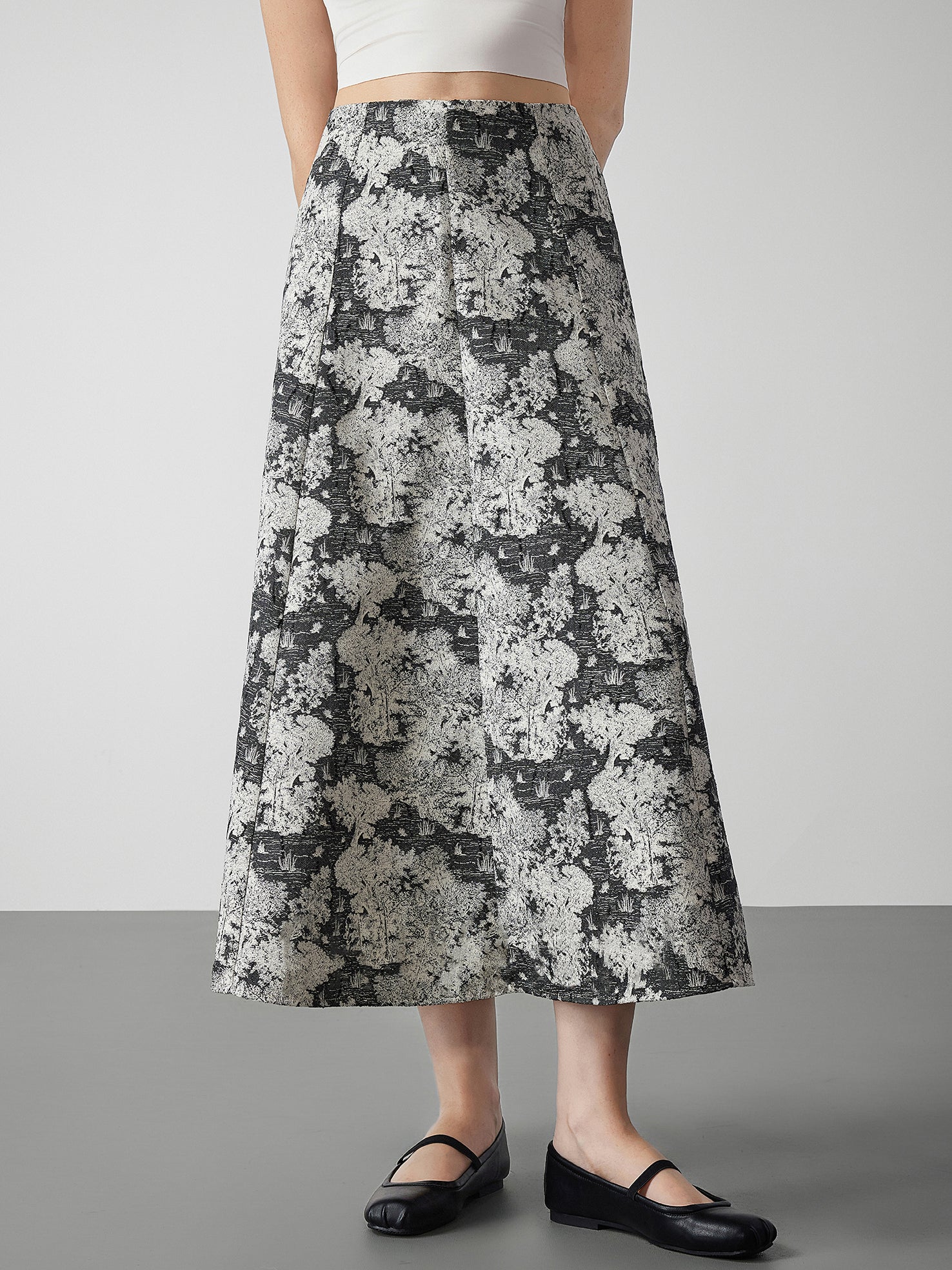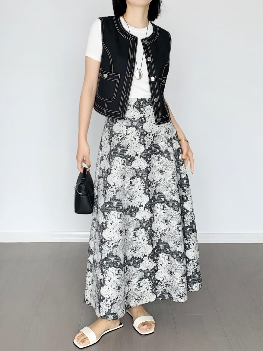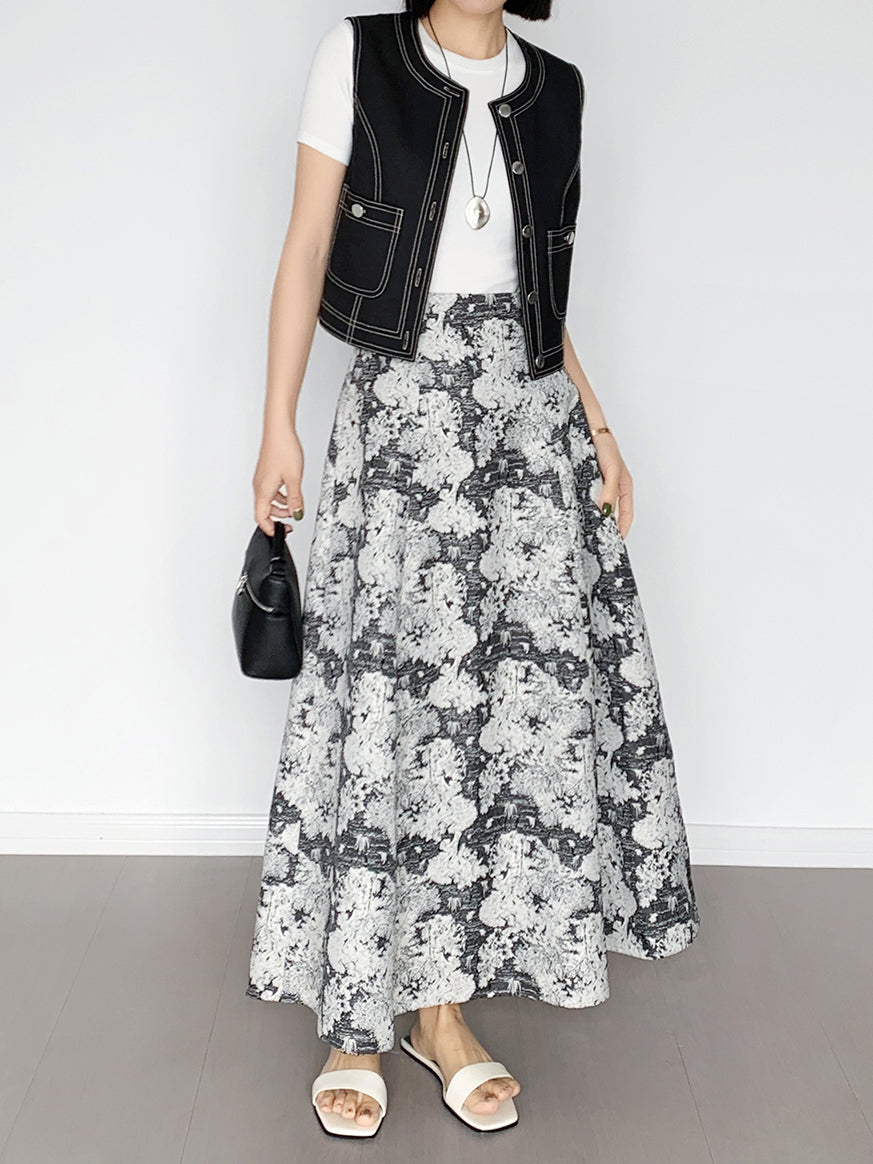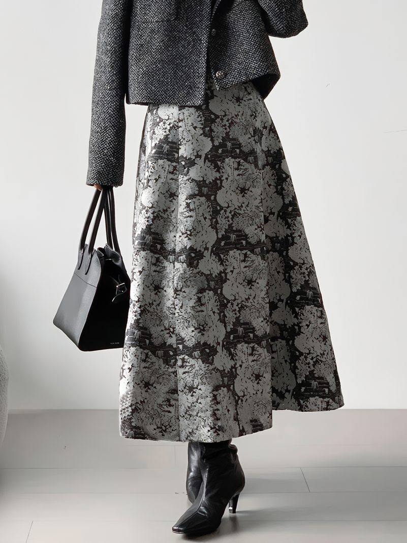 A long skirt with jacquard detailing that adds an elegant touch to your outfit.
