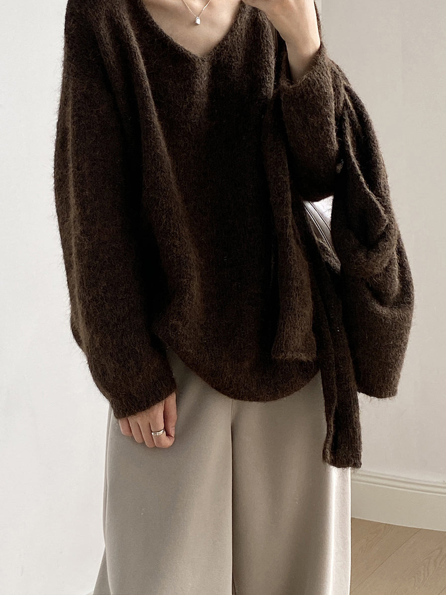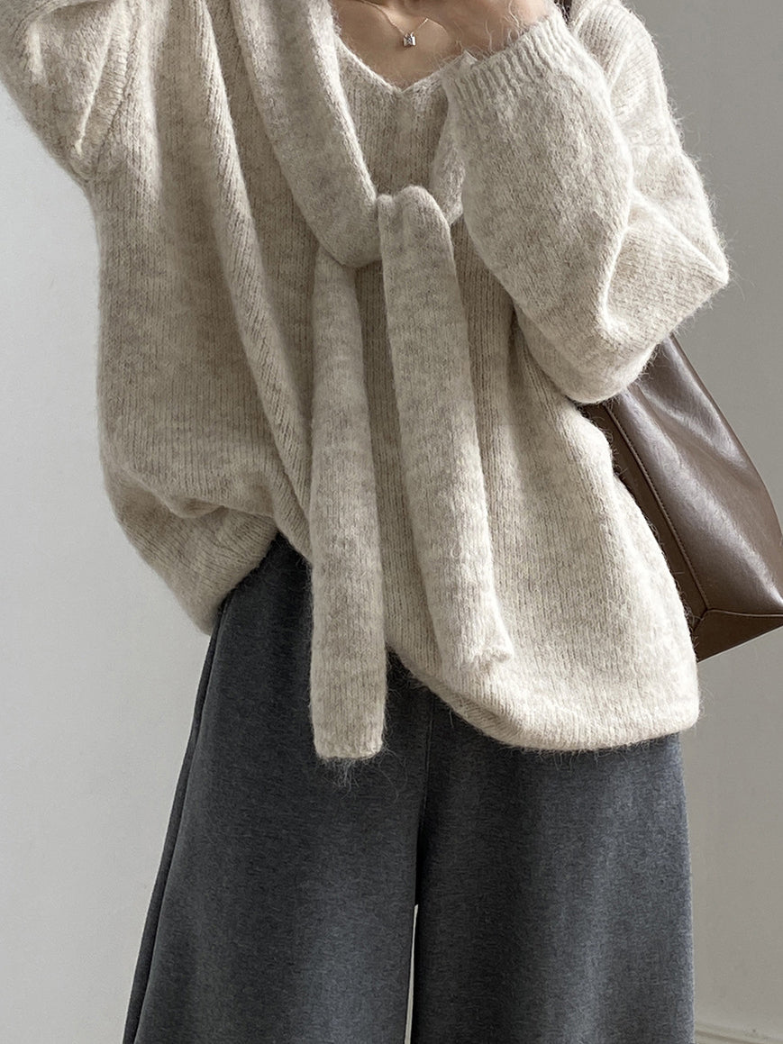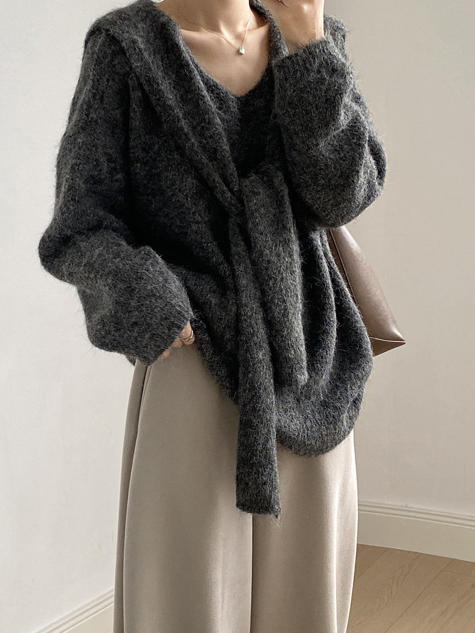 V-neck knit ensemble (4 colors)