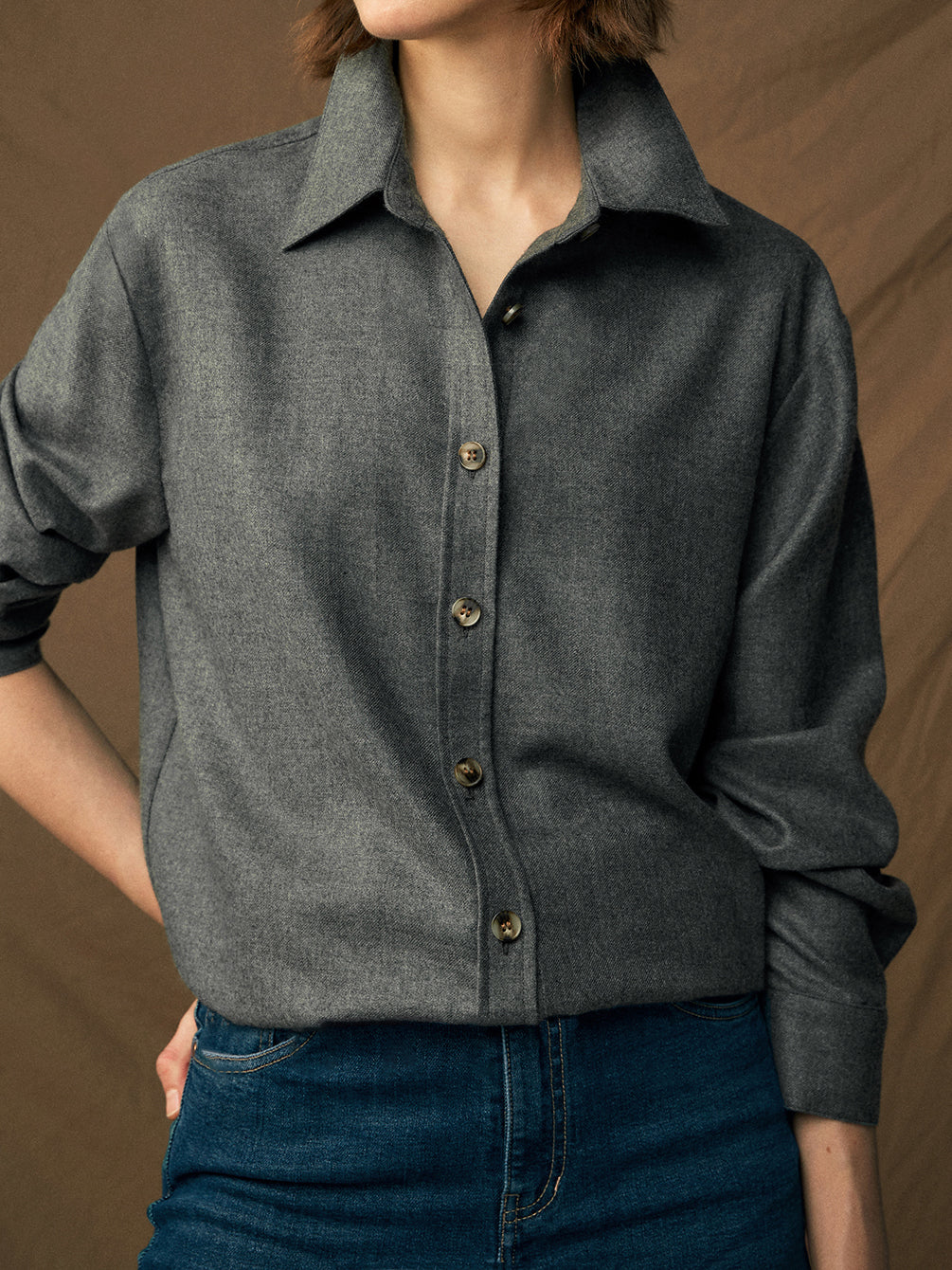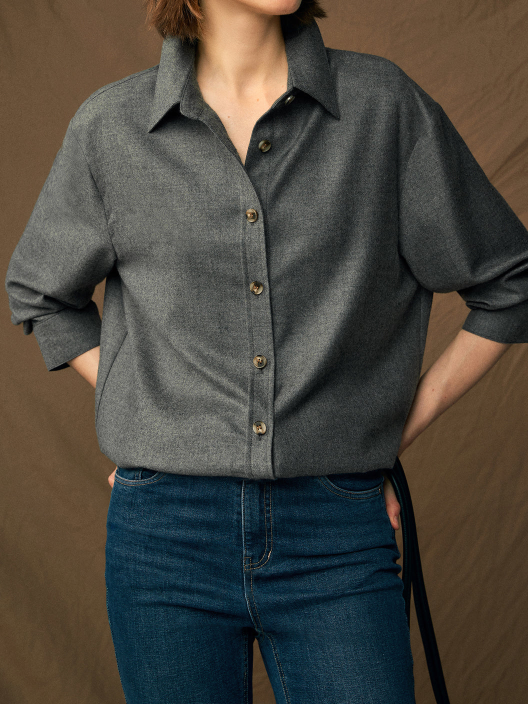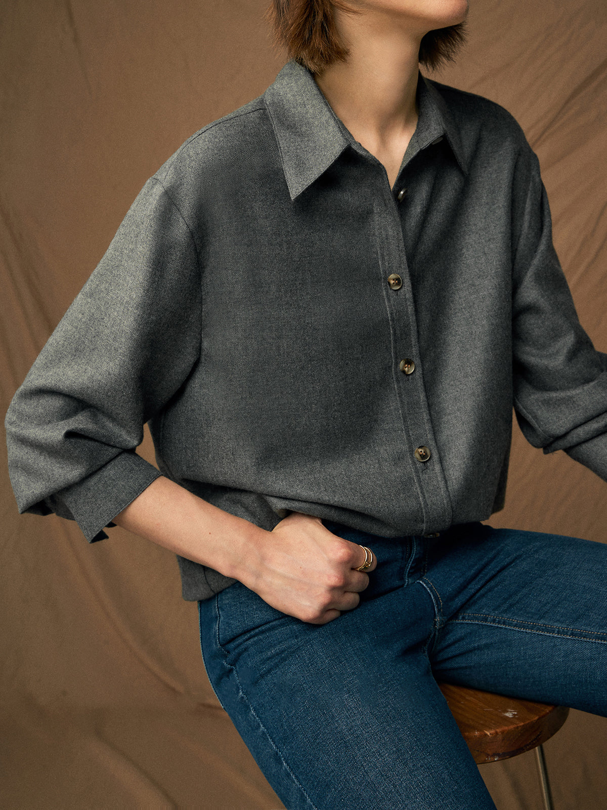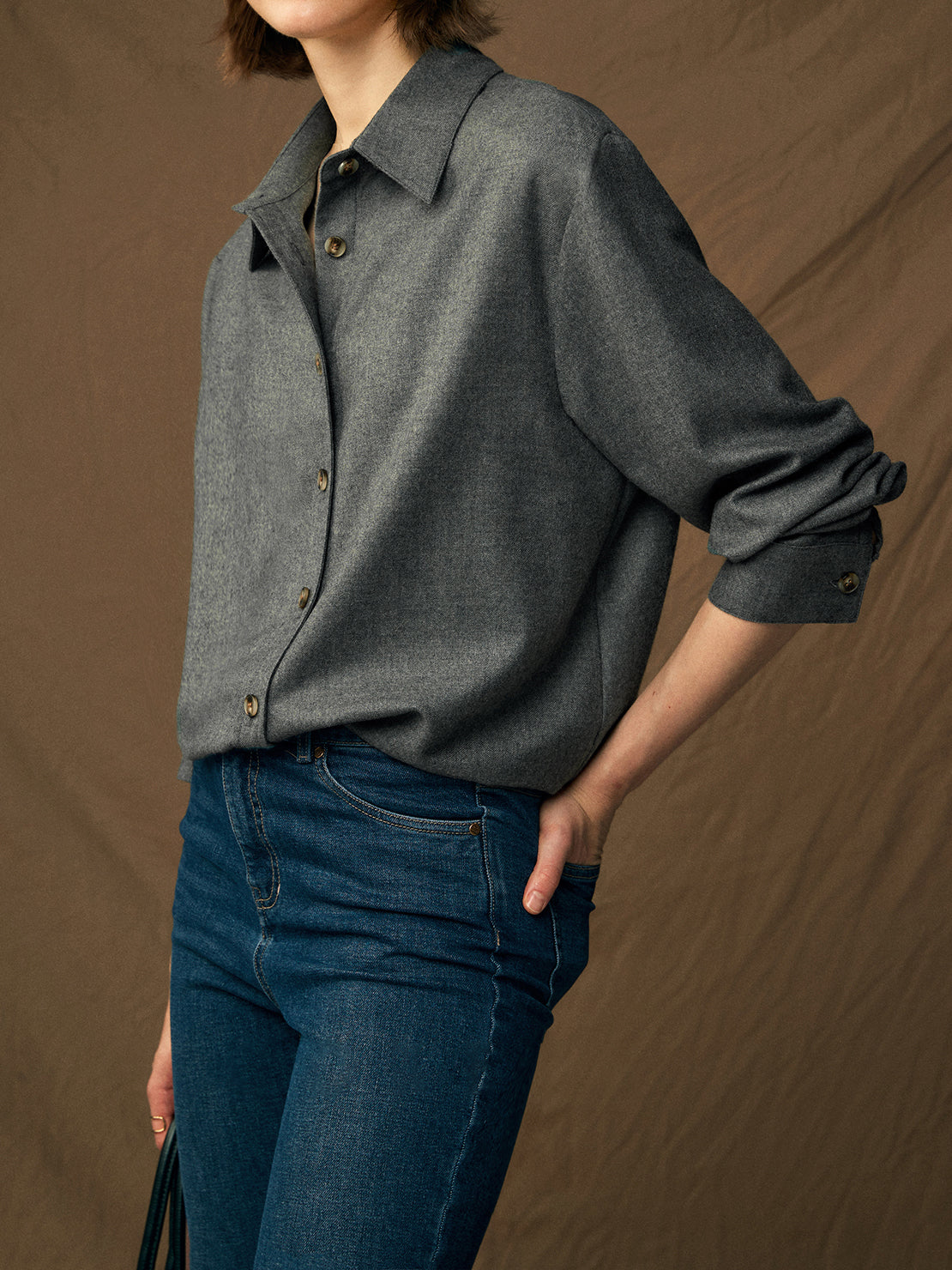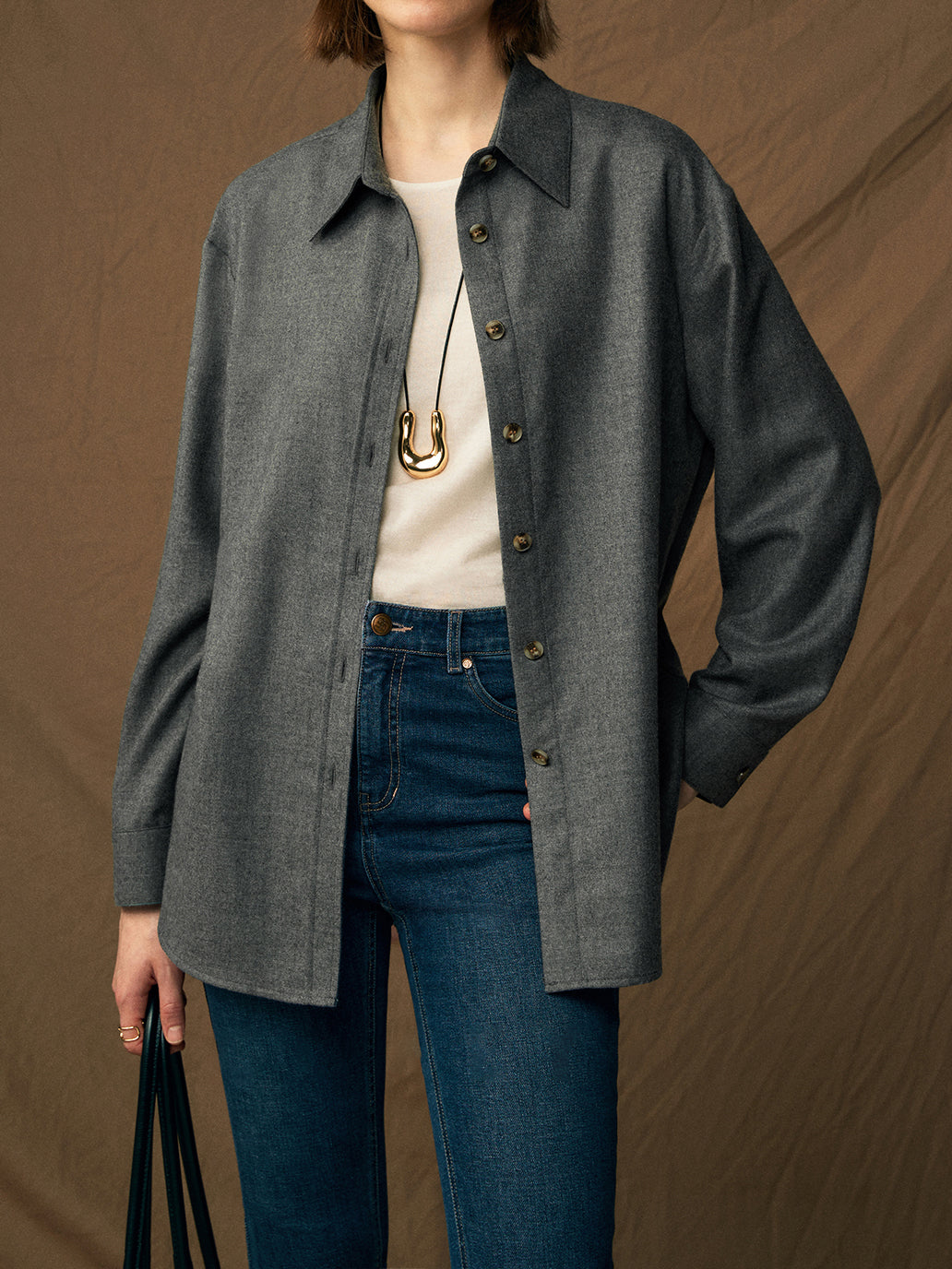 With its simple design, it can be worn as a jacket like a shirt, making it a piece that can be worn for a long time from autumn to spring.