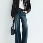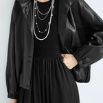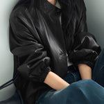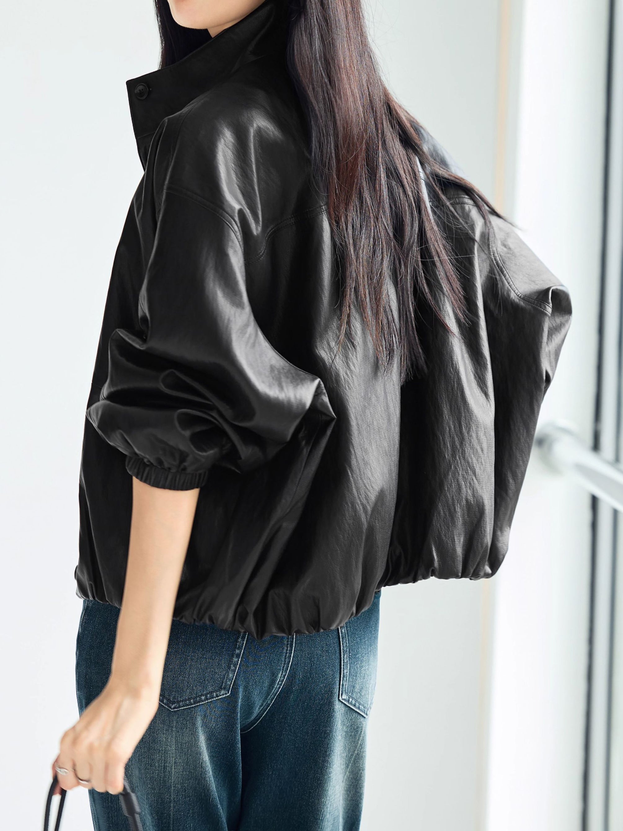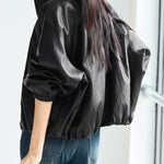 Drawstring hem leather jacket