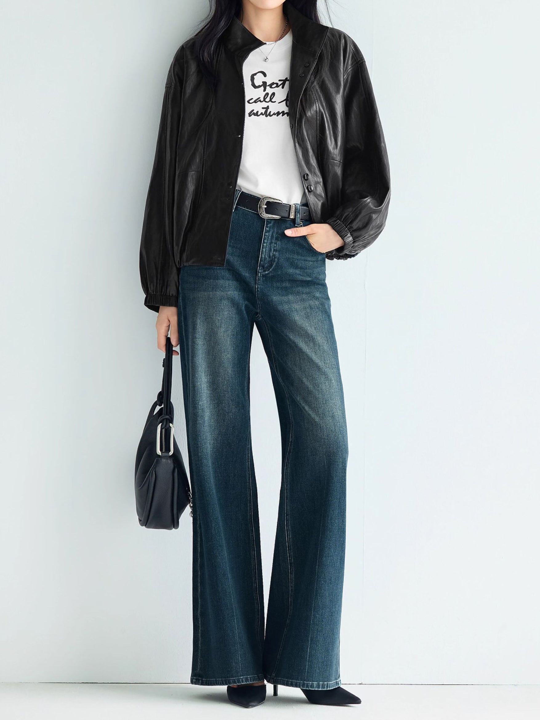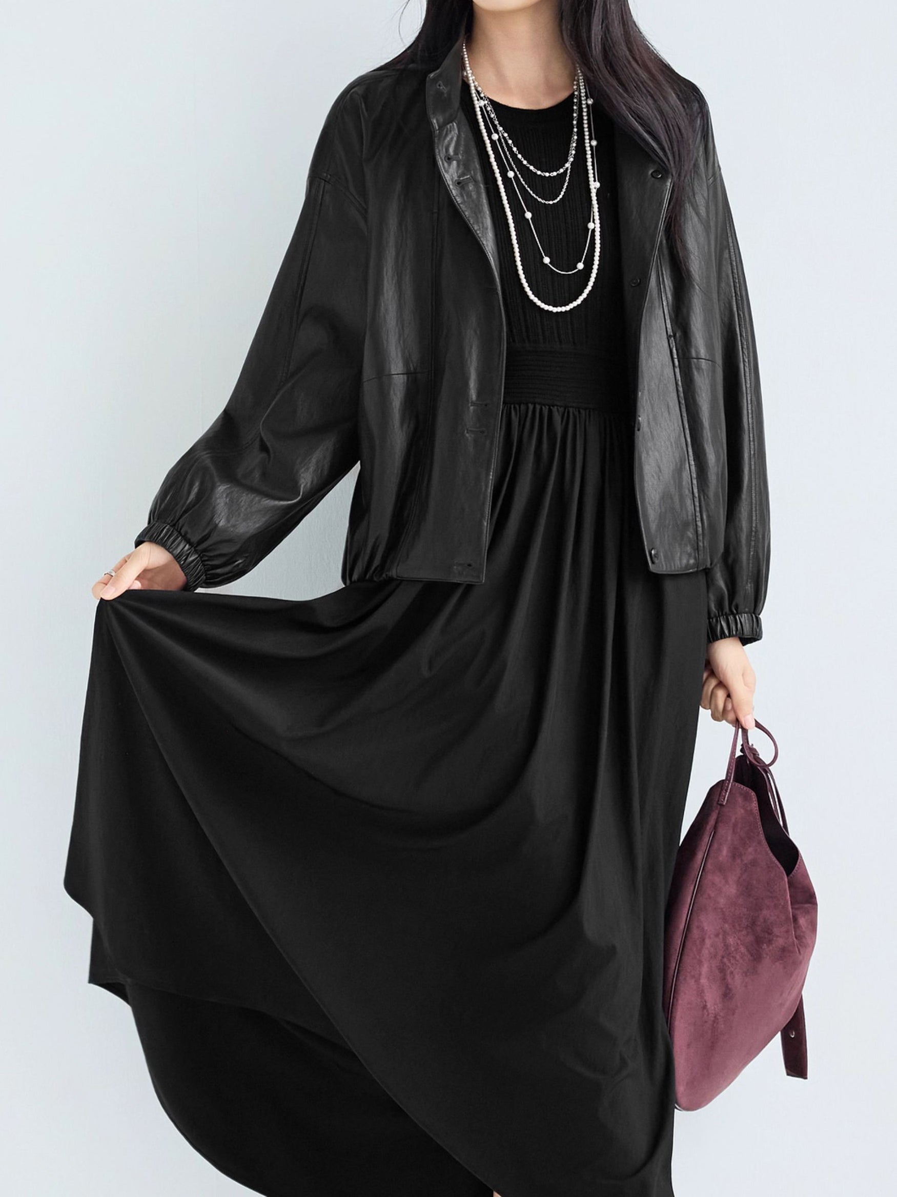 [Transforming the hard-looking leather into a feminine look]