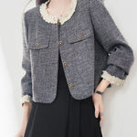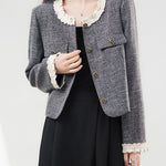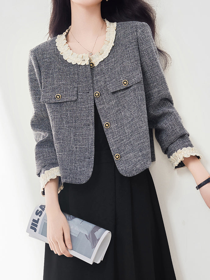 A tweed jacket with a mature, feminine feel.