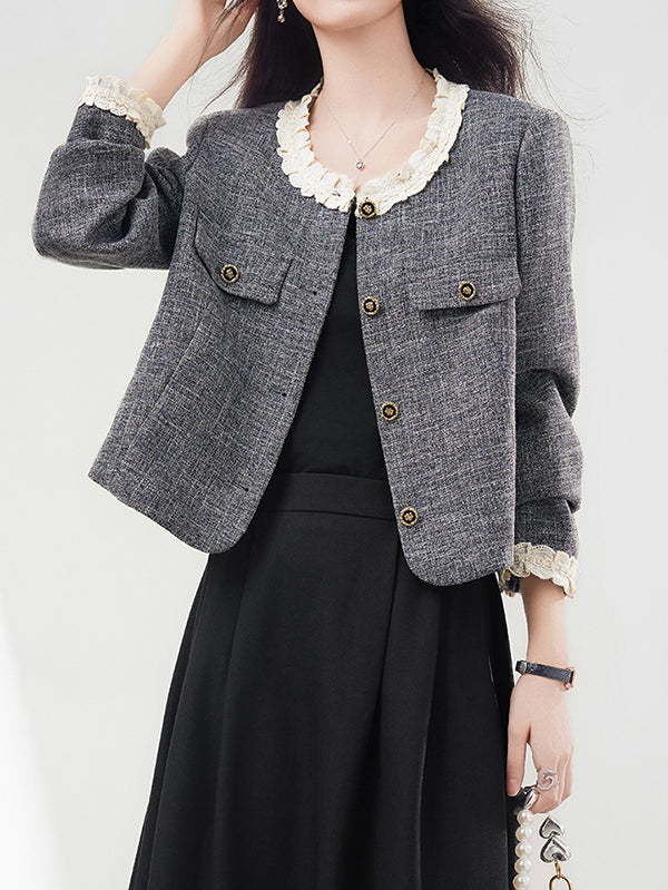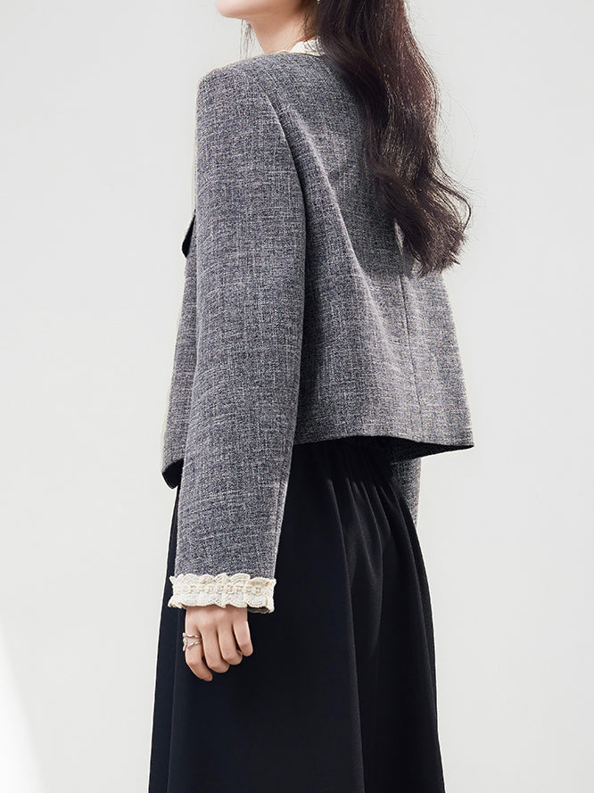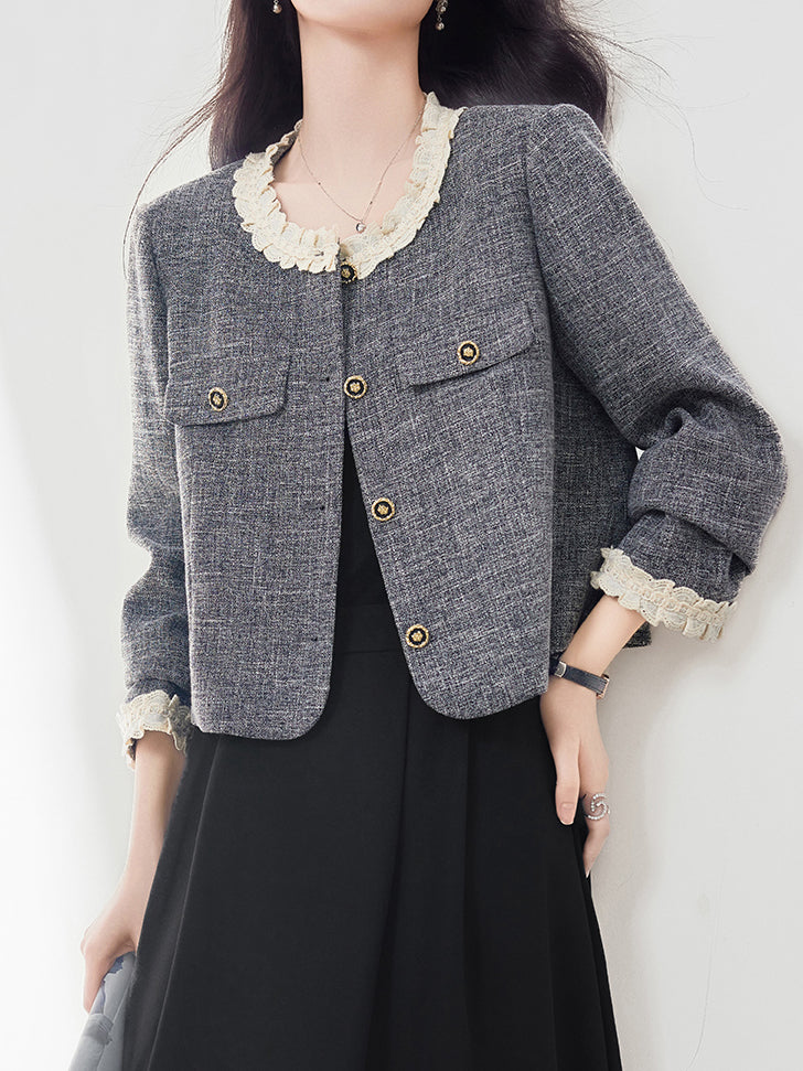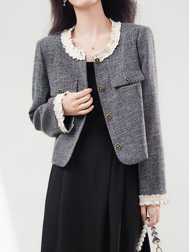 Ruffled docking tweed jacket