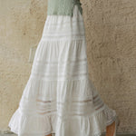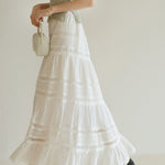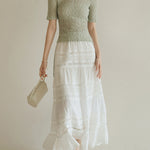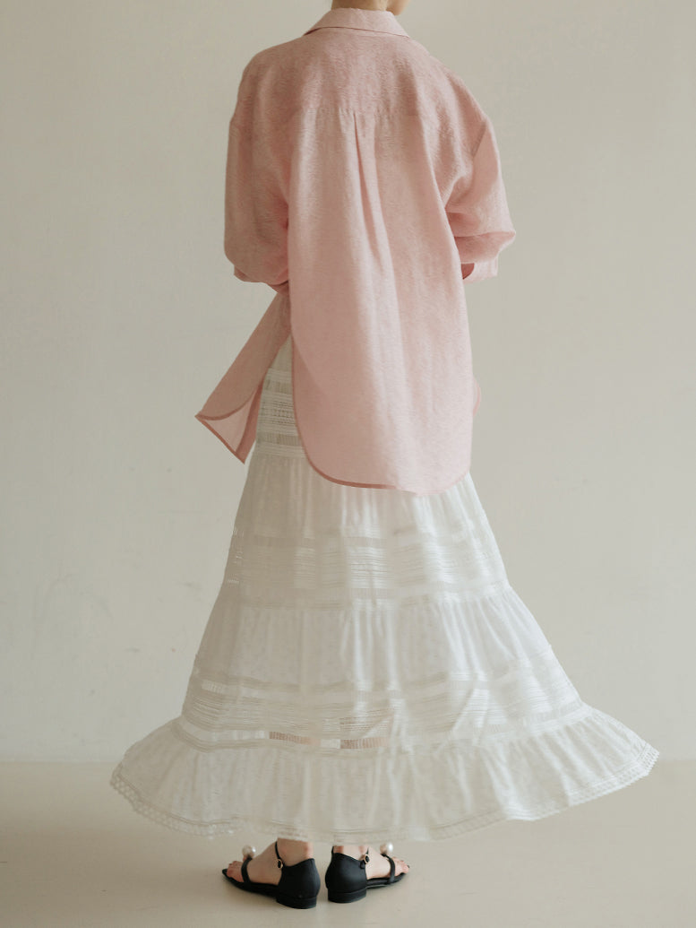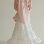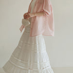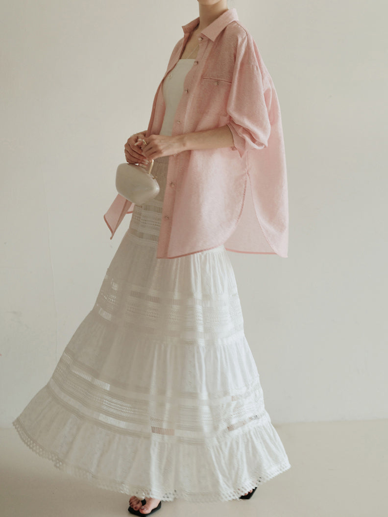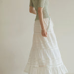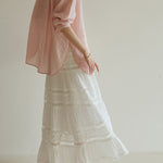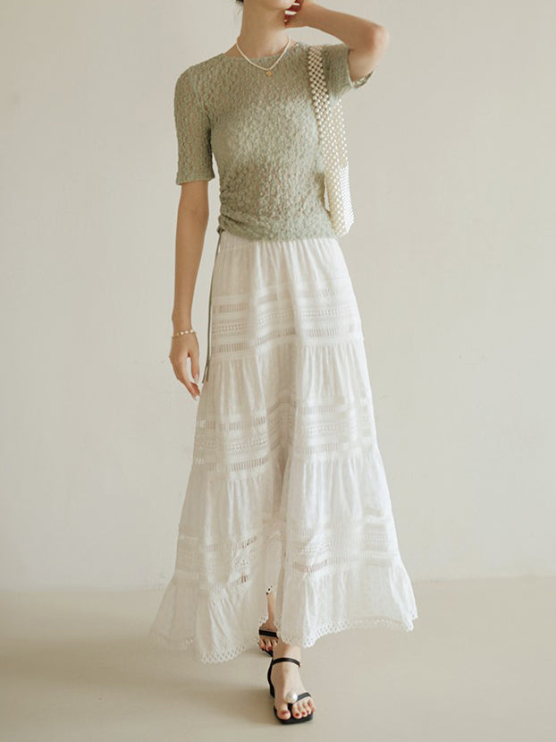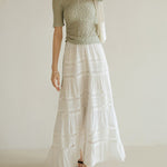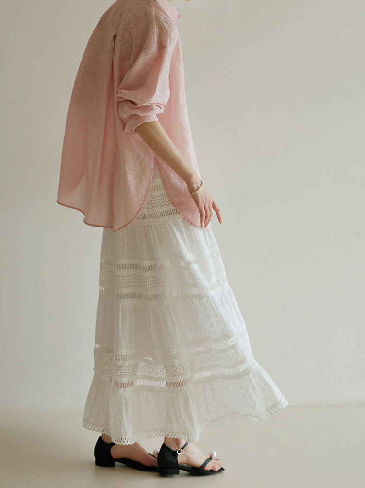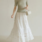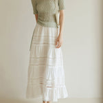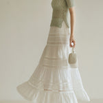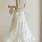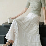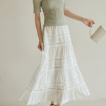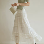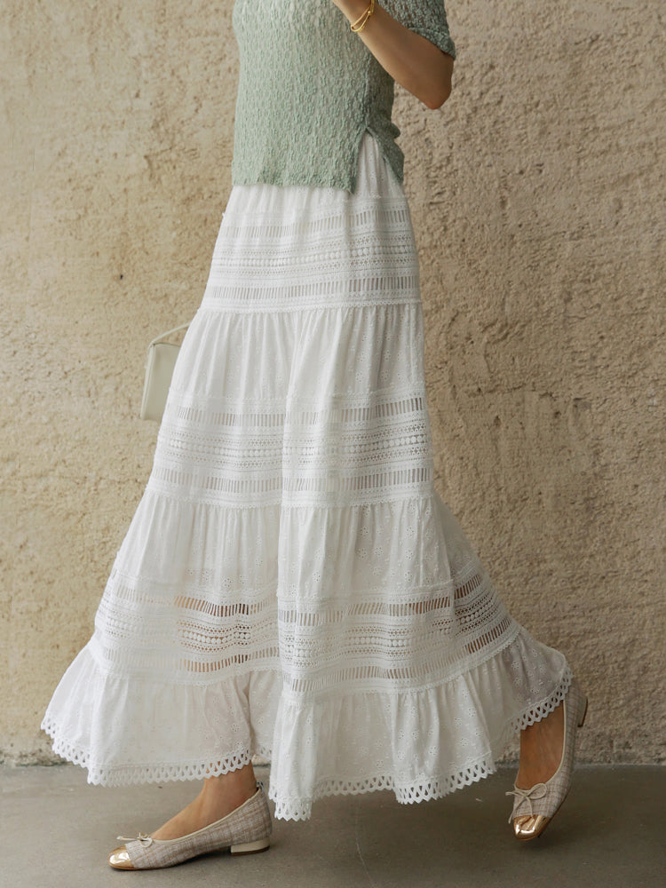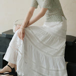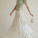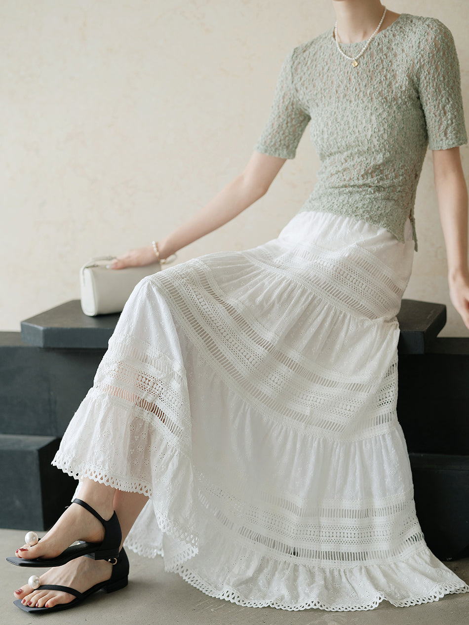 [A tiered skirt with lace cutwork for a gorgeous look】