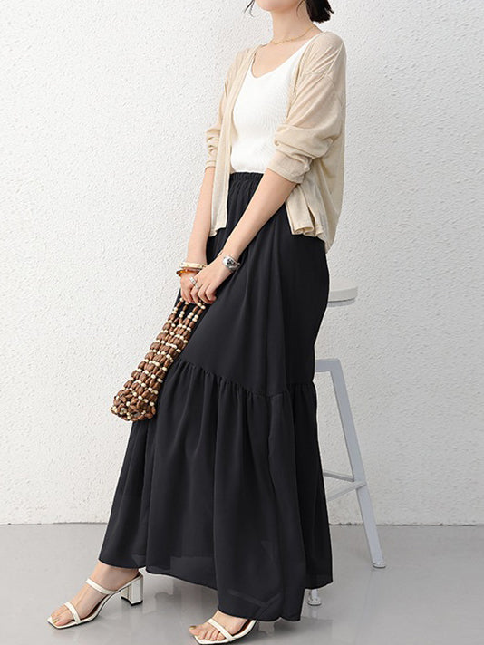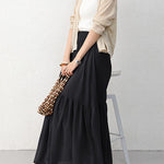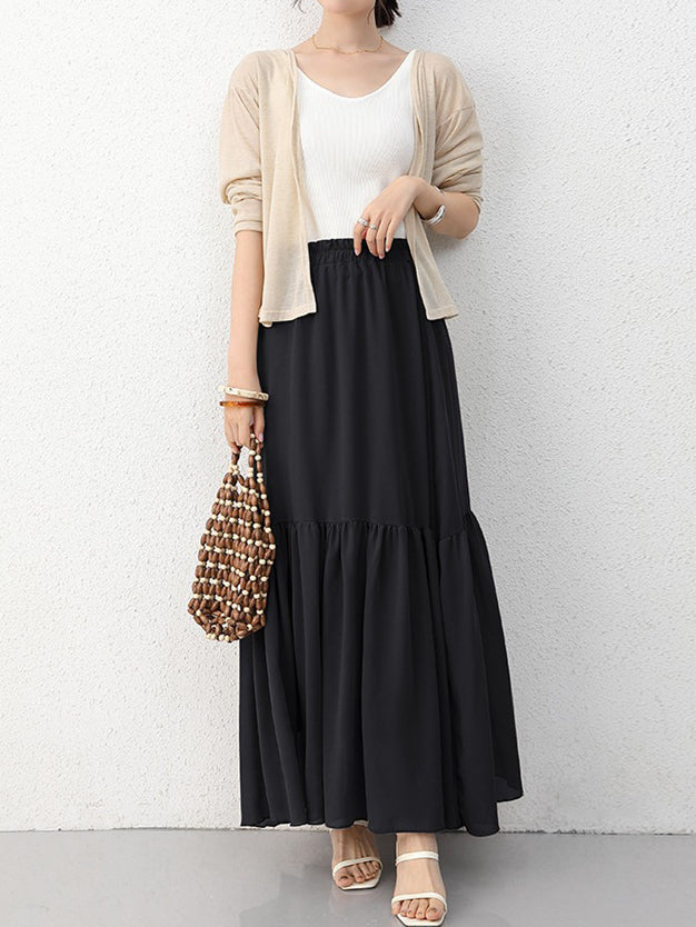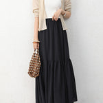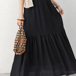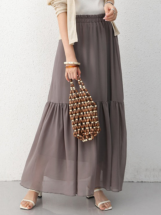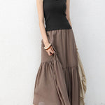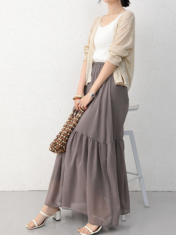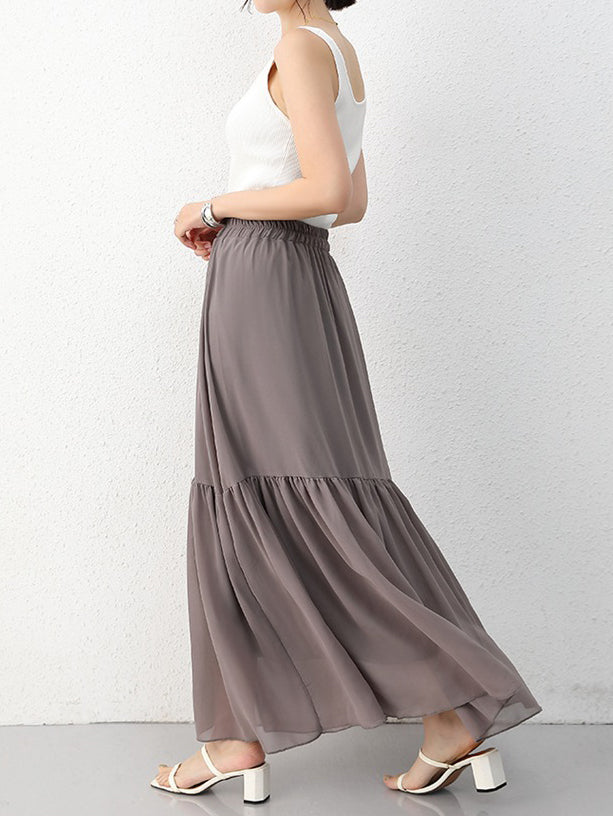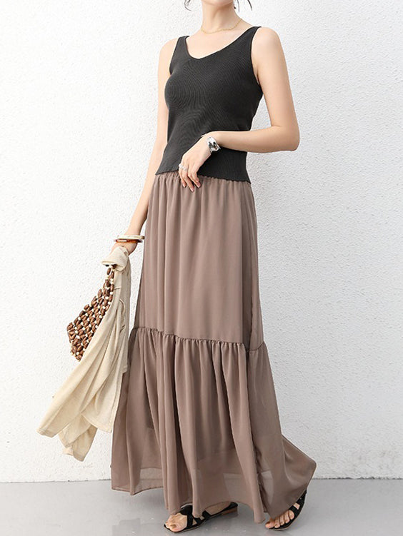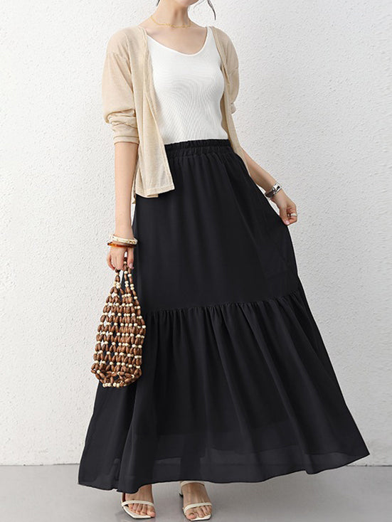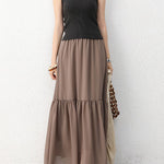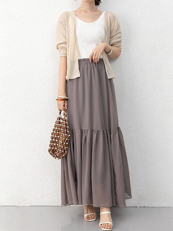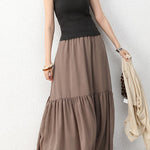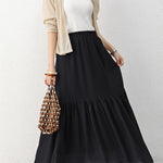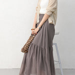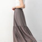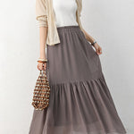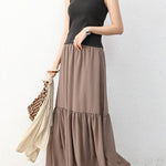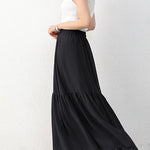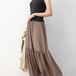 This tiered skirt has a soft, flowing texture and an A-line silhouette that makes it feminine and beautiful.