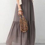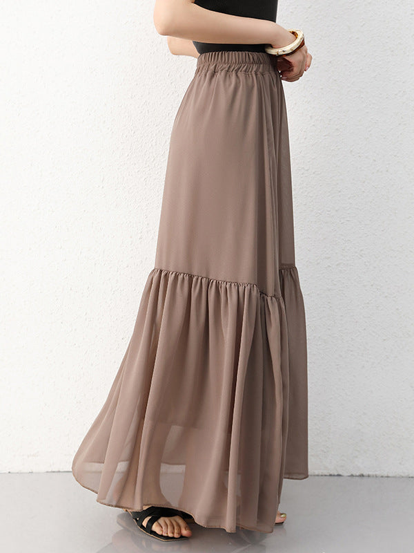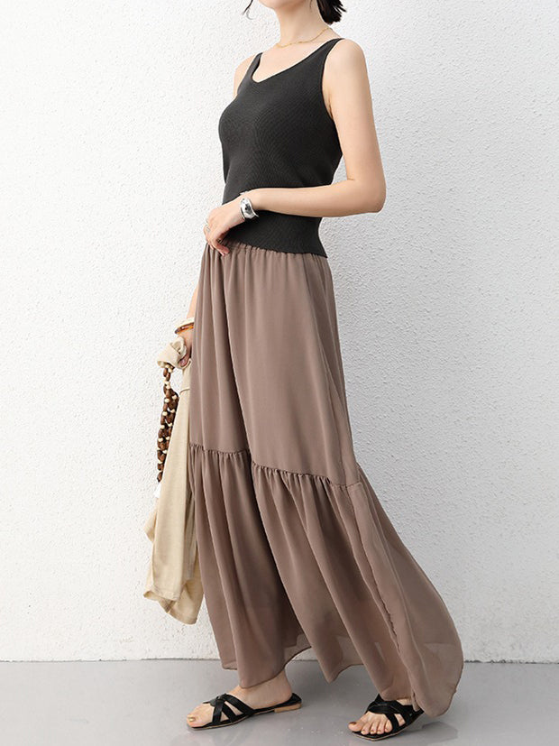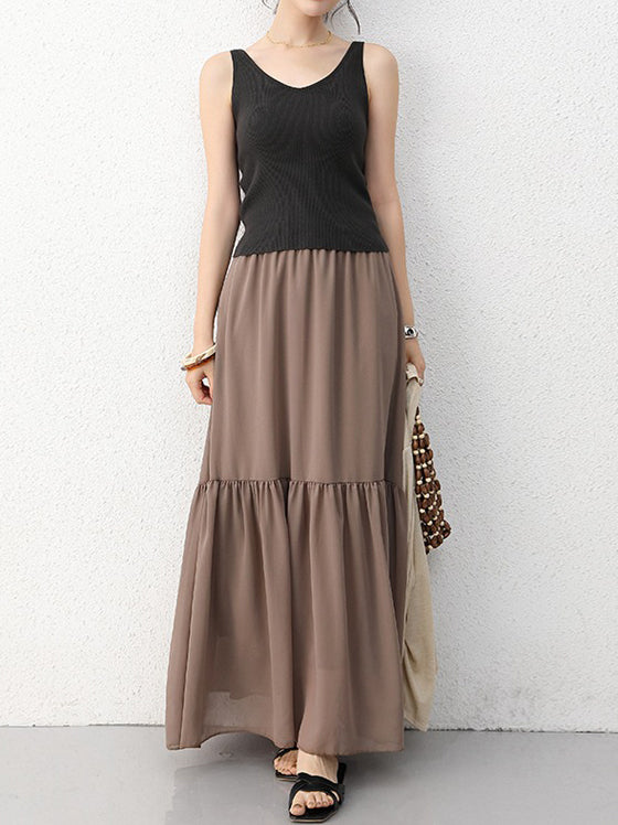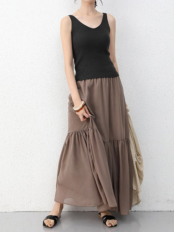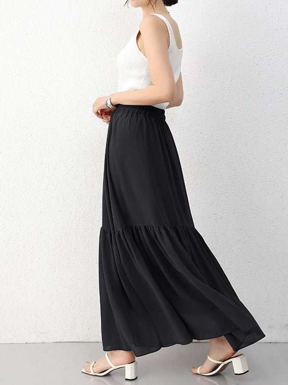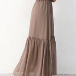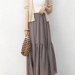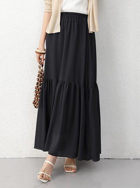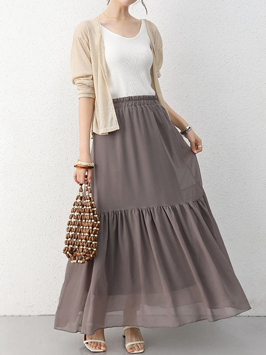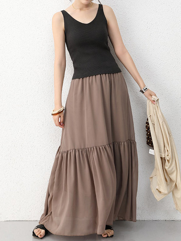 This tiered skirt has a soft, flowing texture and an A-line silhouette that makes it feminine and beautiful.
