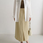 - You can enjoy an elegant look by pairing it with a simple blouse or knit .
