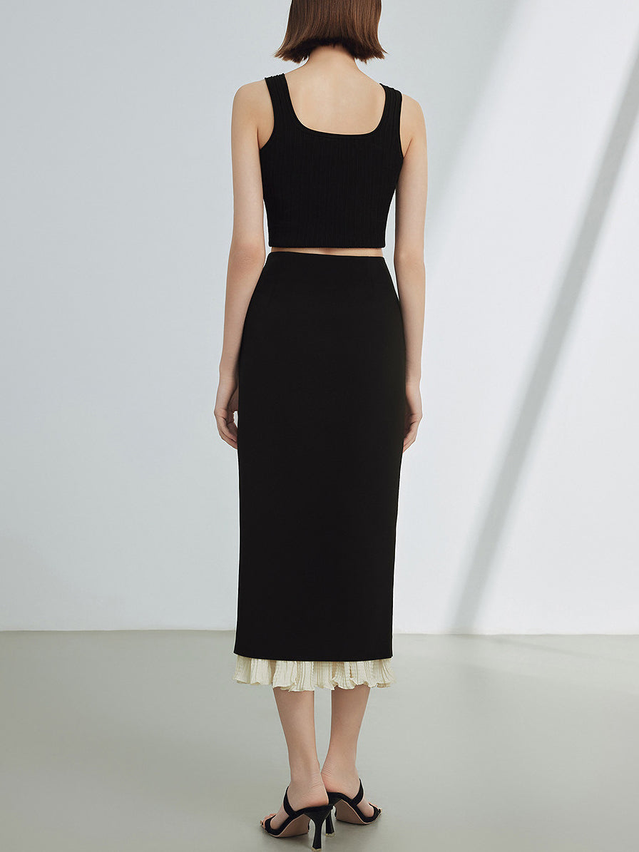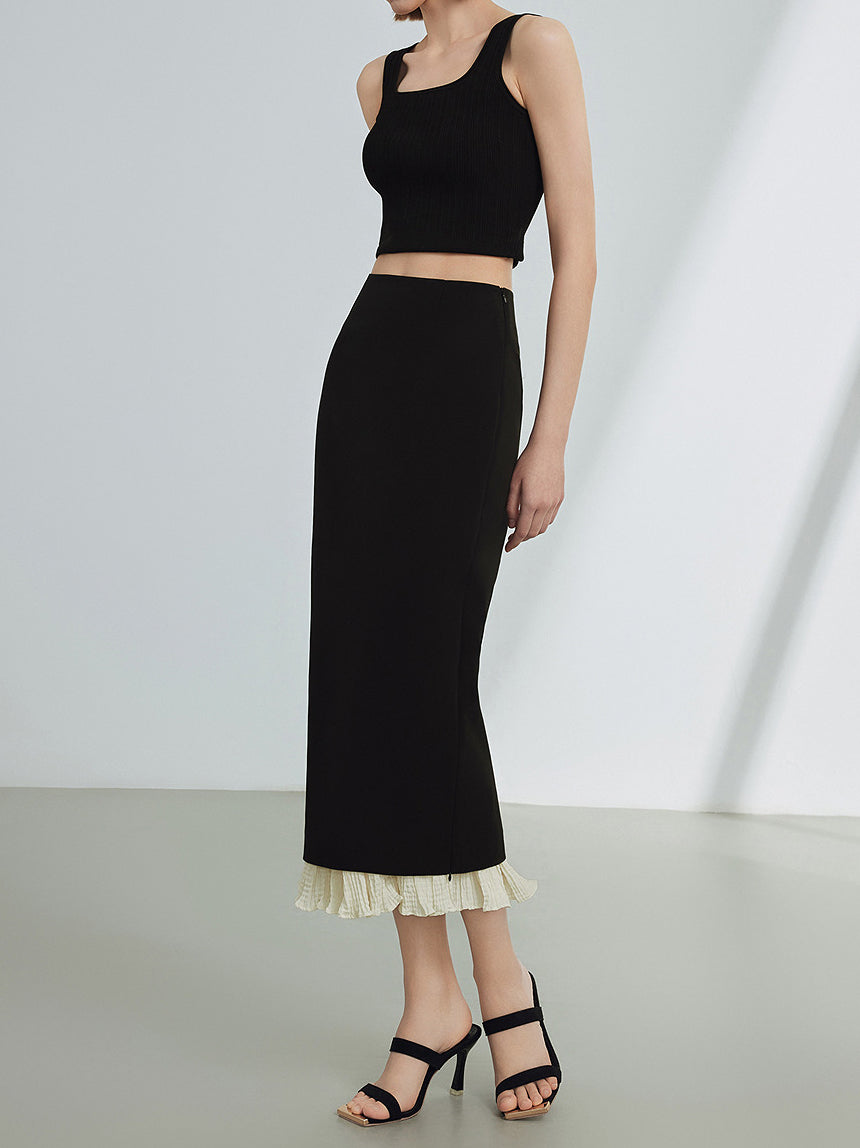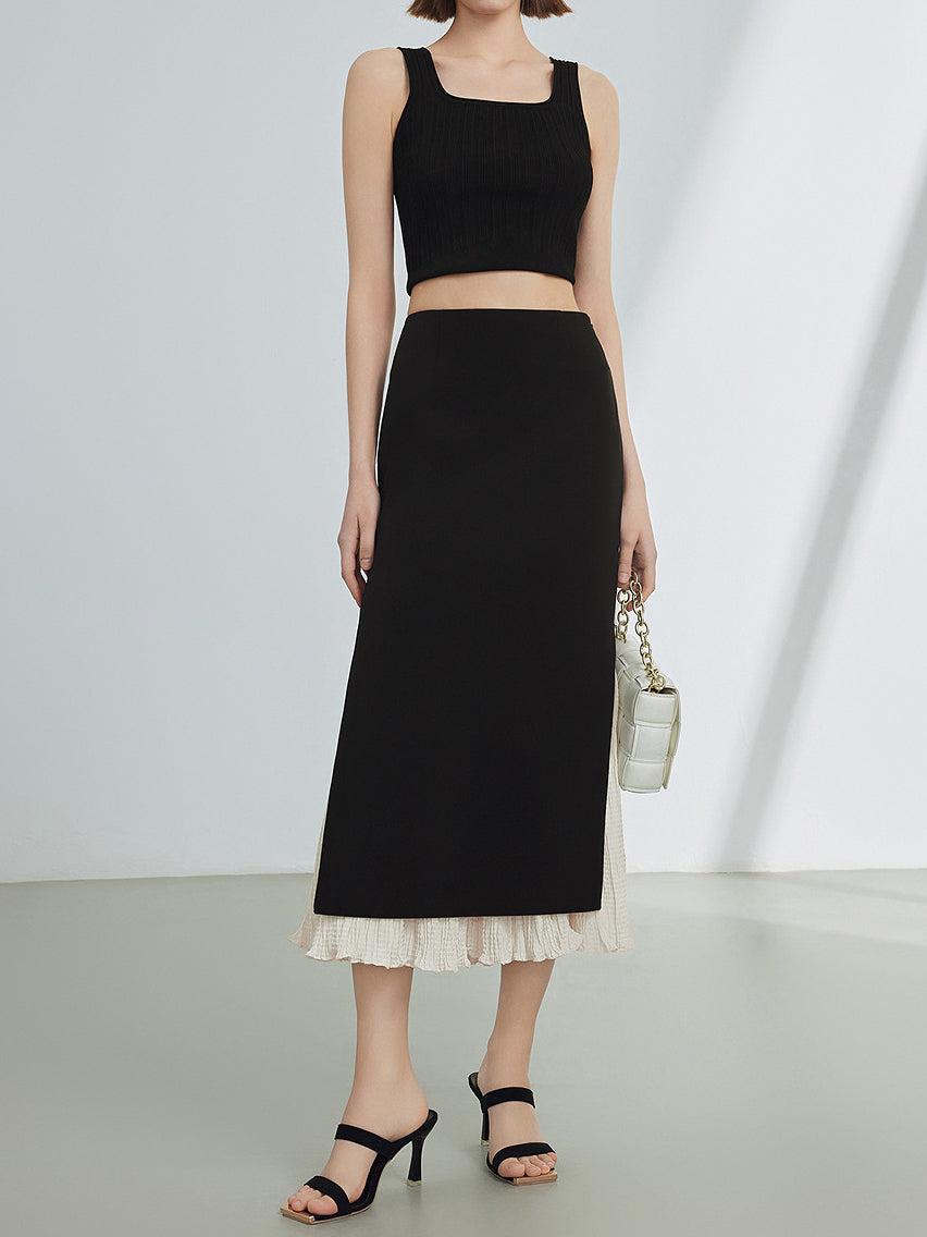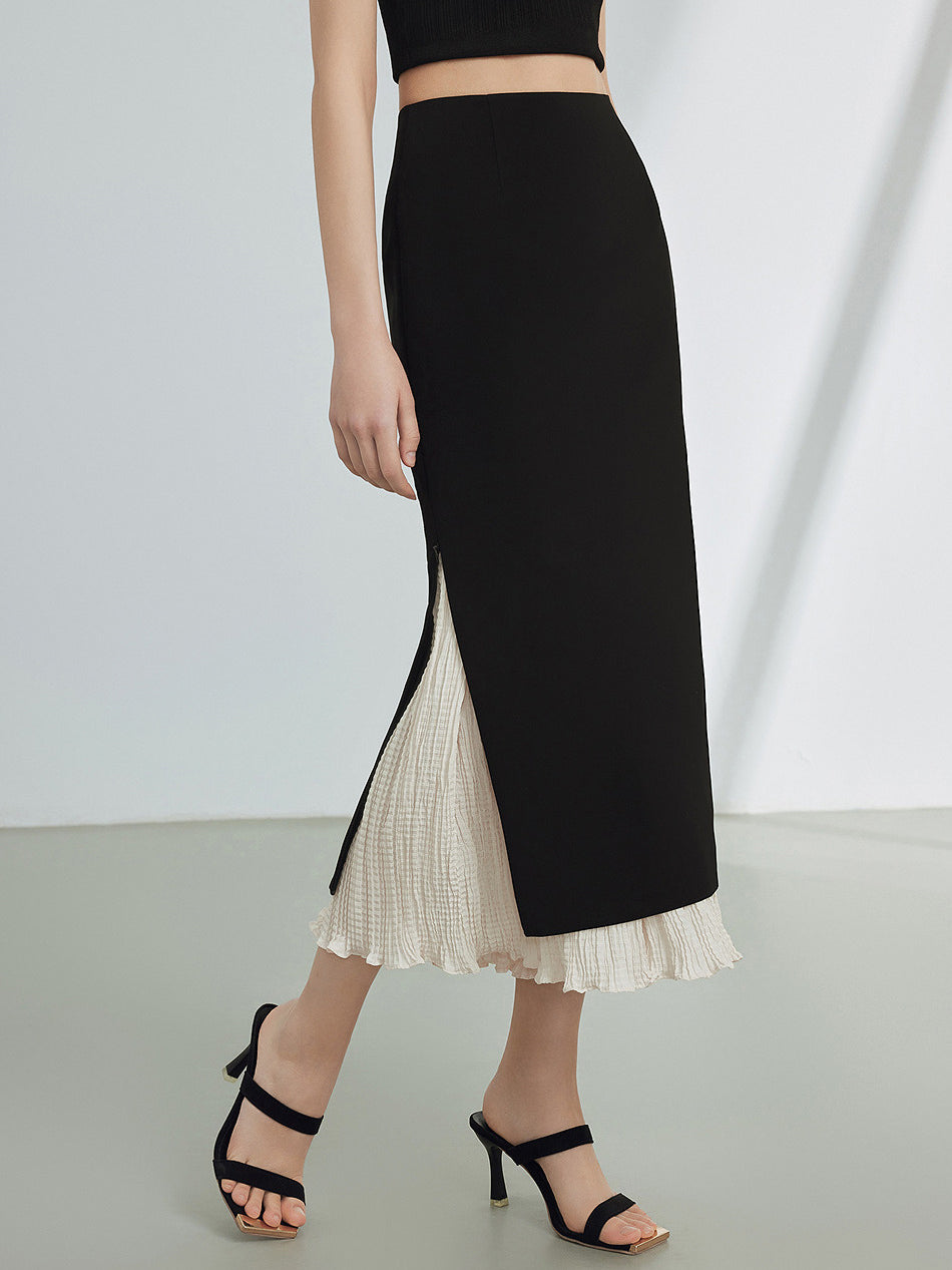 ☆The contrasting color pleats on the side slits sway lightly with every movement, giving a feminine look.