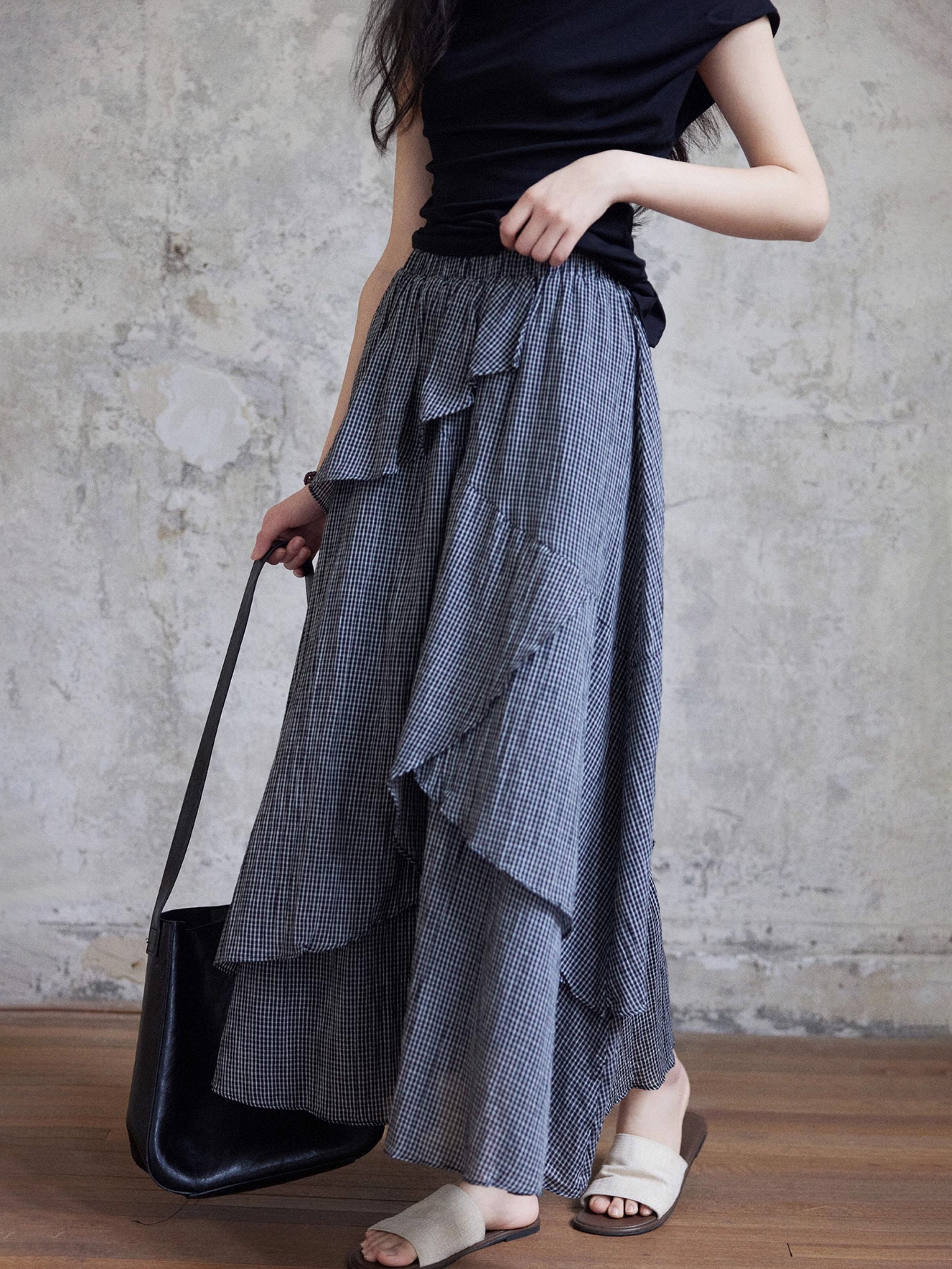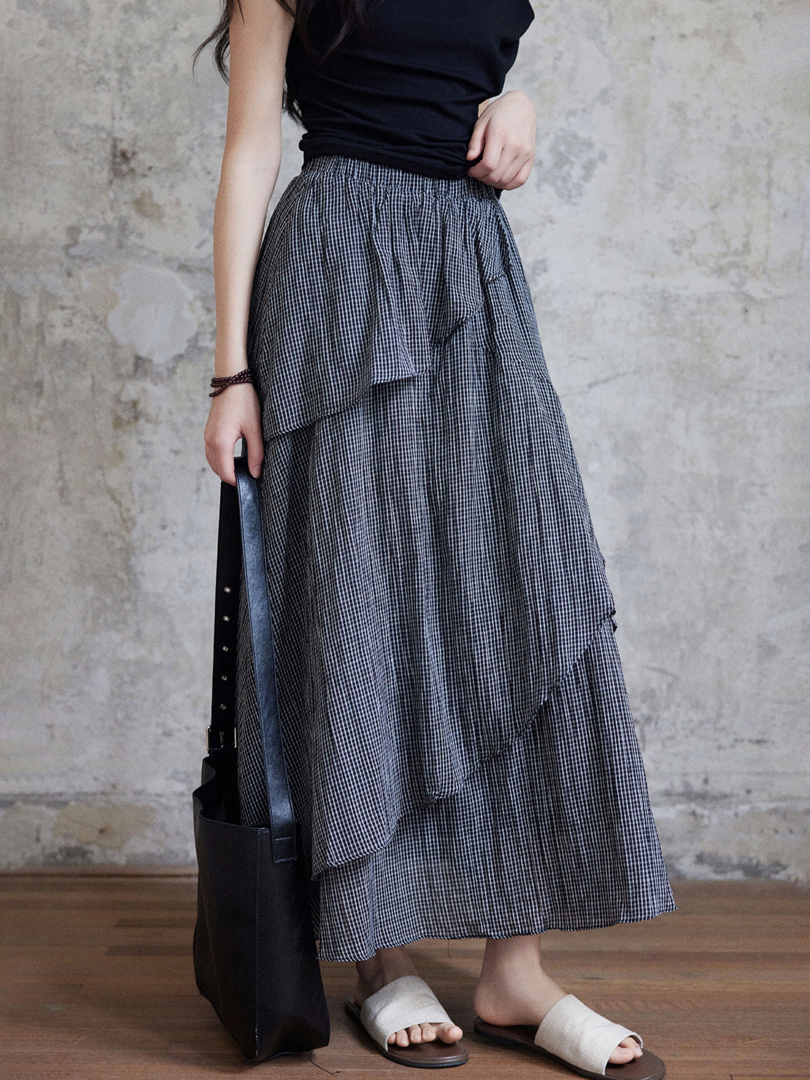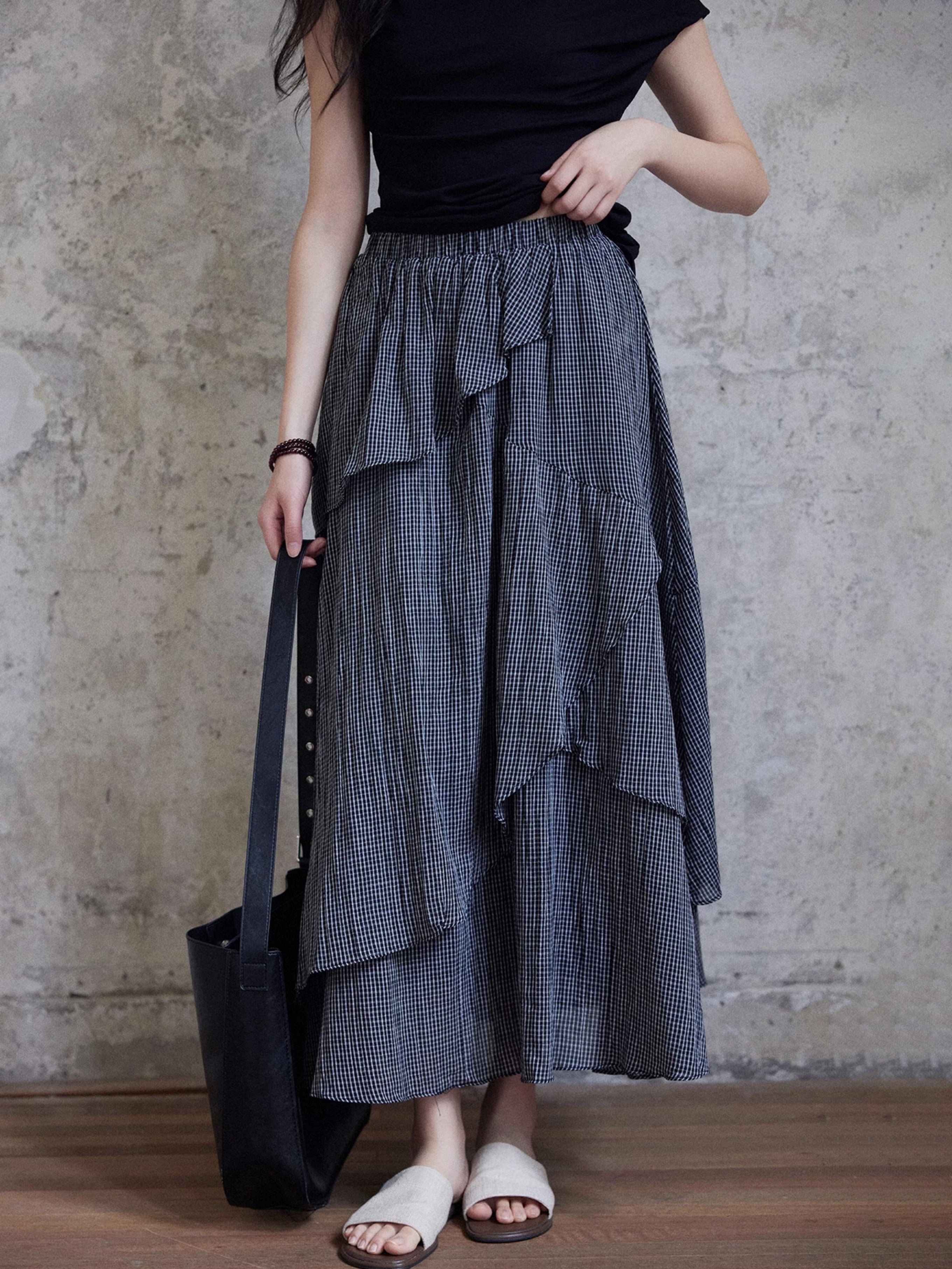 Flared wrap check tiered skirt in 2 colors (can be worn as a set)