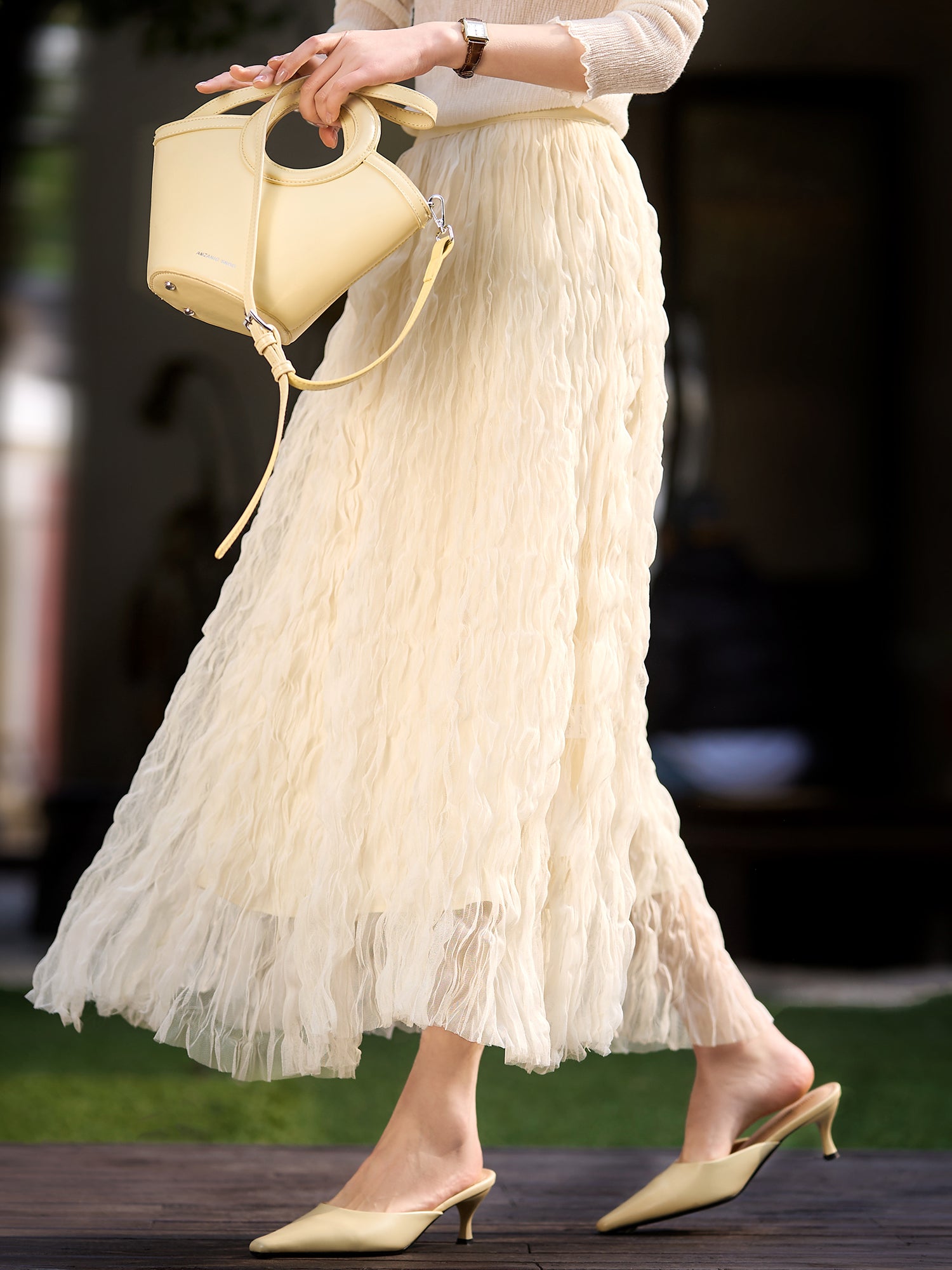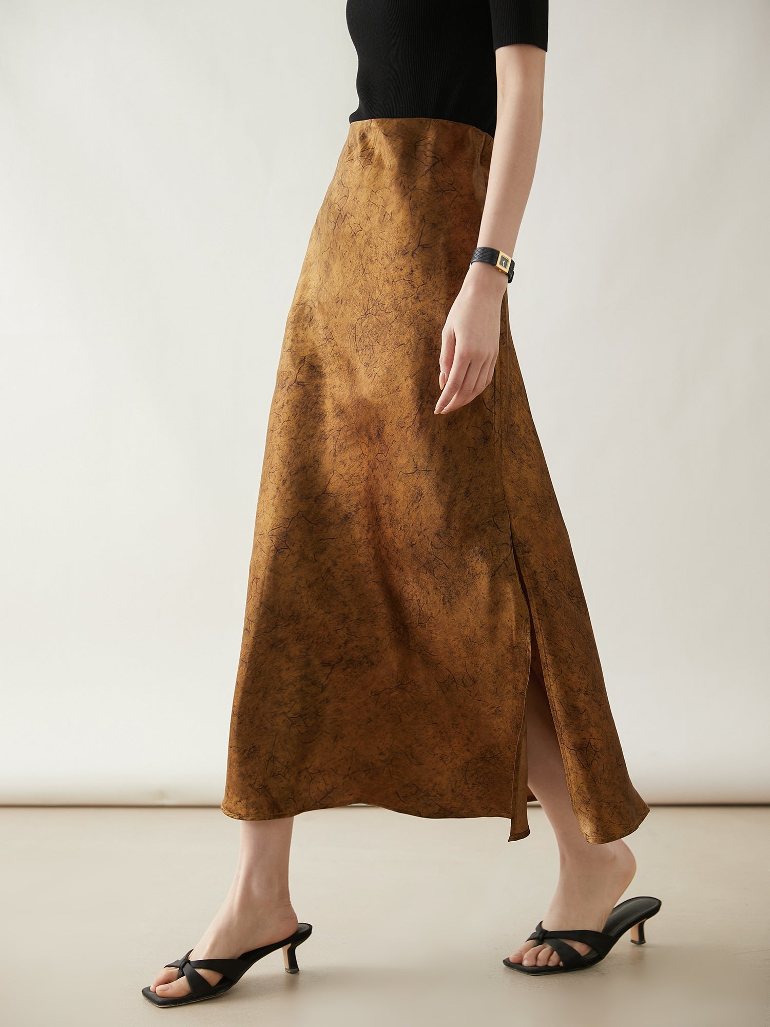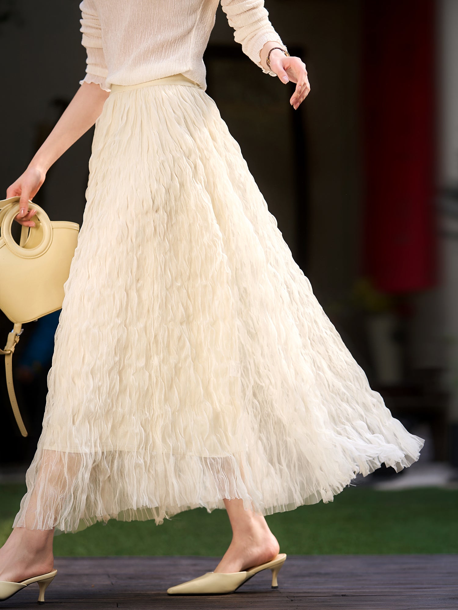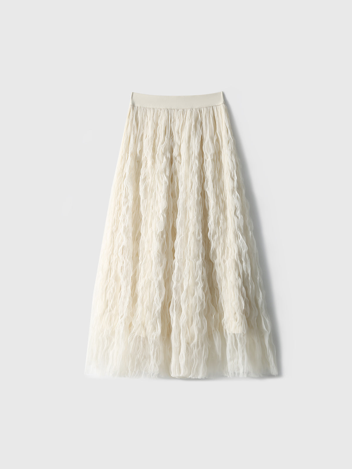 Tulle Docking Side Slit Velvet Skirt (2 Colors)
