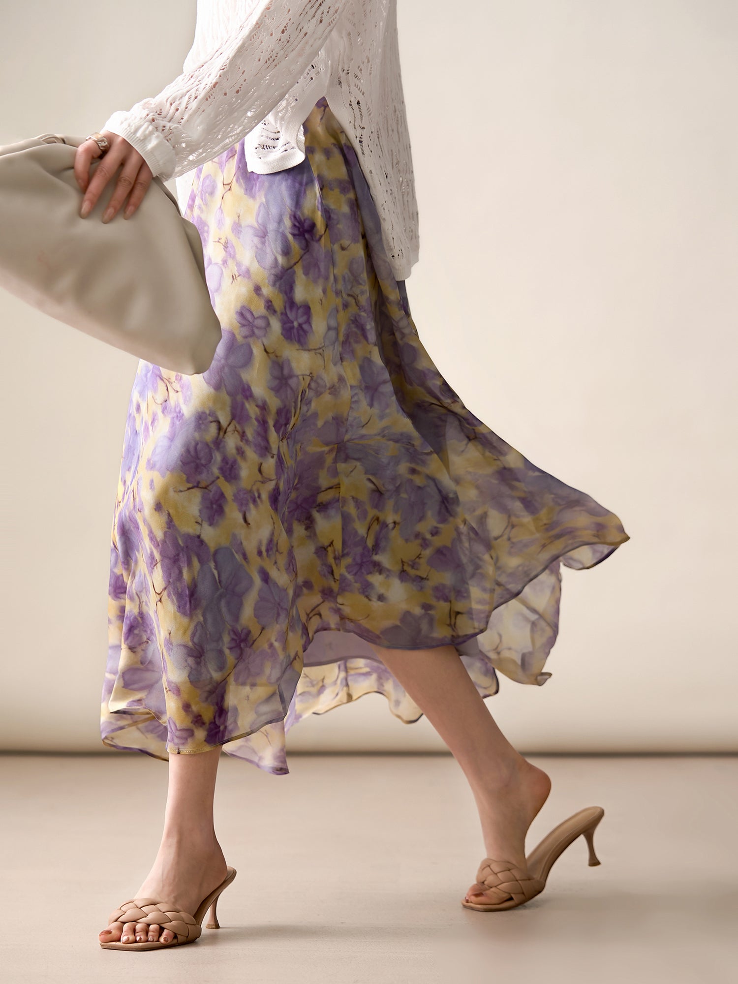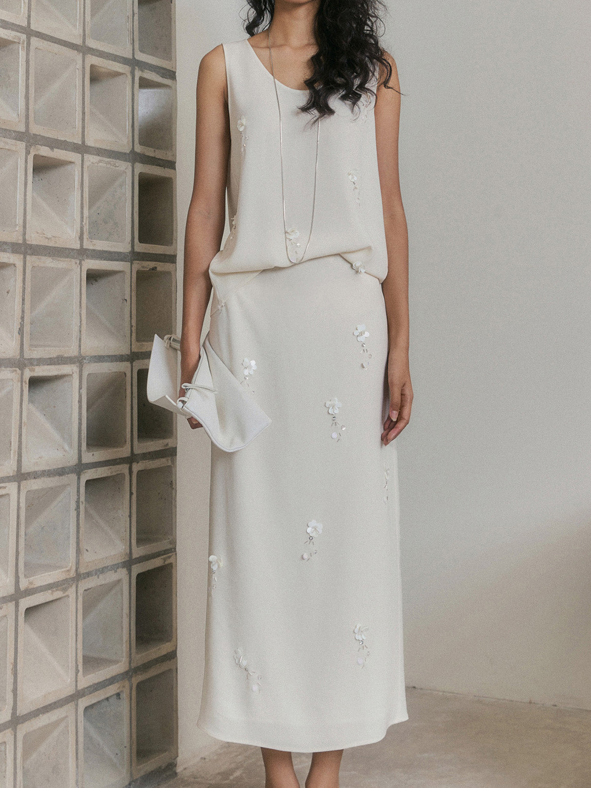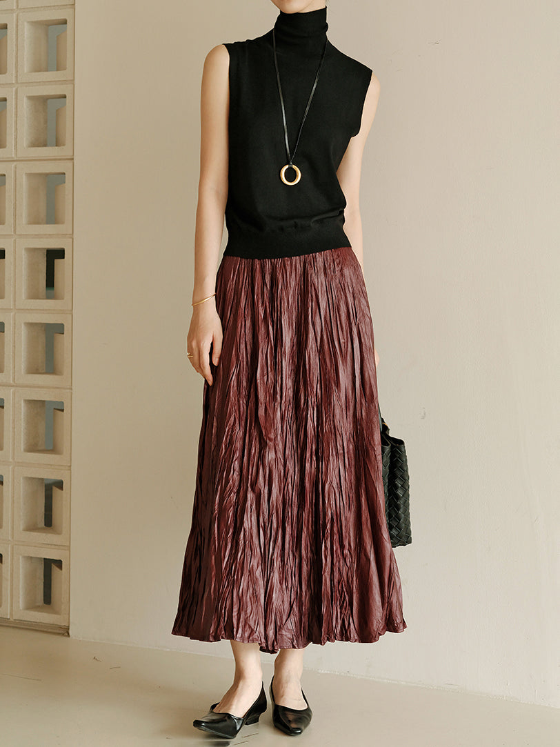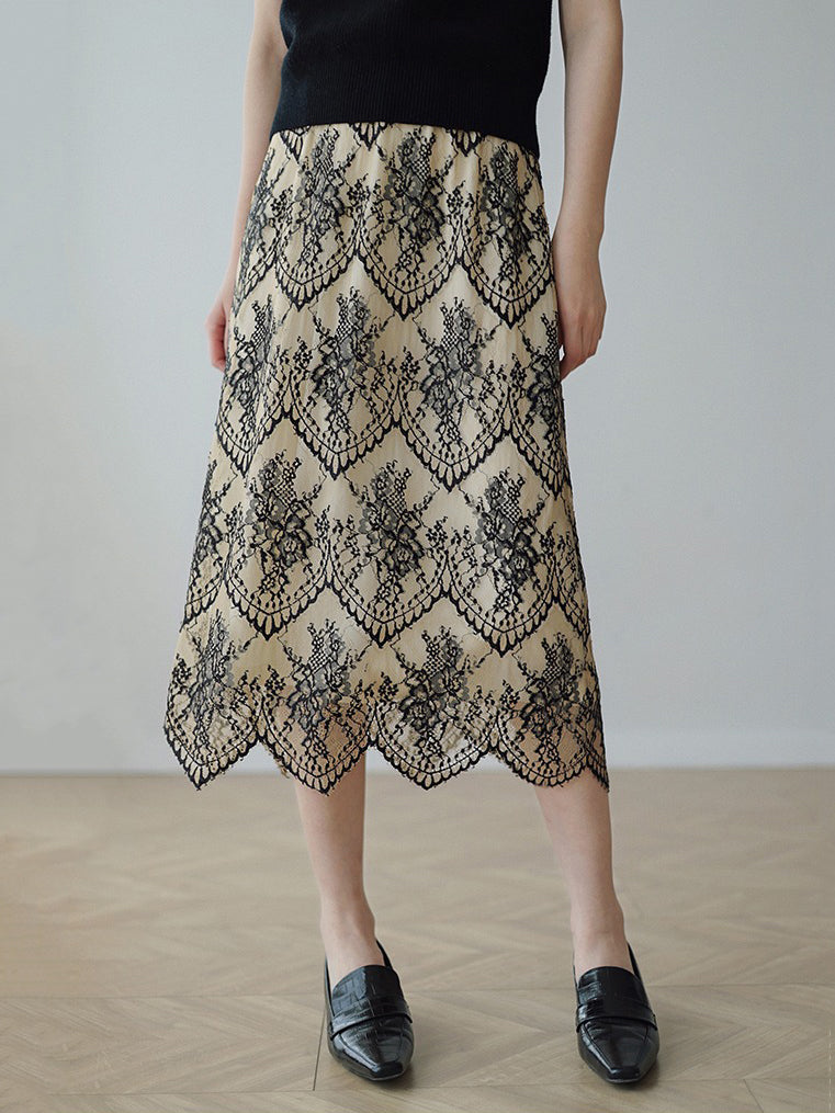 Tulle Docking Side Slit Velvet Skirt (2 Colors)
