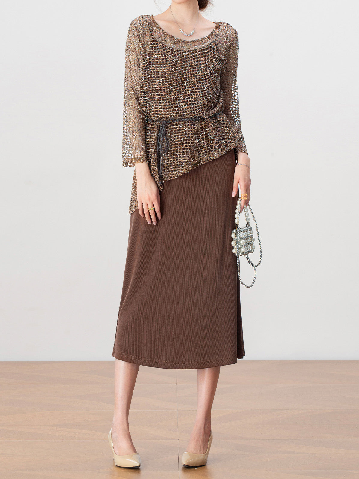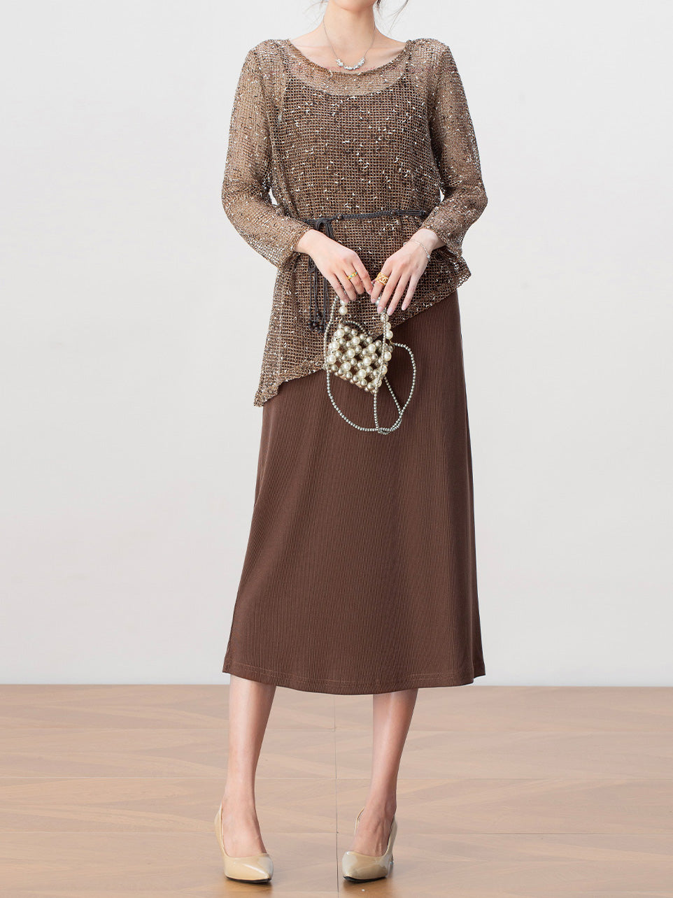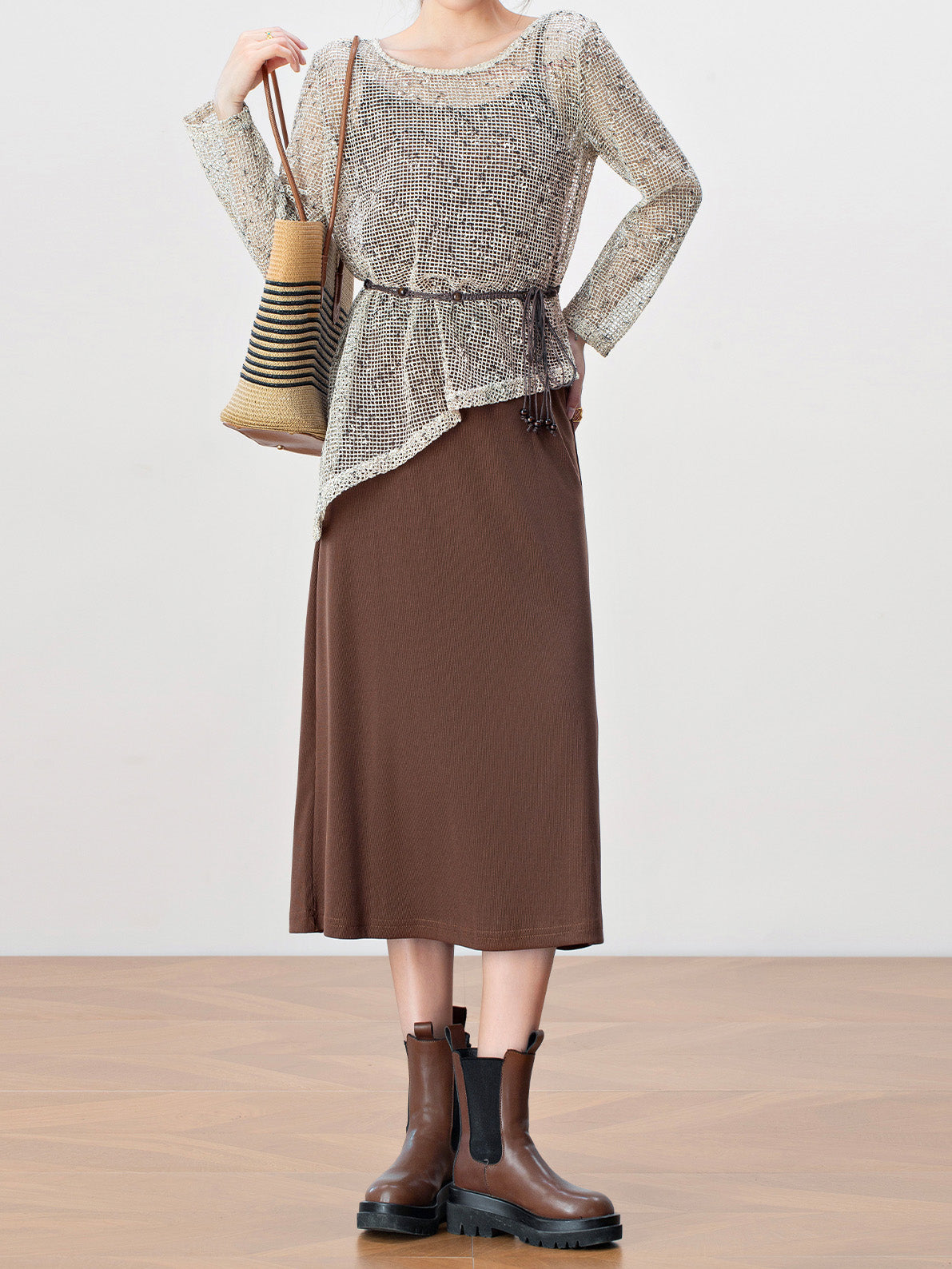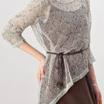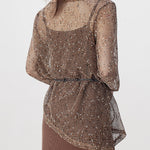 Asymmetrical Hem Sheer Net Top + Cami Dress Set (2 Colors)
