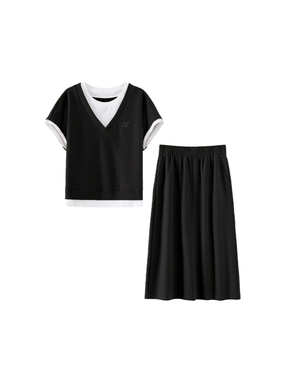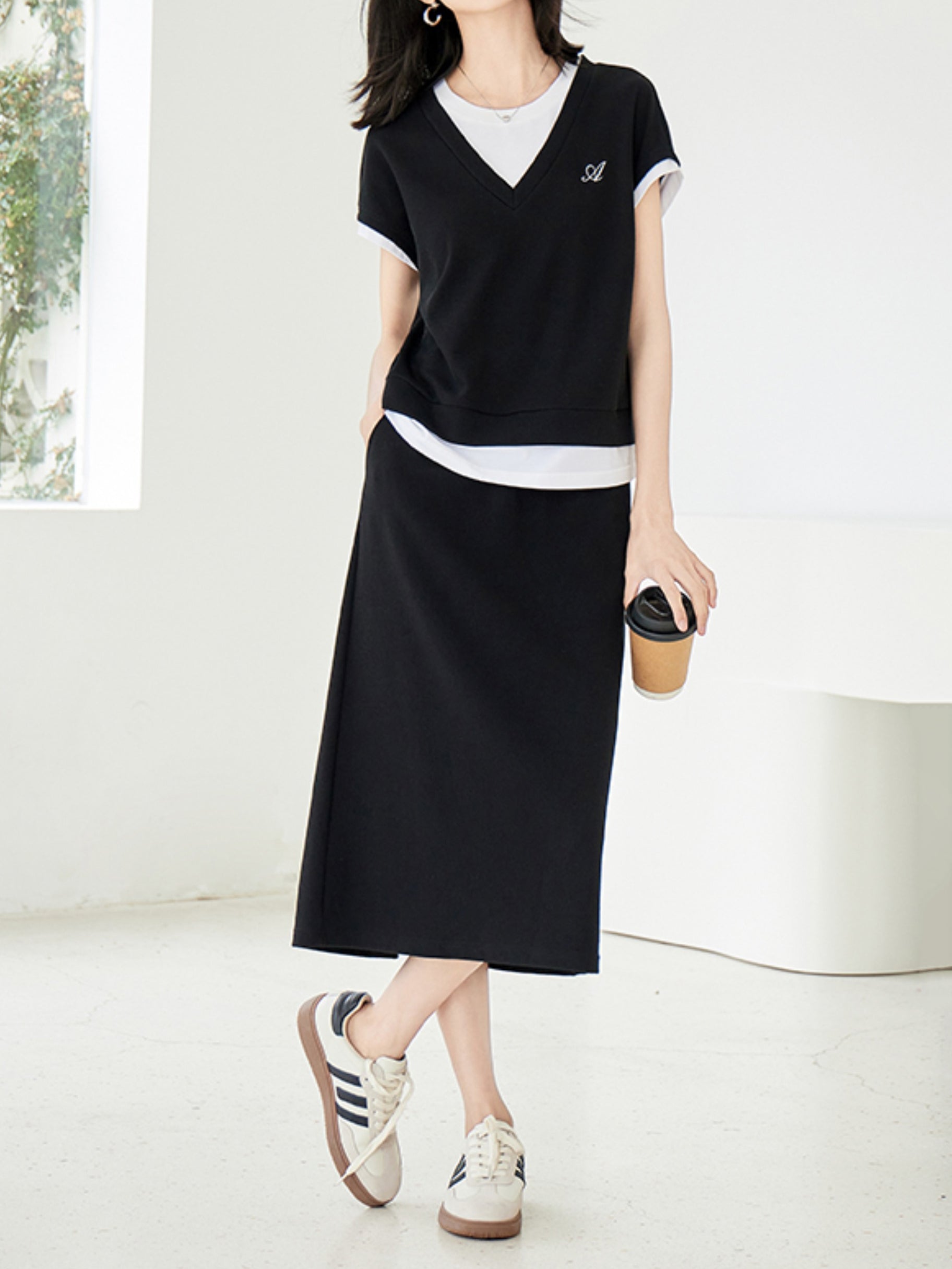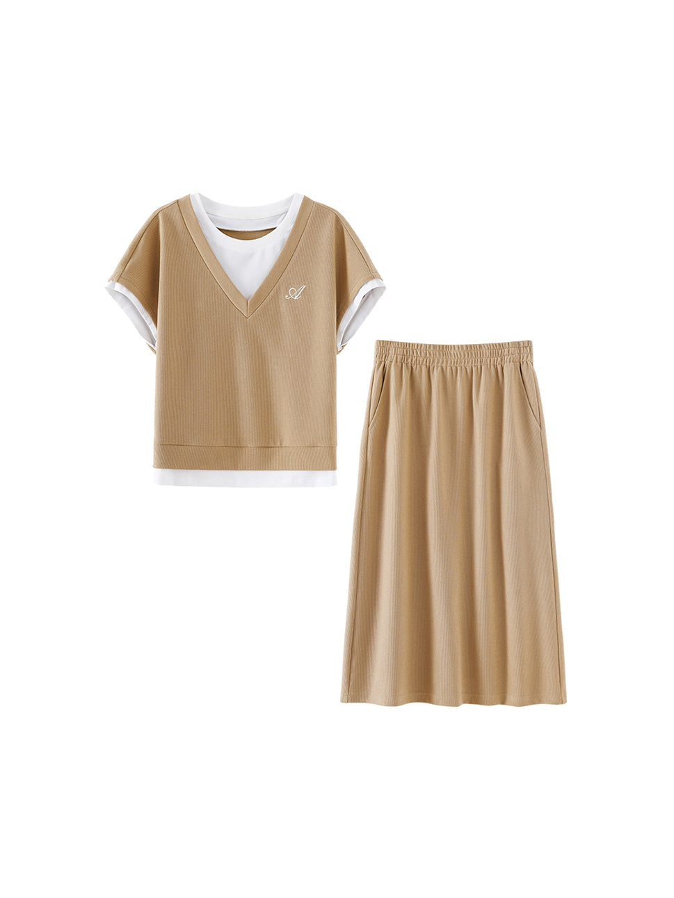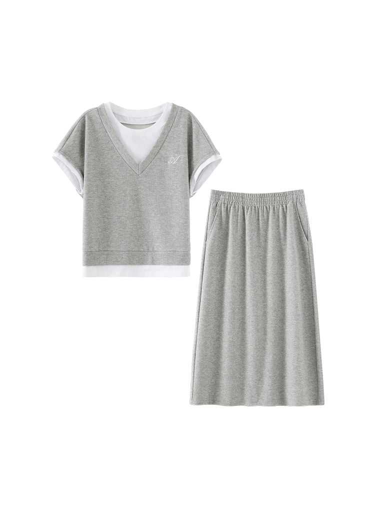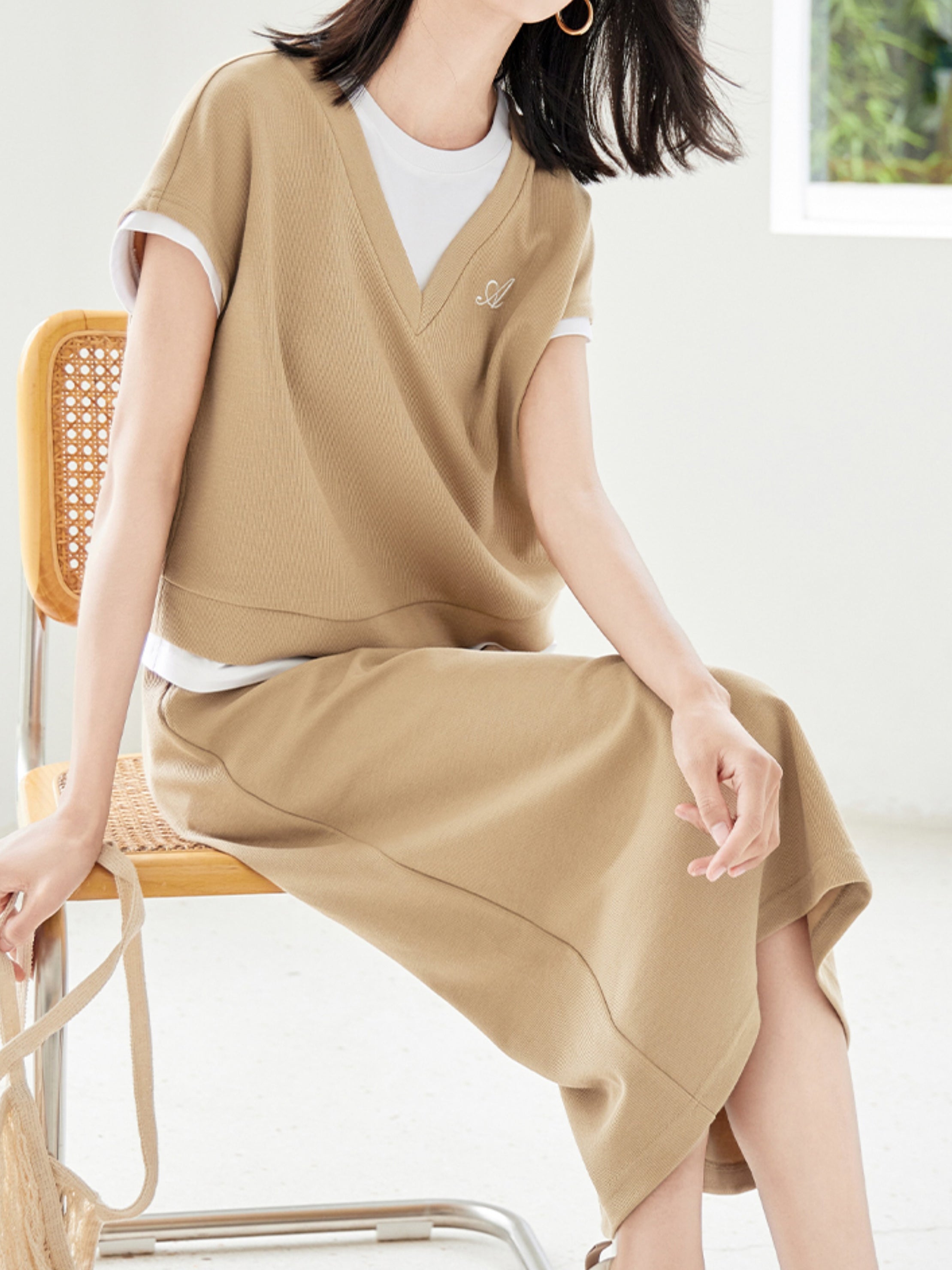 [Just wear it and you'll look trendy! A casual layered cut-and-sew top and skirt for adults ]