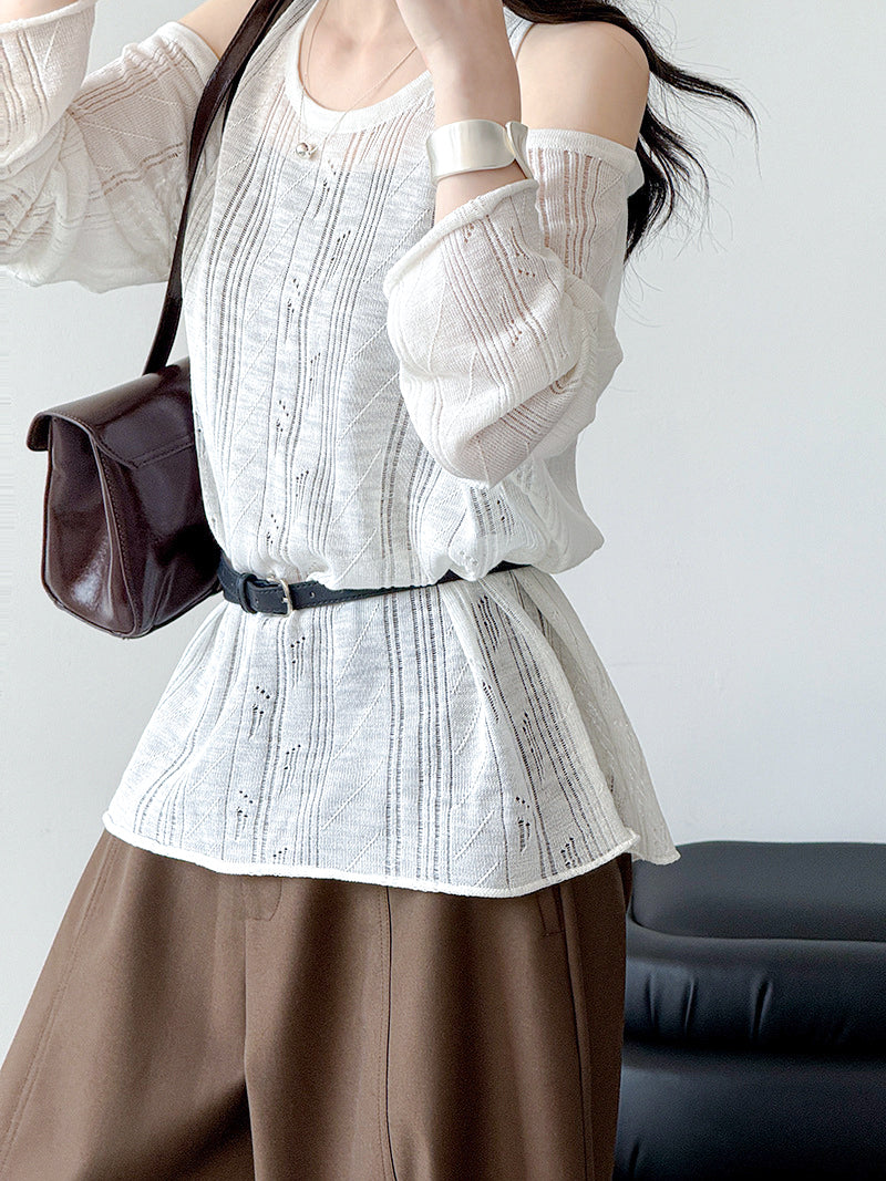 ☆The sheer knit pattern and moderately loose fit create a cute, mature look that exudes a feminine, relaxed feel.