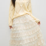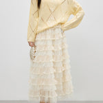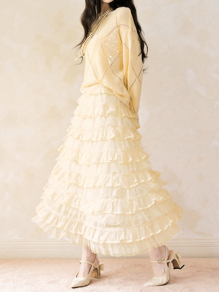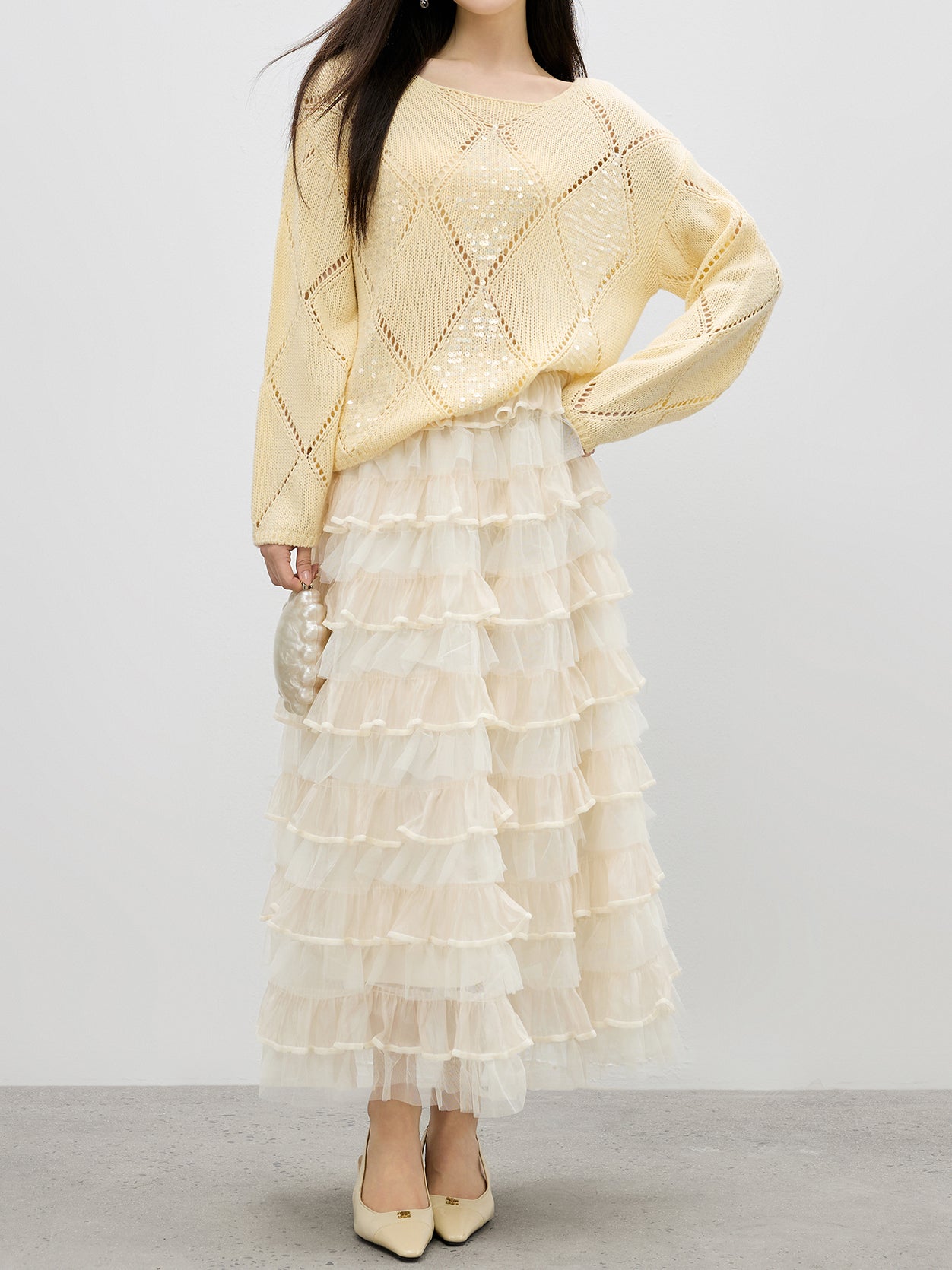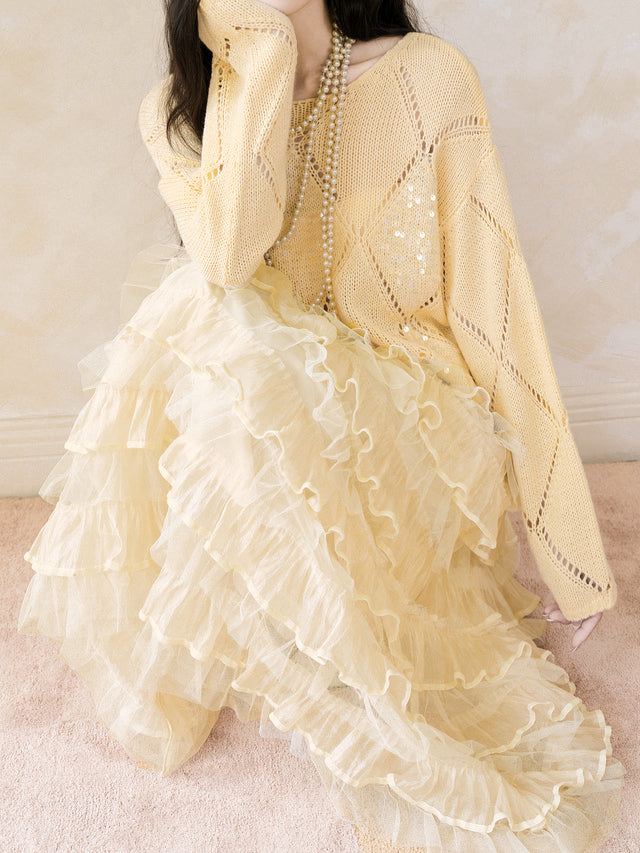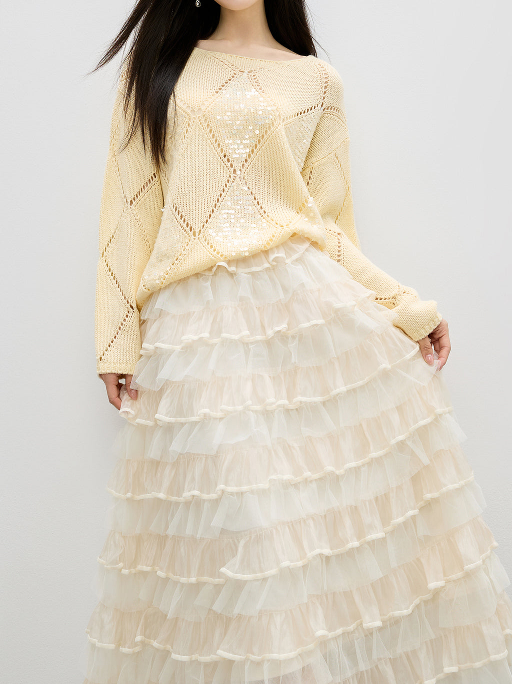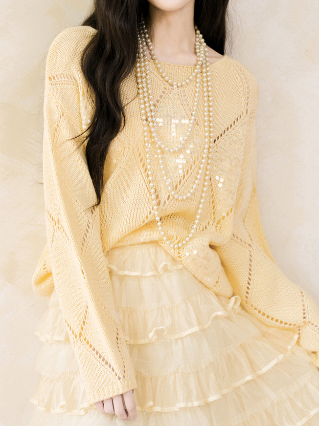 The luxurious dobby knit is adorned with sequins, making it look delicate.
