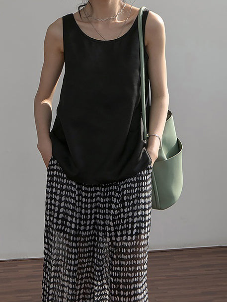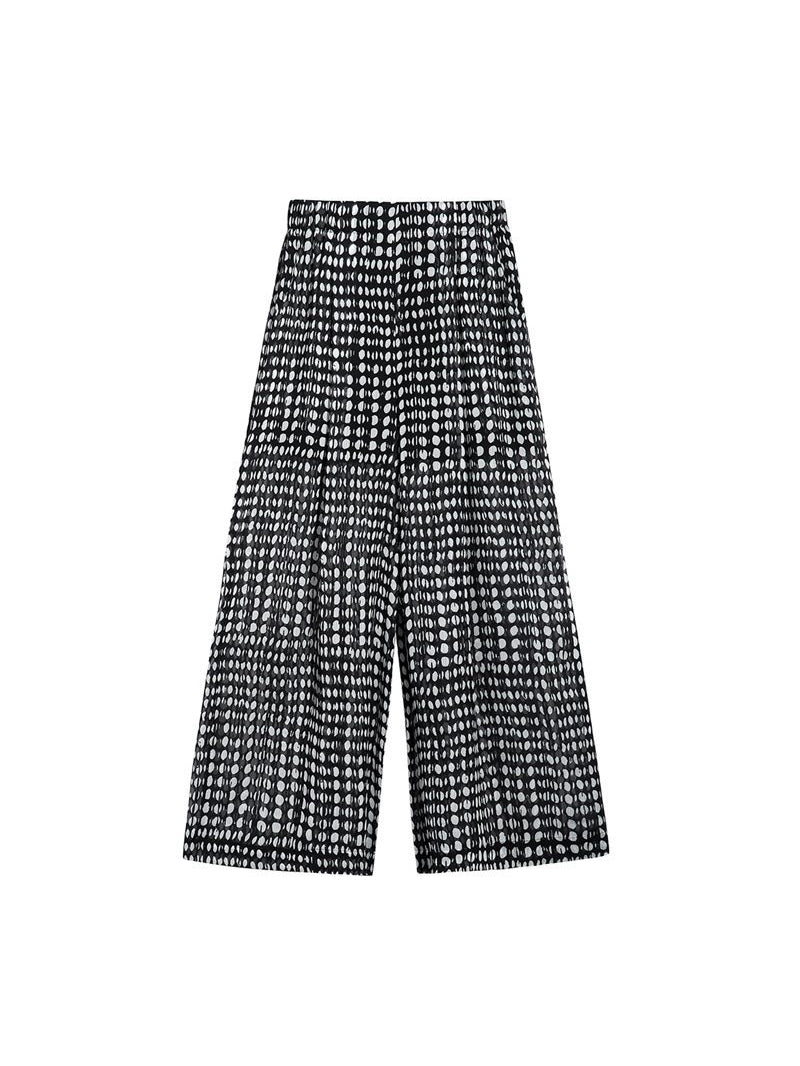 [ Wide pants made of sheer material with a polka dot pattern ]