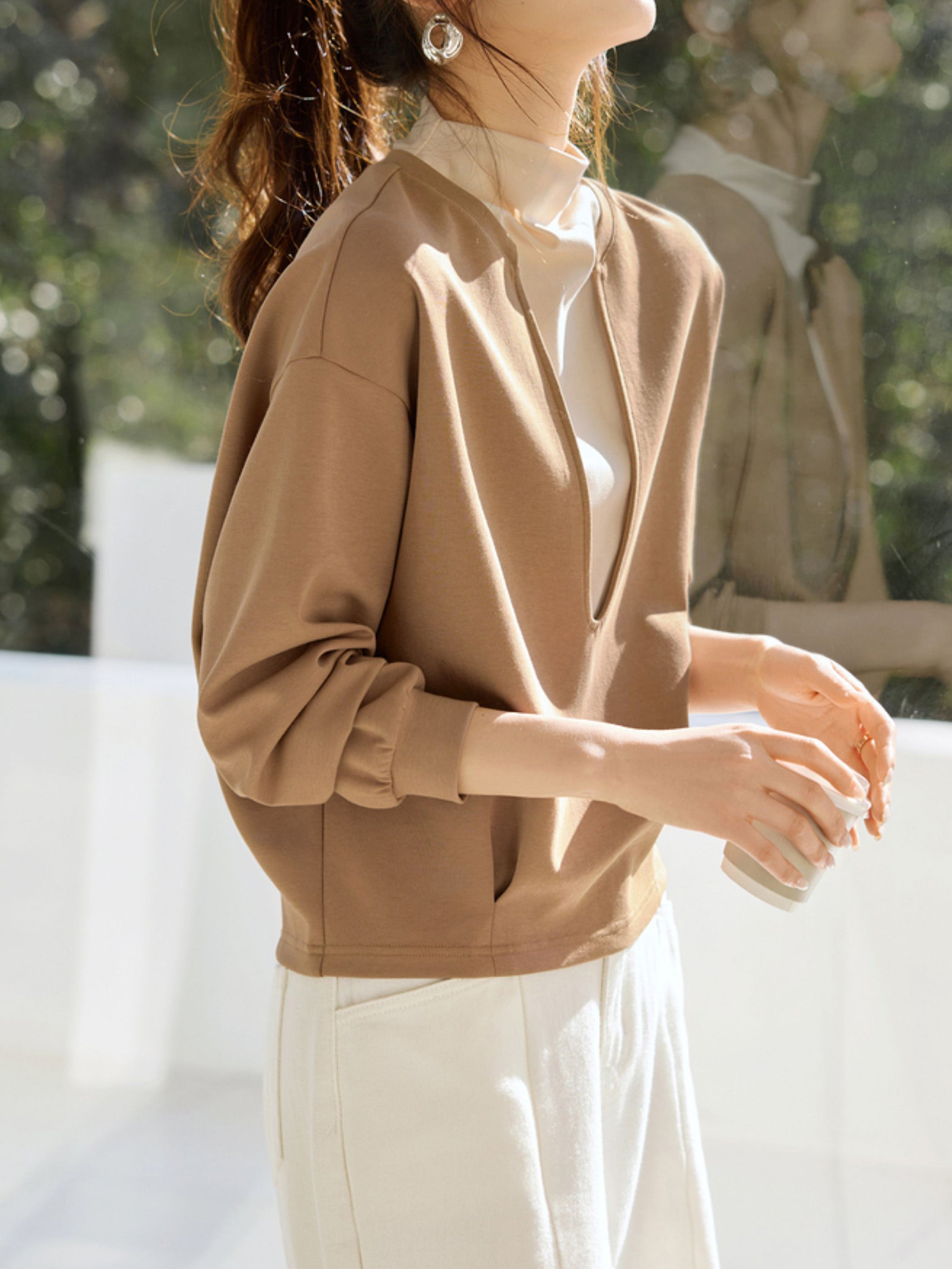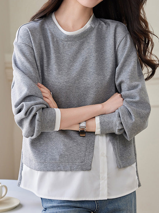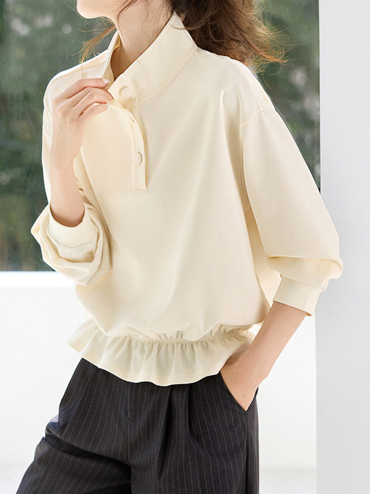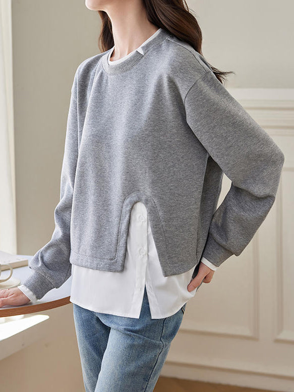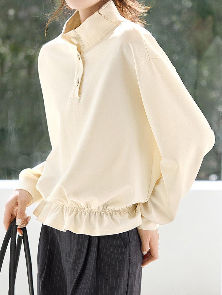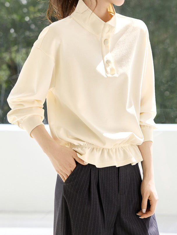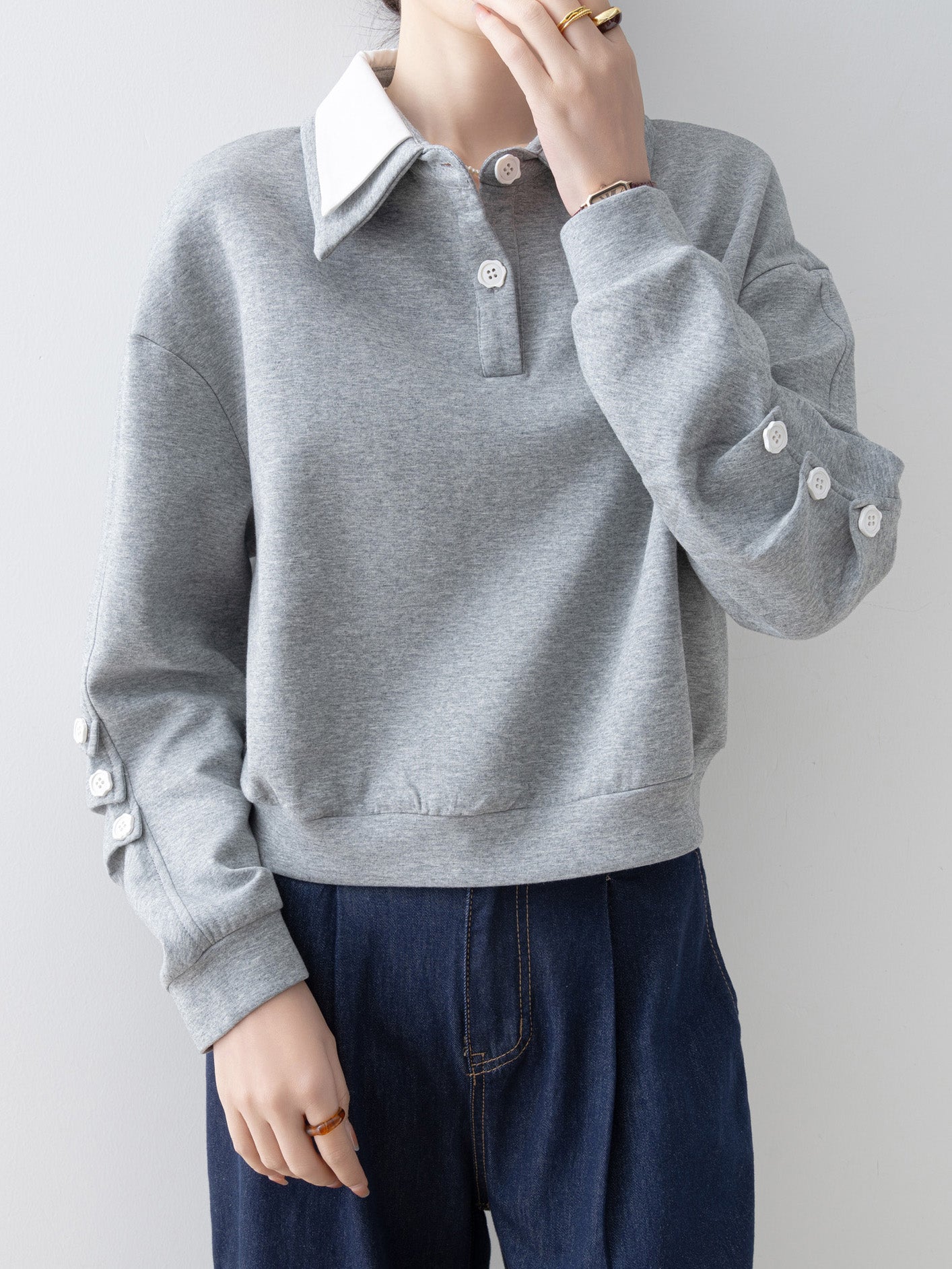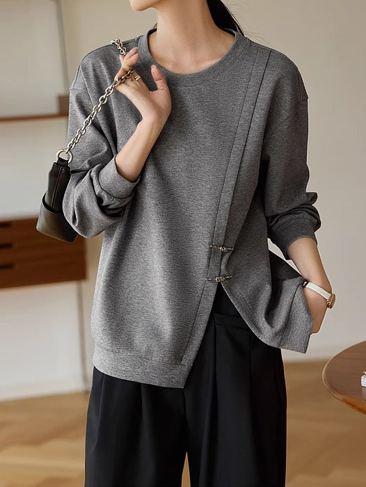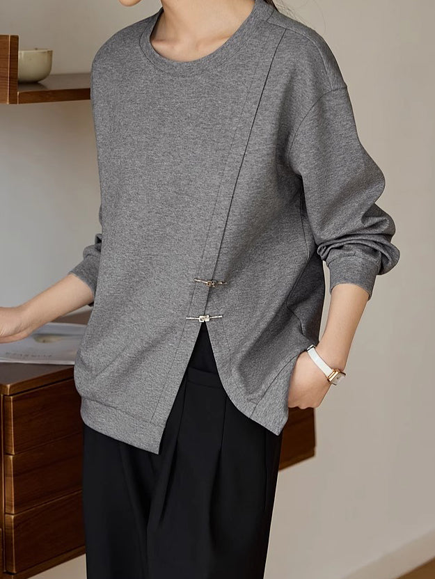 Chinese Button Front Slit Sweatshirt (2 Colors)