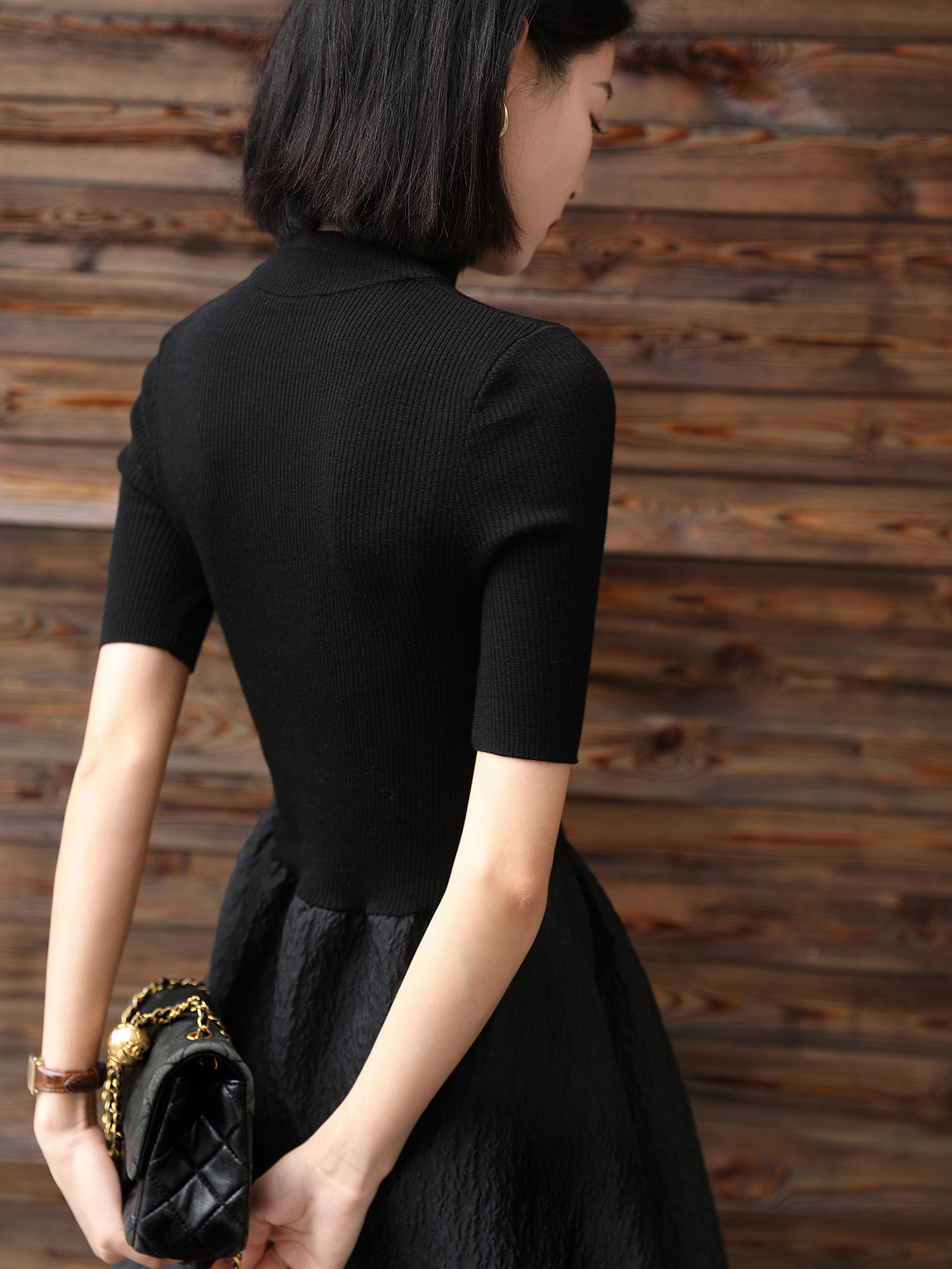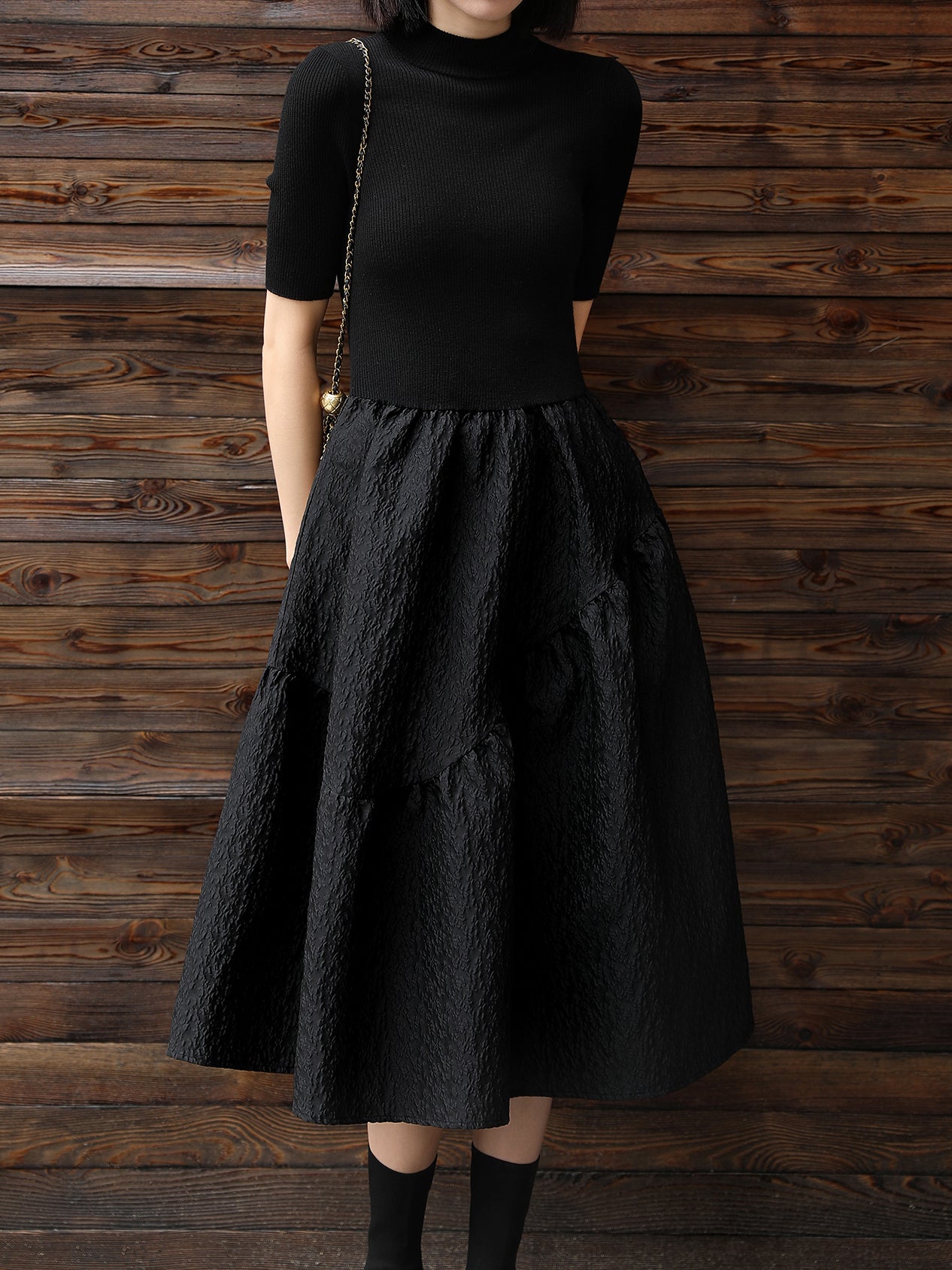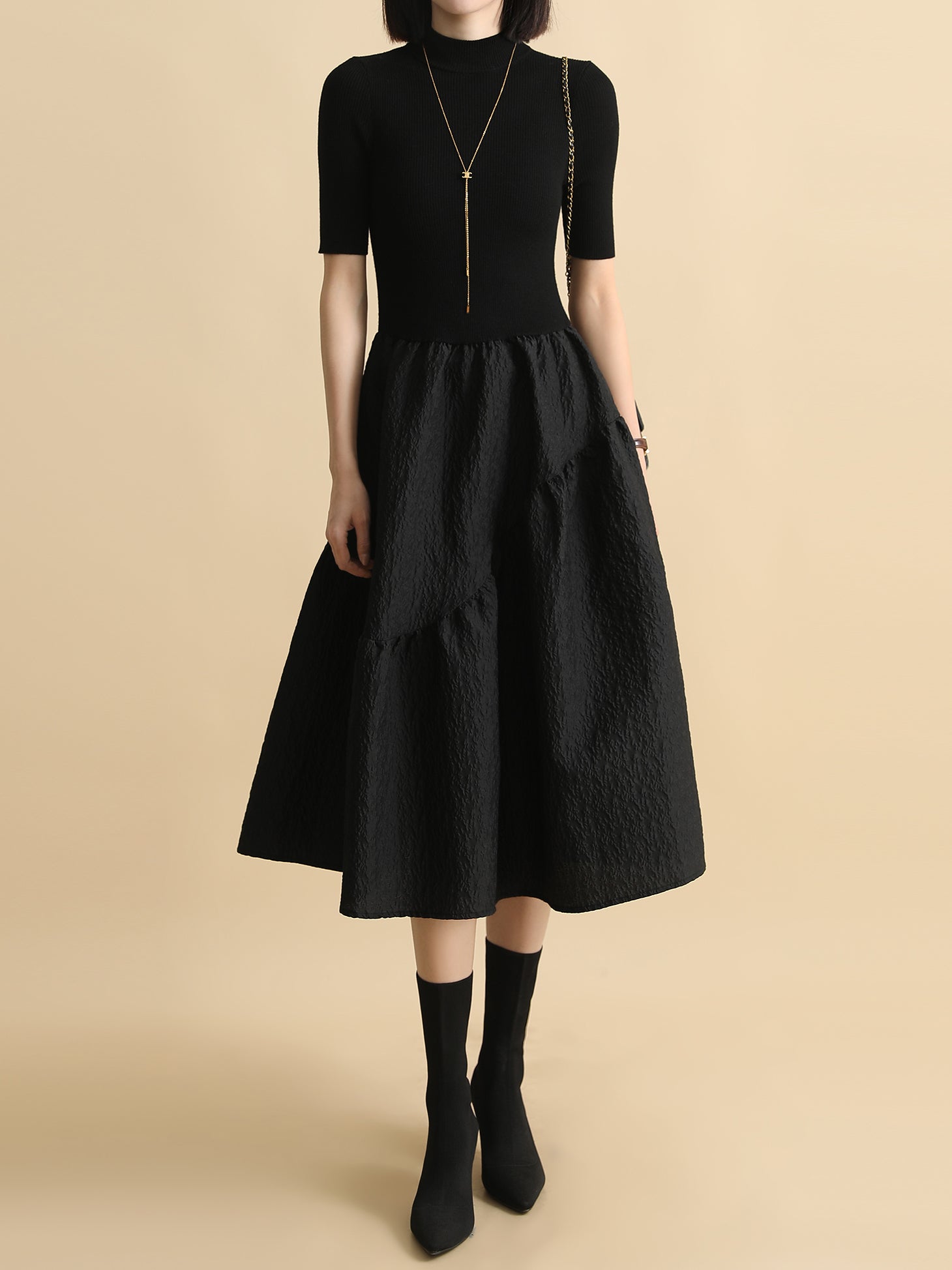 The upper body is made from ribbed knit material that fits the body nicely, while the skirt is made from a slightly stiff jacquard material.