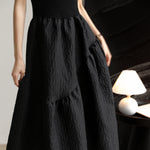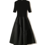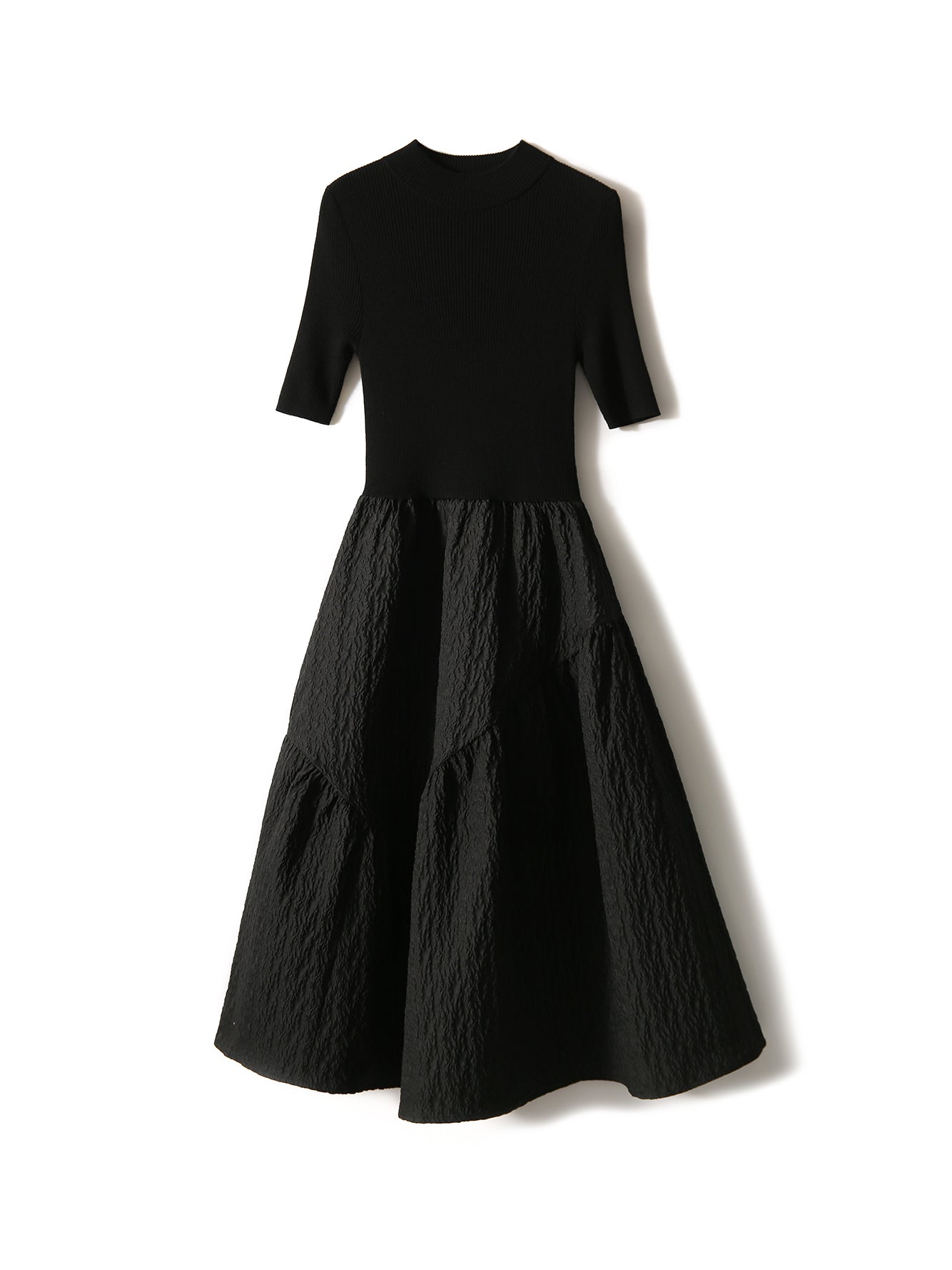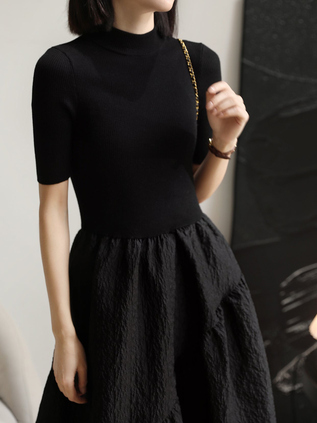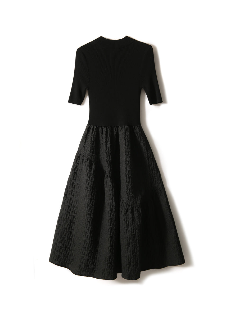 The upper body is made from ribbed knit material that fits the body nicely, while the skirt is made from a slightly stiff jacquard material.