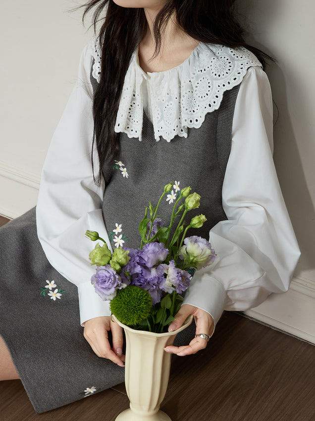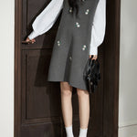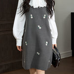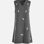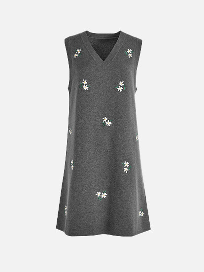 This tank dress features an embroidered flower motif design in different colors, giving it a three-dimensional look.