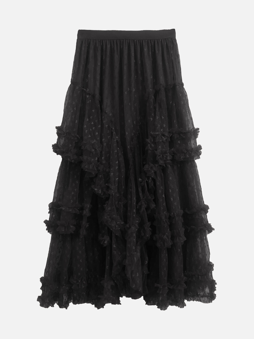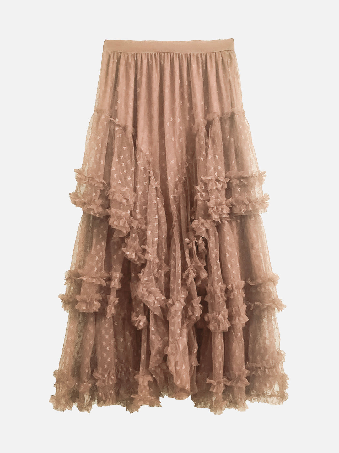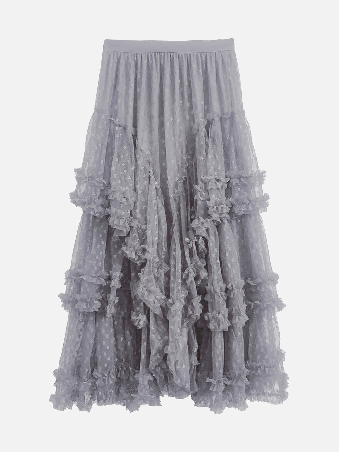 Heart Dot Tulle Tiered Flare Skirt (5 colors)