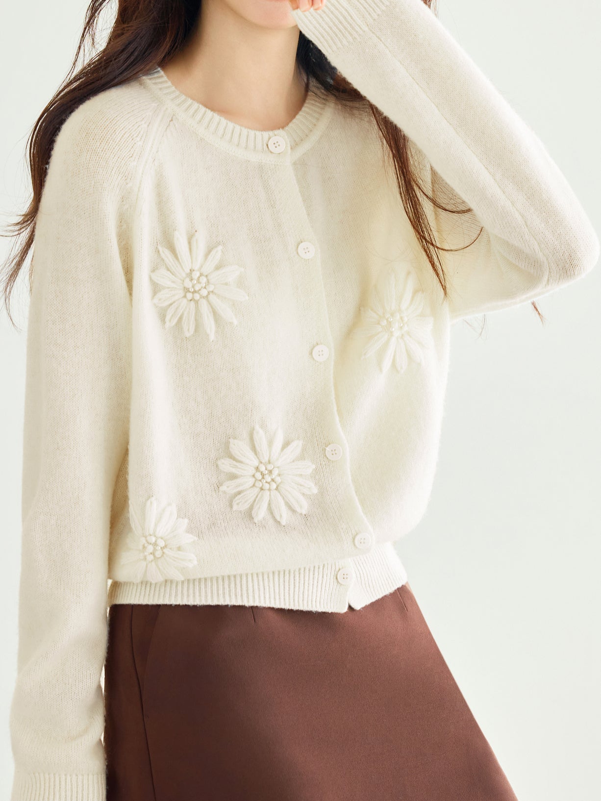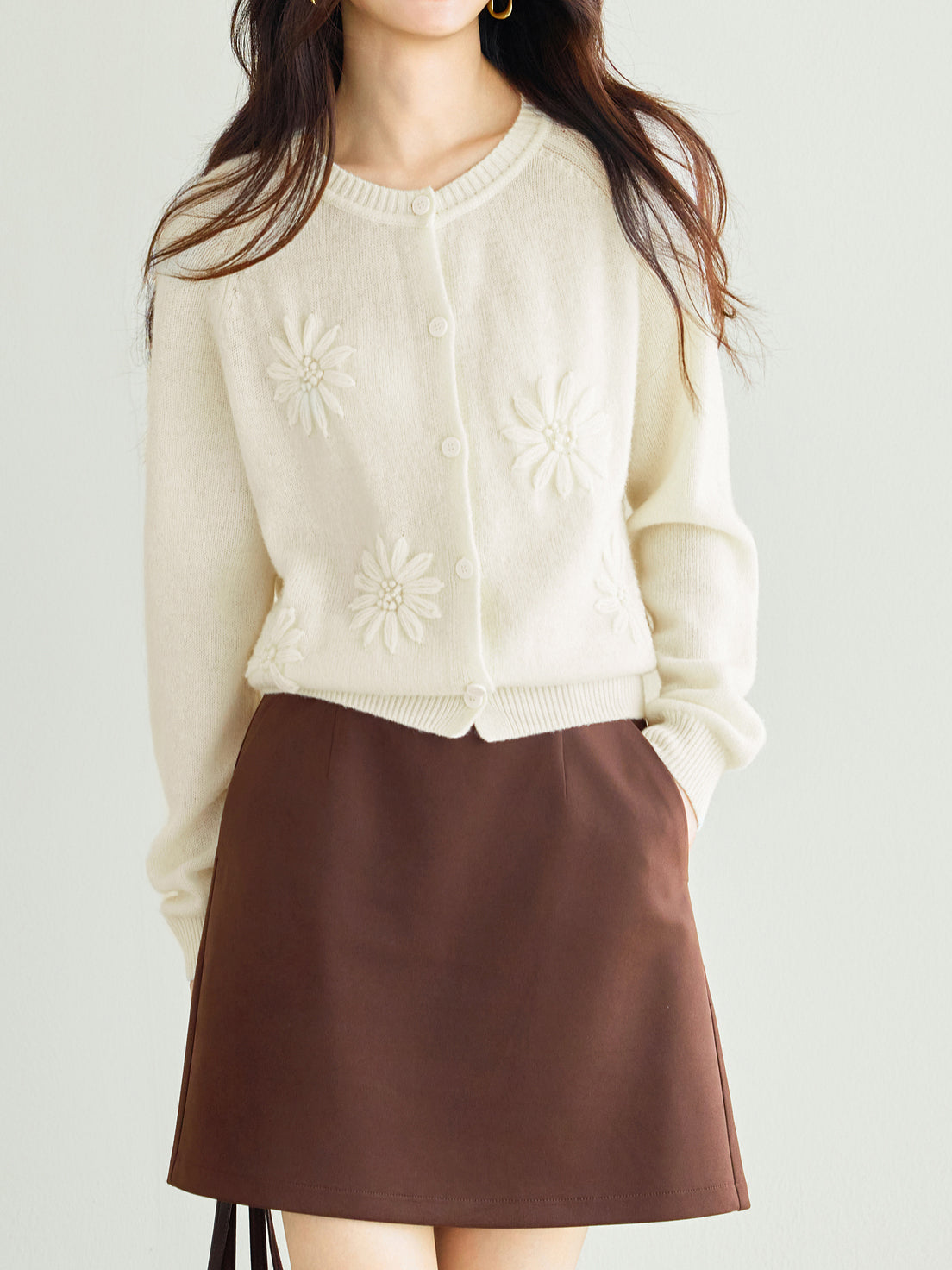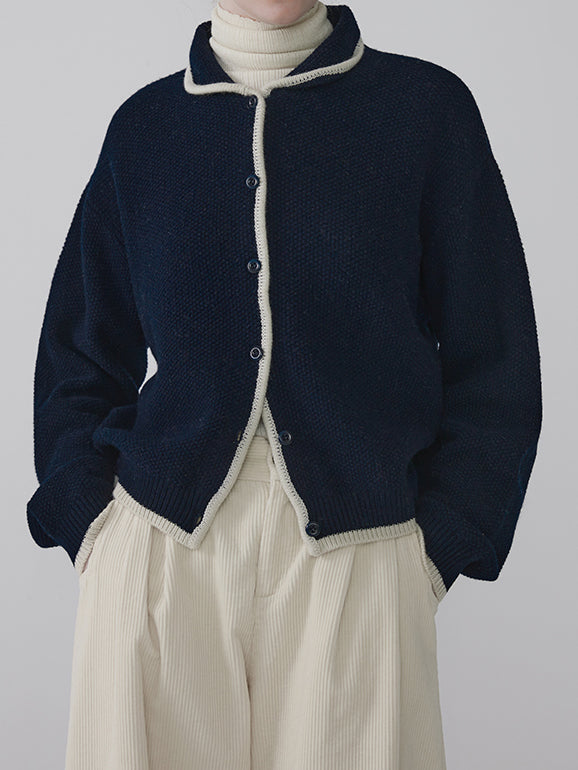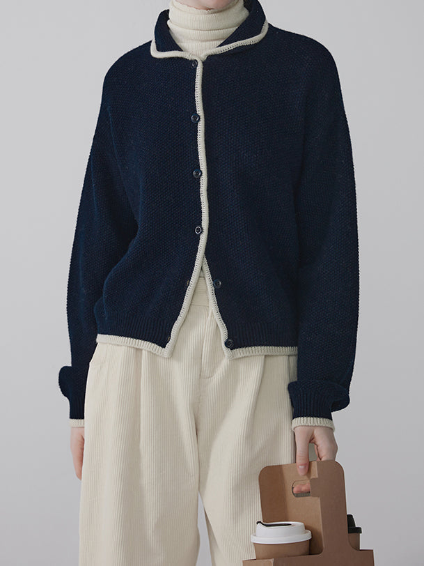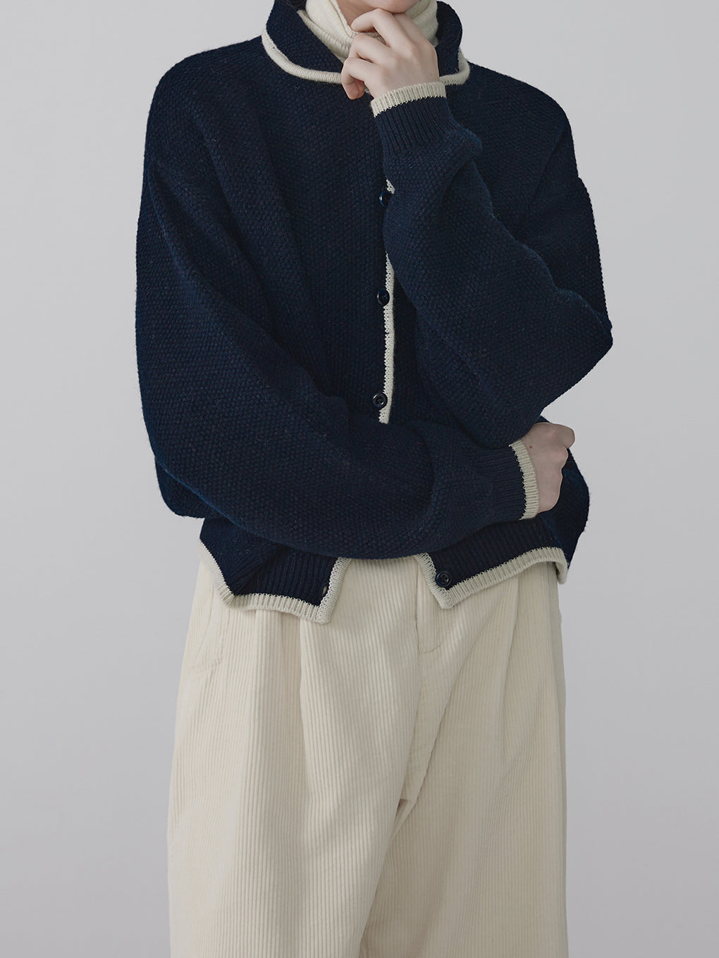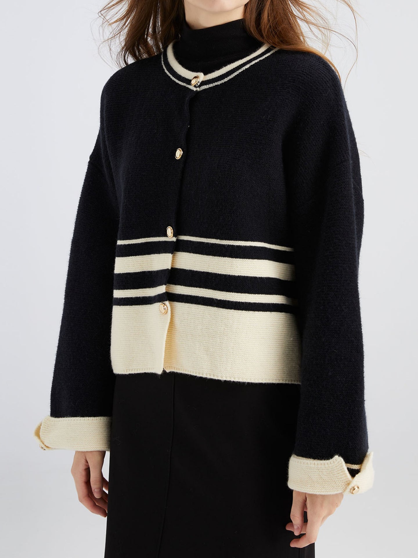 Color-coordinated rhythm border gold button cardigan (2 colors)